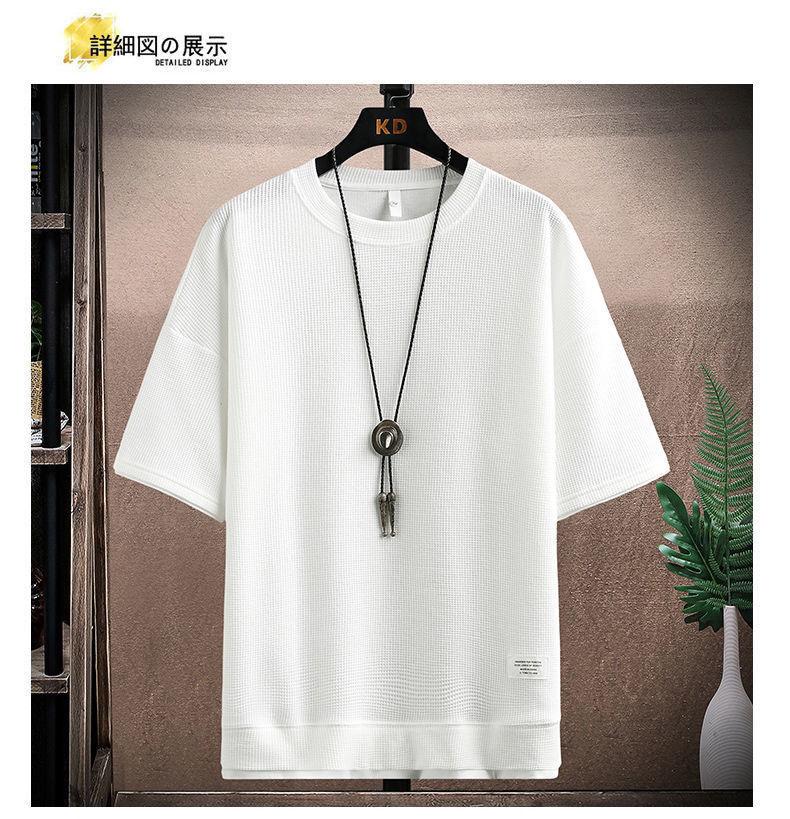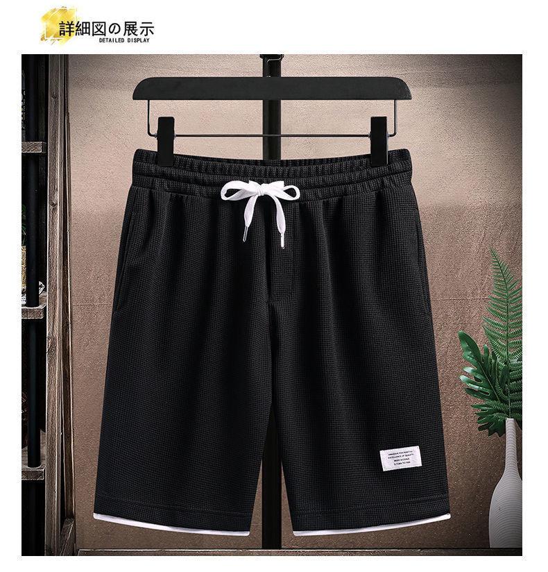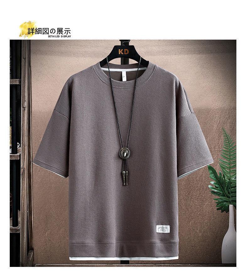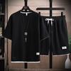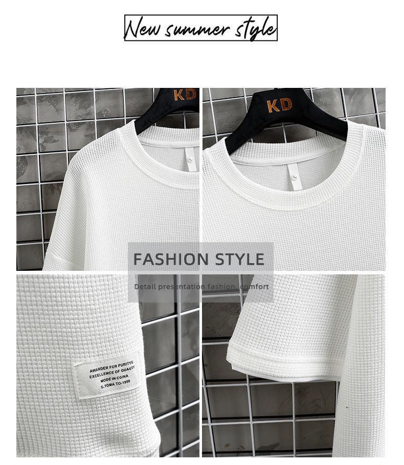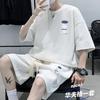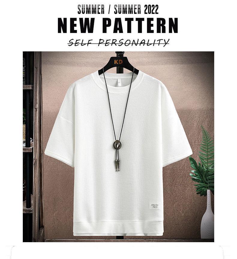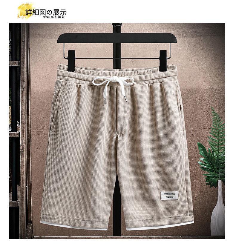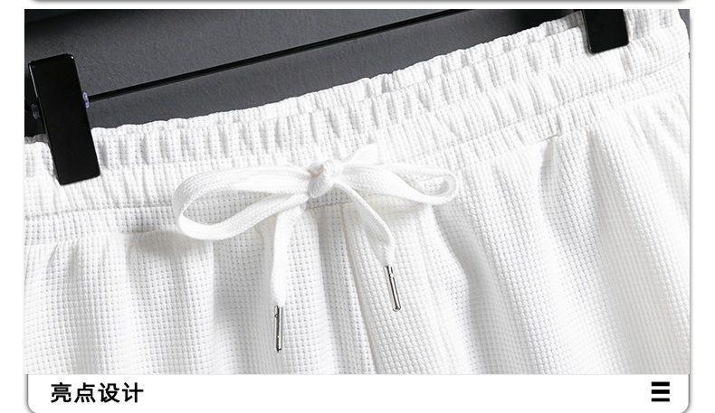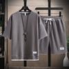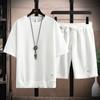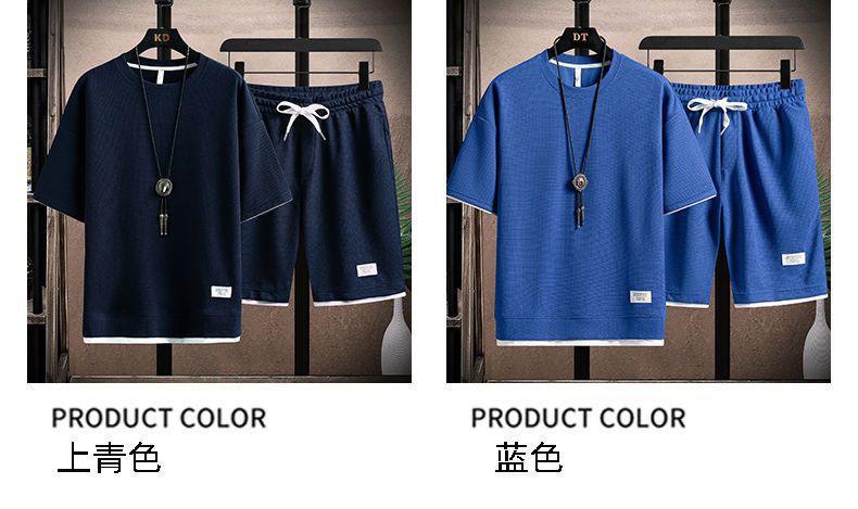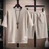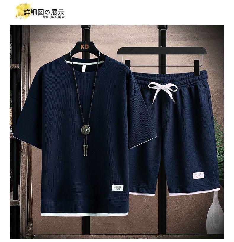 Traje de verano de manga corta con estampado de gofres para hombre, estilo K, holgado, juvenil, atractivo, con pantalones cortos de manga corta, conjunto informal de dos piezas a la moda.