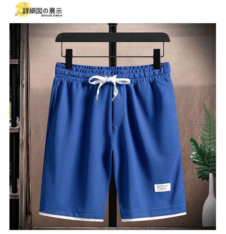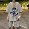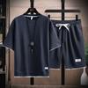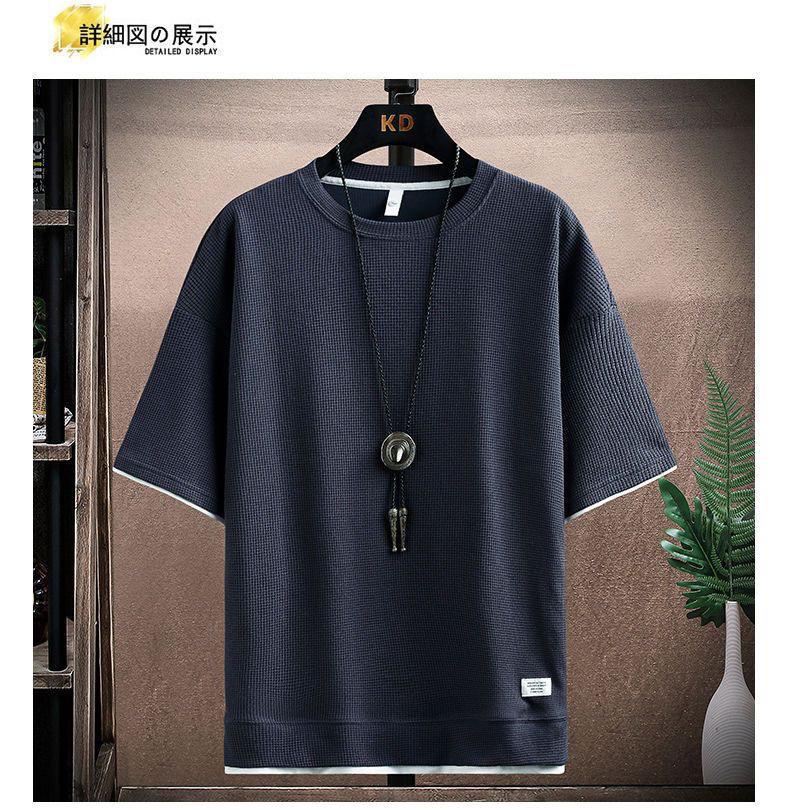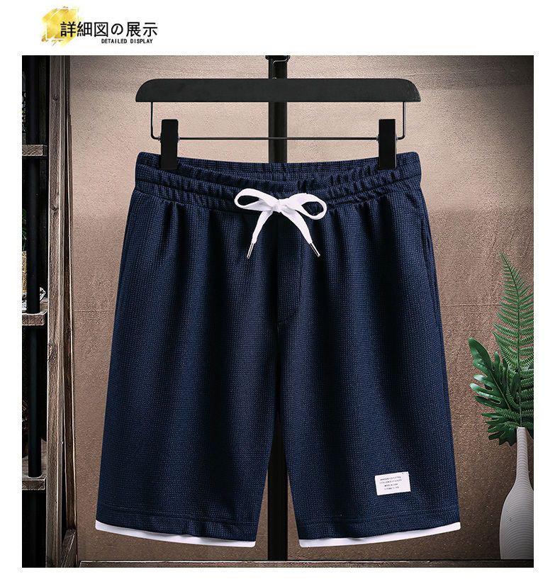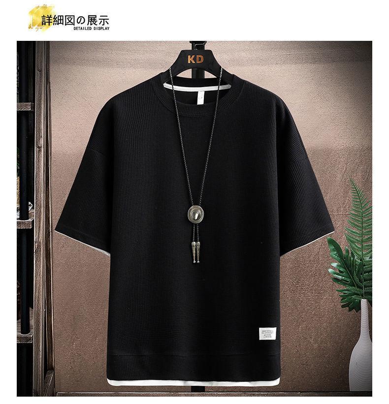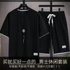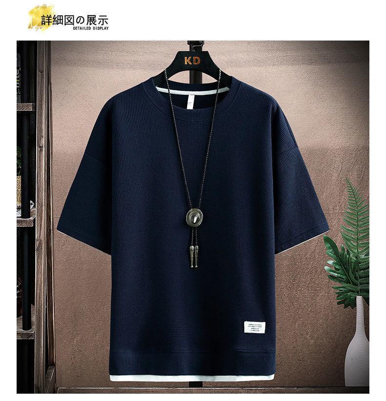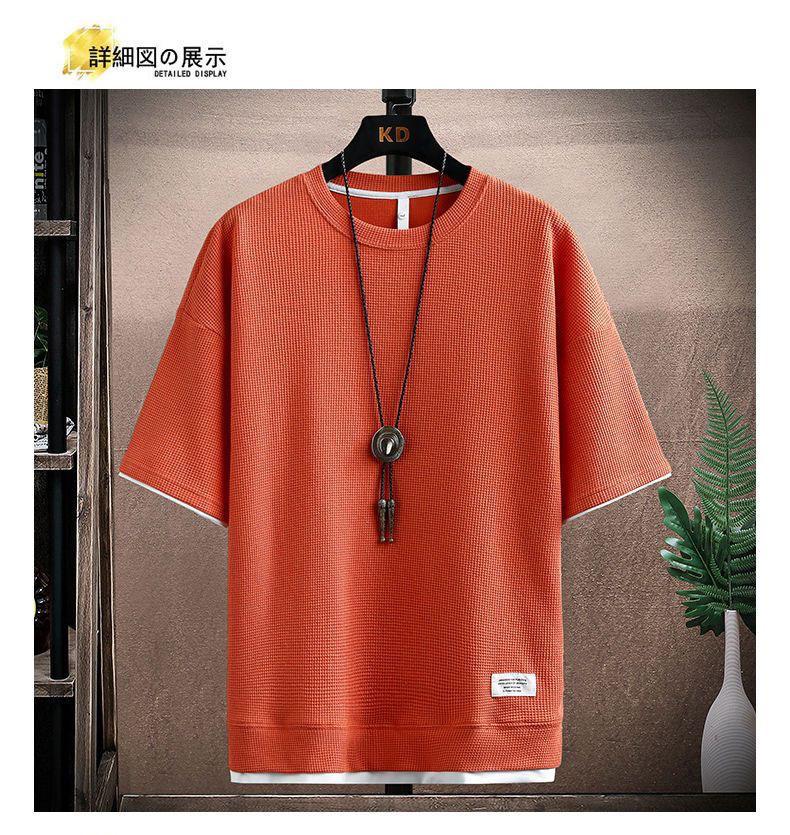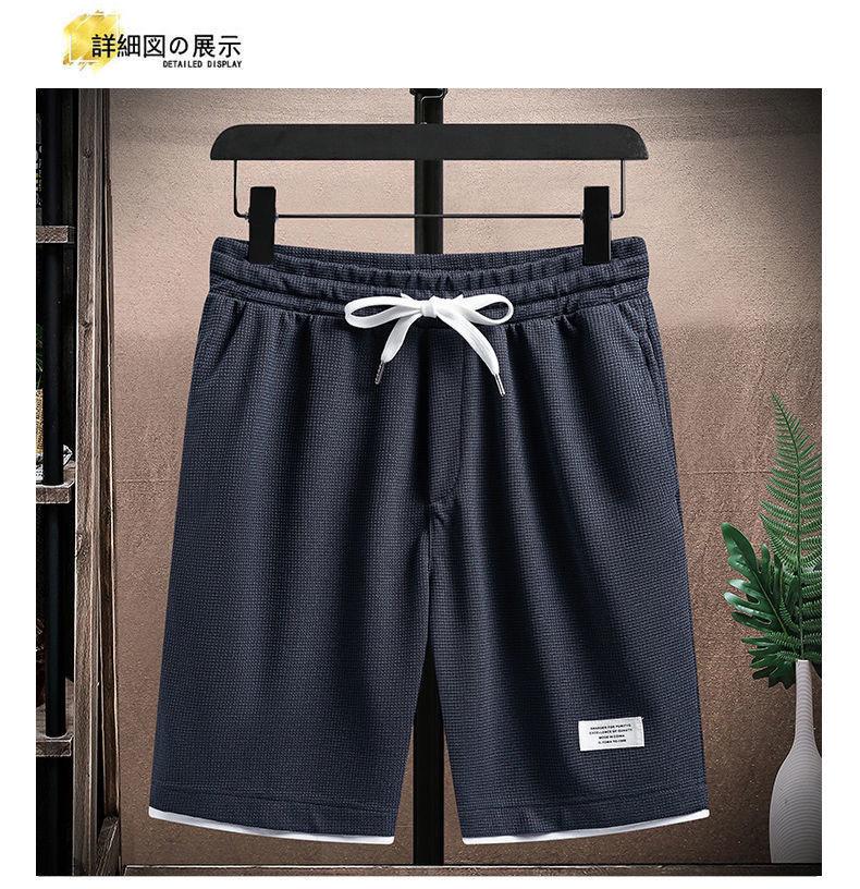 Traje de verano de manga corta con estampado de gofres para hombre, estilo K, holgado, juvenil, atractivo, con pantalones cortos de manga corta, conjunto informal de dos piezas a la moda.