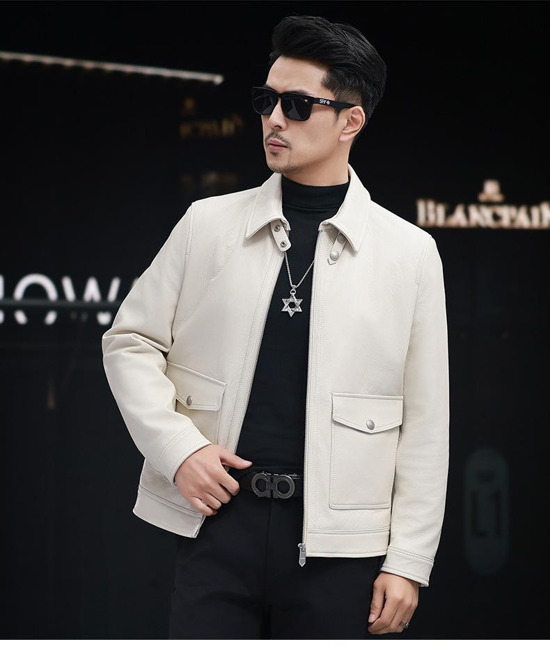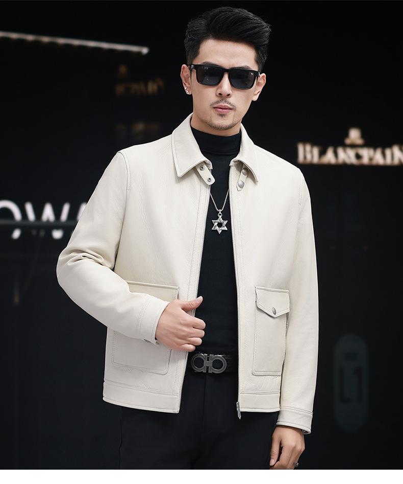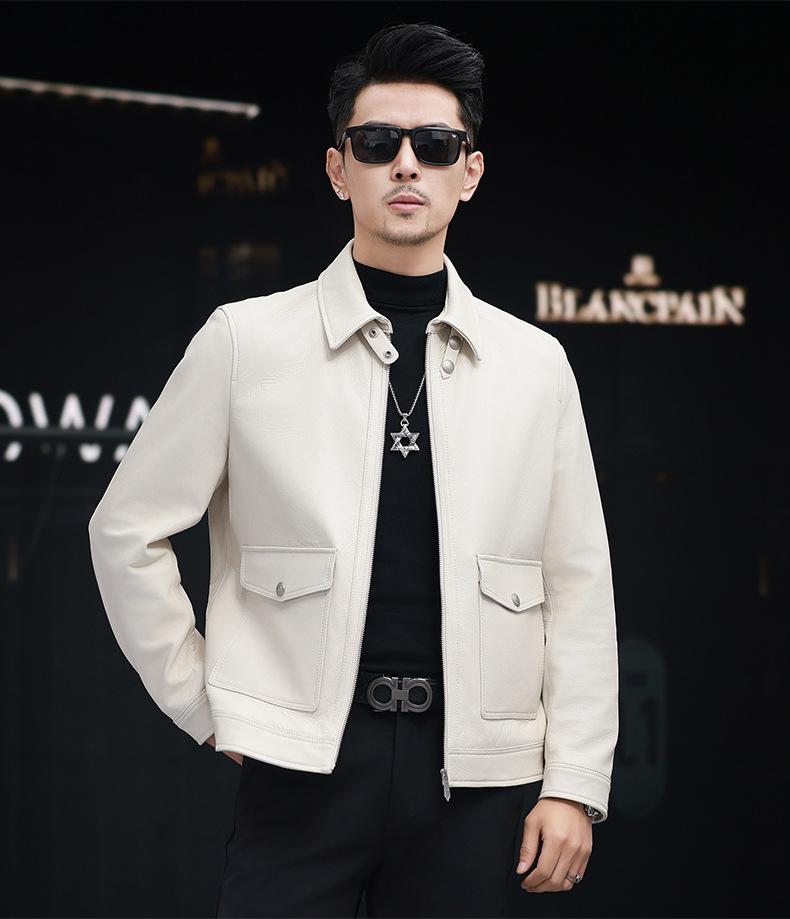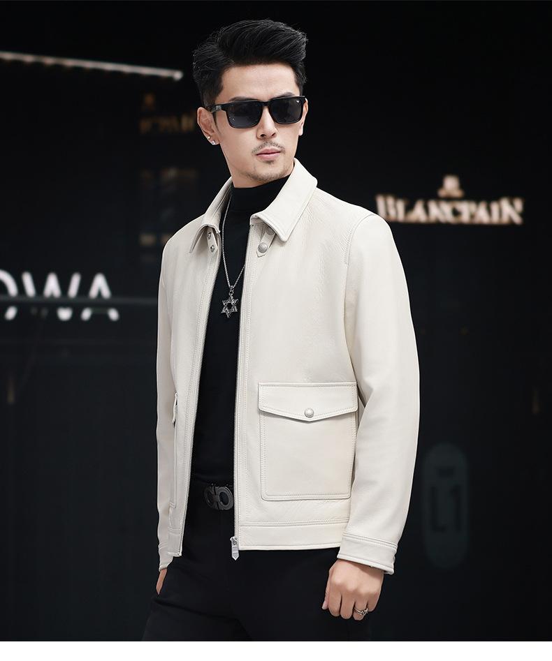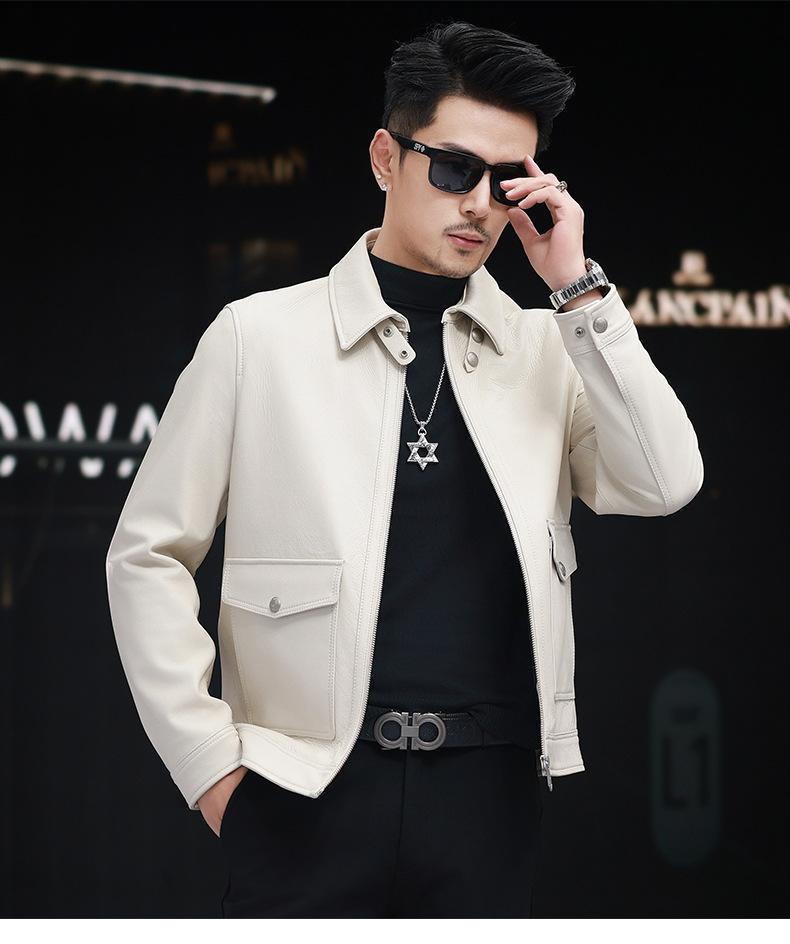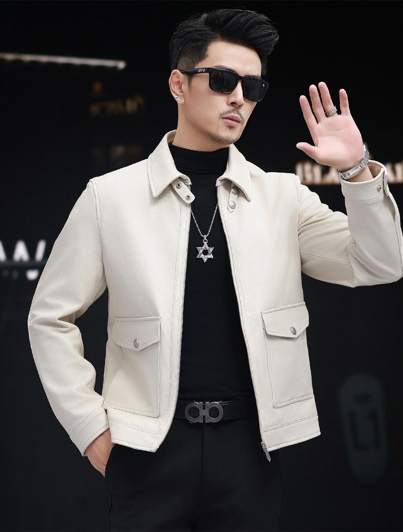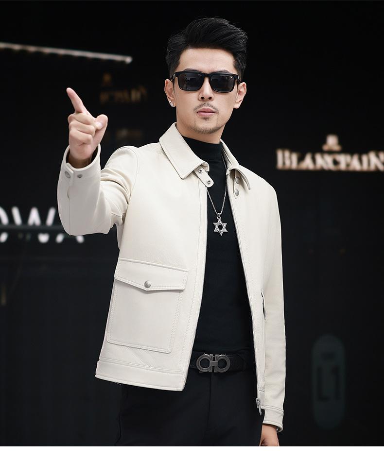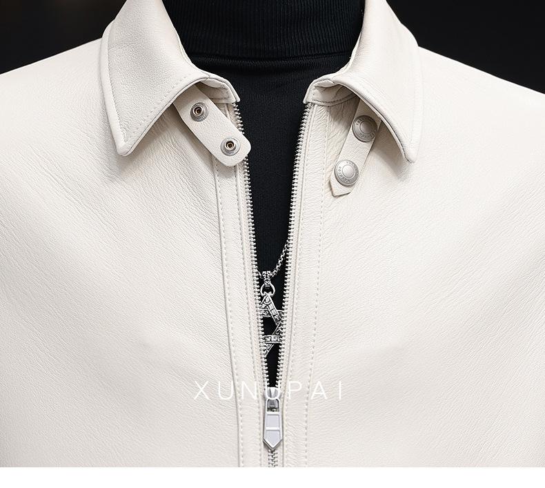 Nuevo Haining Cuero para Hombre Cuero Genuino Duffy Guapo Juvenil Traje Biker Chaqueta de Piel de Oveja Estilo Coreano Ajustado Chaqueta Explosiva Trendy