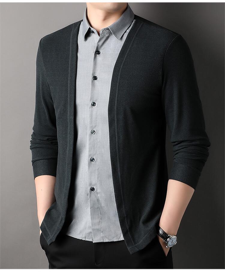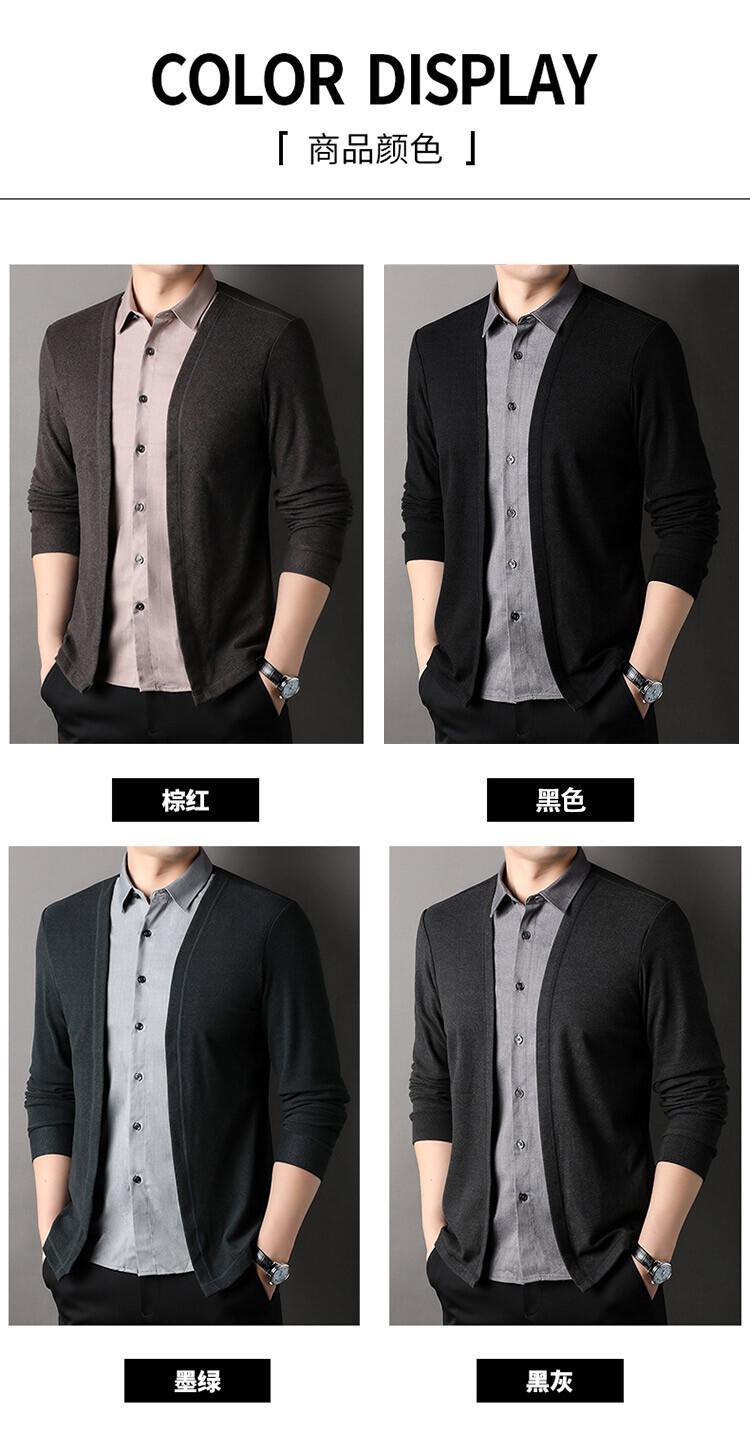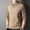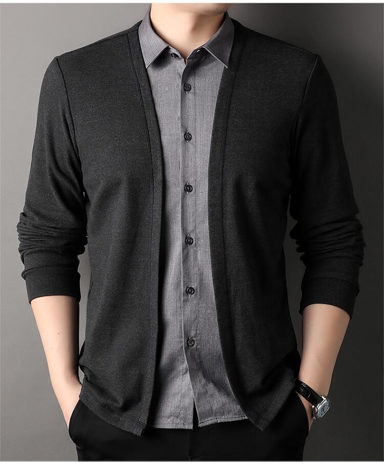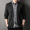 Nuevo Otoño Falso Dos Piezas Camisa Suéter Cárdigan para Hombre Otoño Negocios Casual Jersey Manga Larga Top Chaqueta Venta al por Mayor