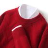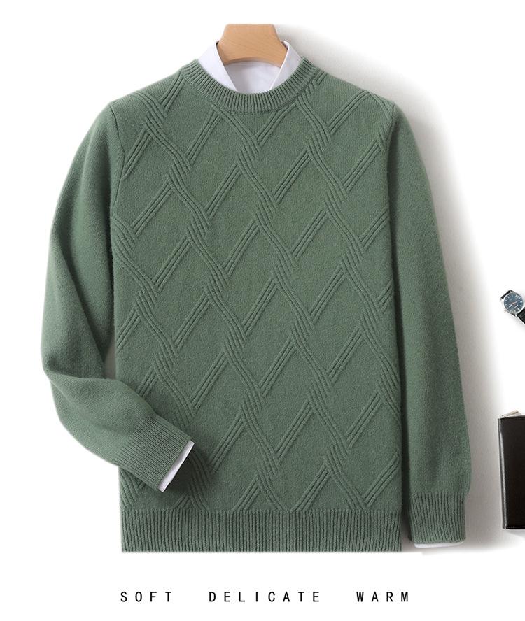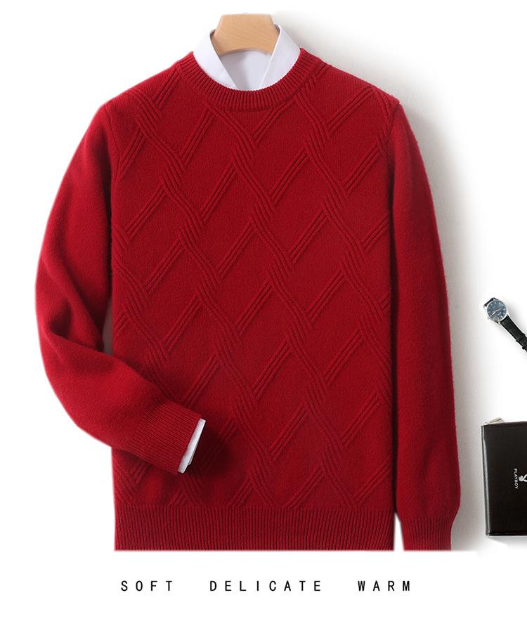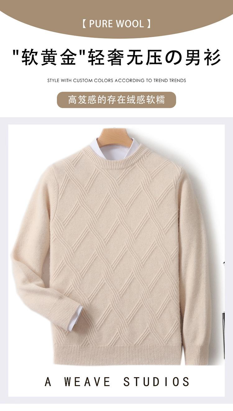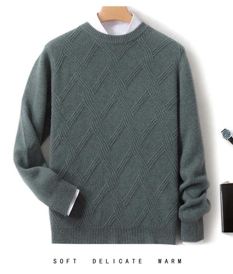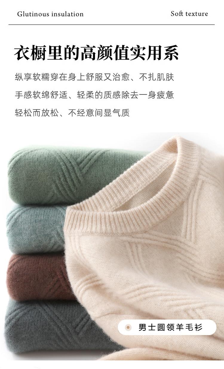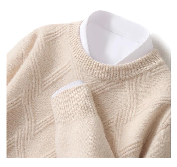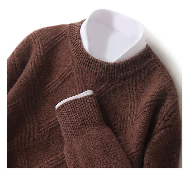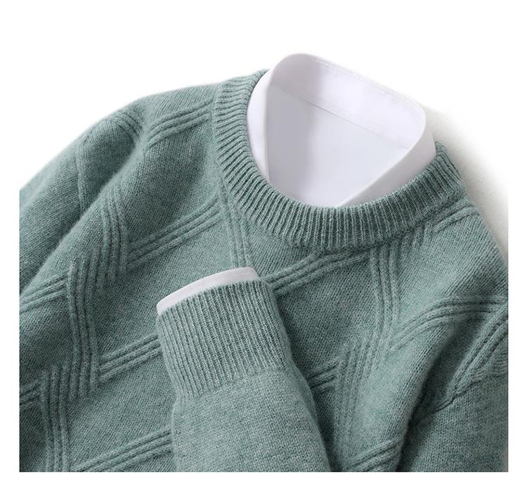 Suéter de lana 100% para hombre, suéter holgado de cuello redondo y grueso, de punto con base de color sólido y jacquard, de cachemira, para otoño e invierno.