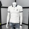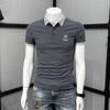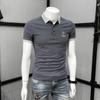 Camiseta de manga corta para hombre, tipo polo, con costuras en contraste de color, moderna, de media manga, estilo empresarial, de verano, con solapa bordada.
