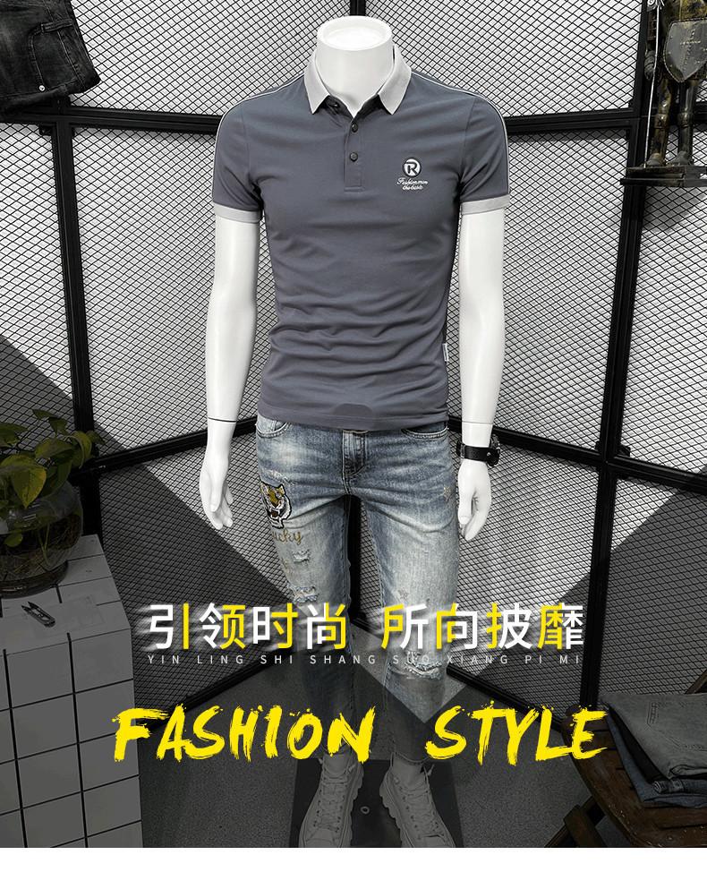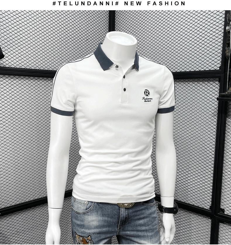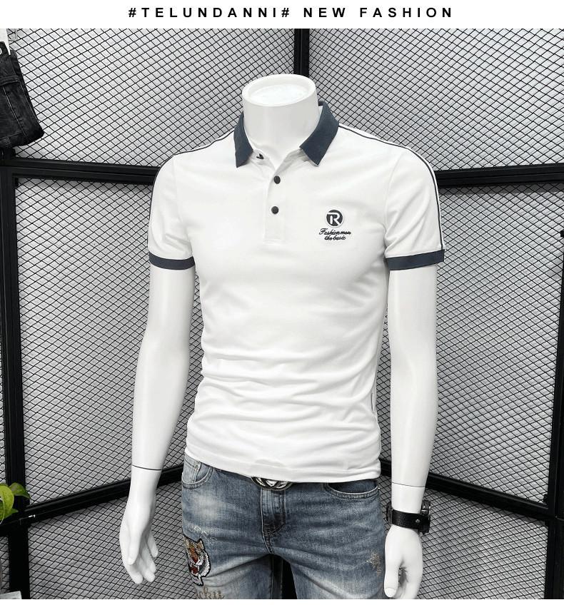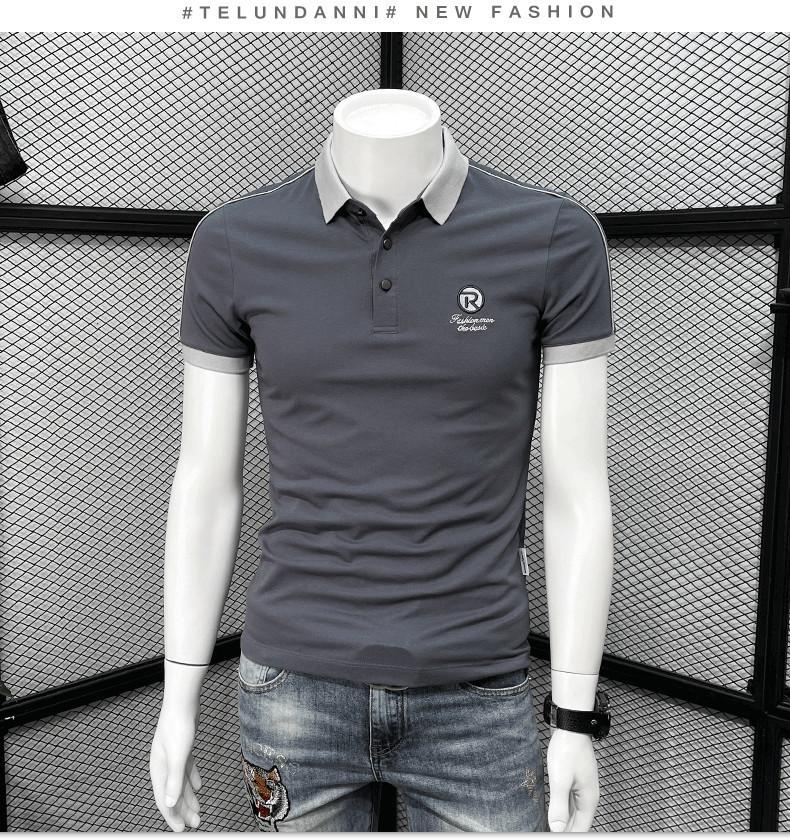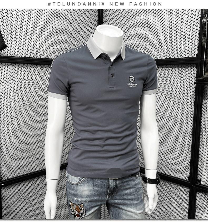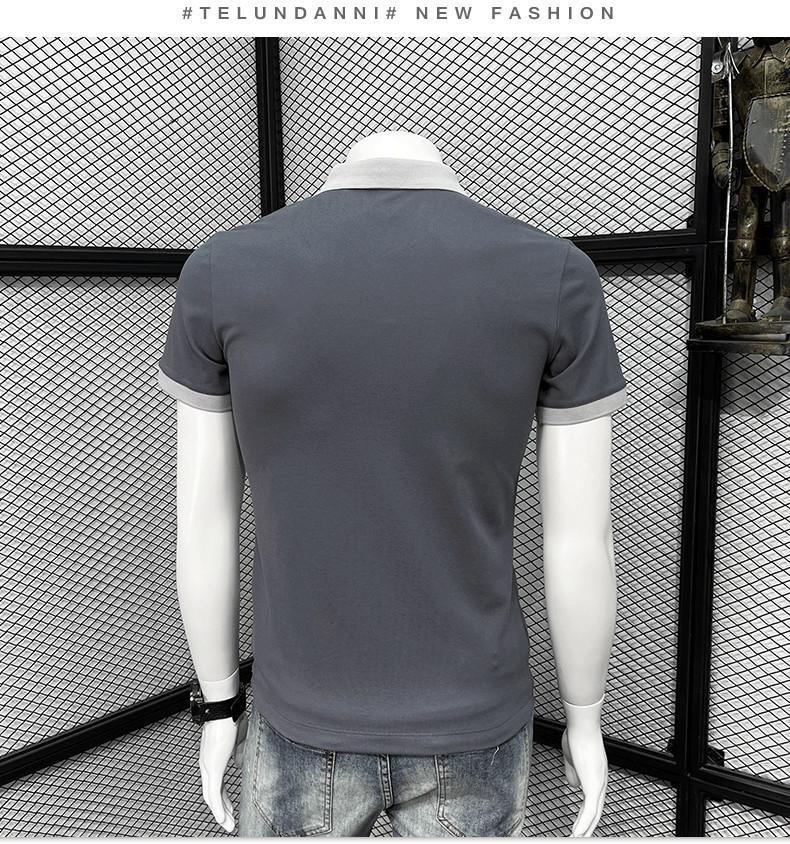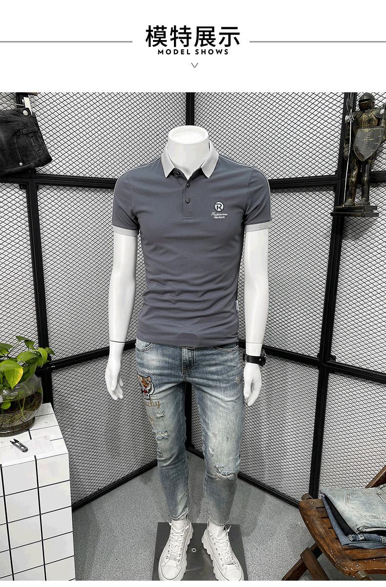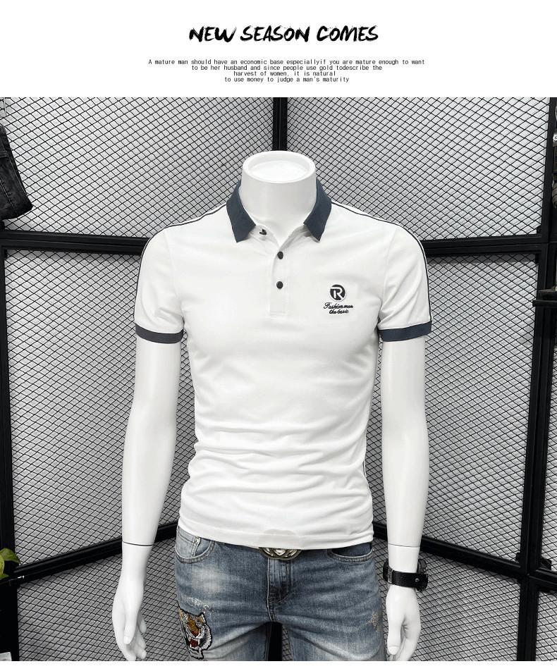 Compra Camiseta de manga corta para hombre, tipo polo, con costuras en contraste de color, moderna, de media manga, estilo empresarial, de verano, con solapa bordada. al por mayor en Joom.pro