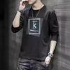 Camiseta de manga larga para hombre, nueva calidad, otoño e invierno, camiseta estampada, cuello redondo, talla grande, ropa de moda para hombre.