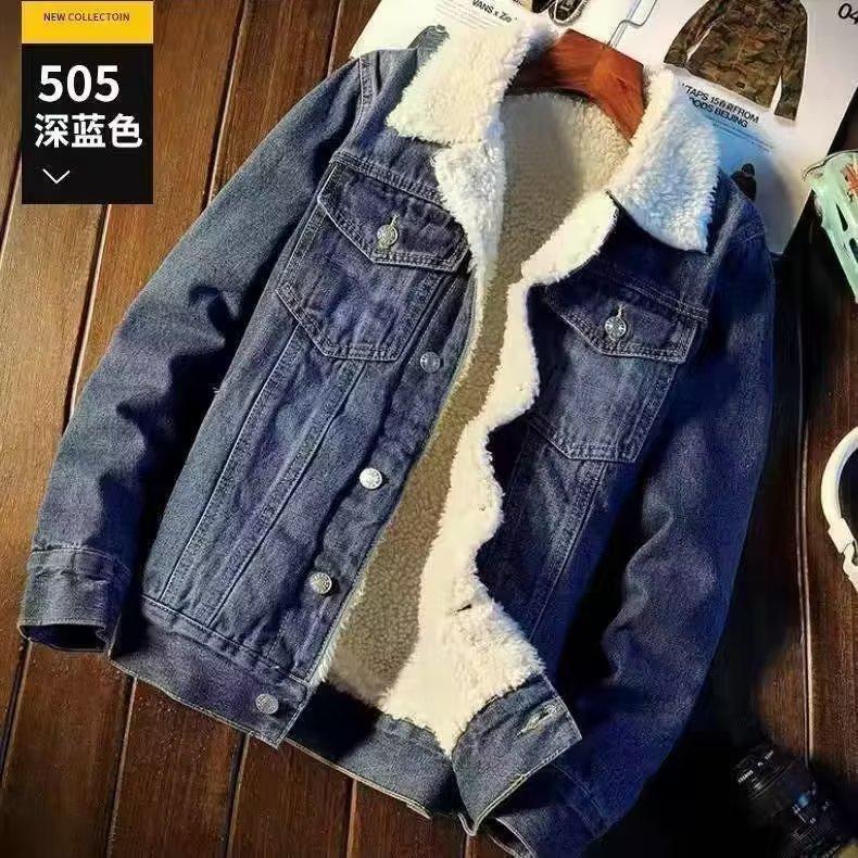 Abrigo vaquero con forro polar de invierno para hombre, chaqueta de cachemira gruesa y cálida, abrigo holgado de talla grande con relleno de algodón para otoño e invierno.