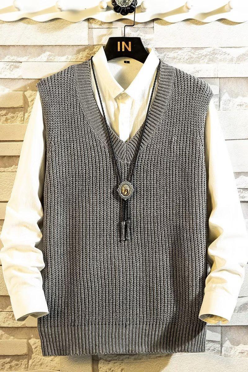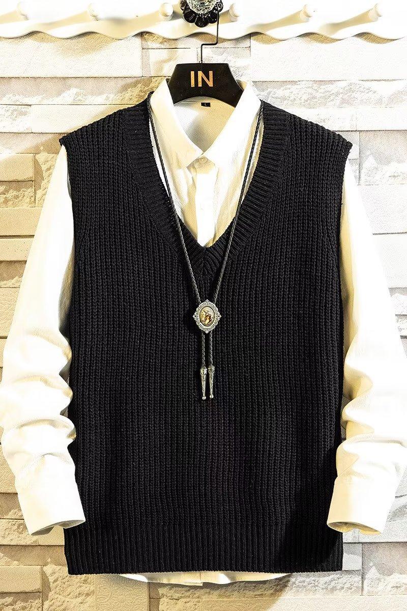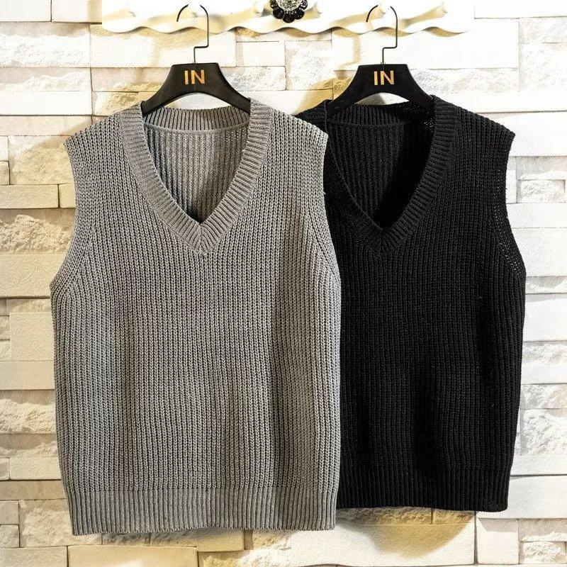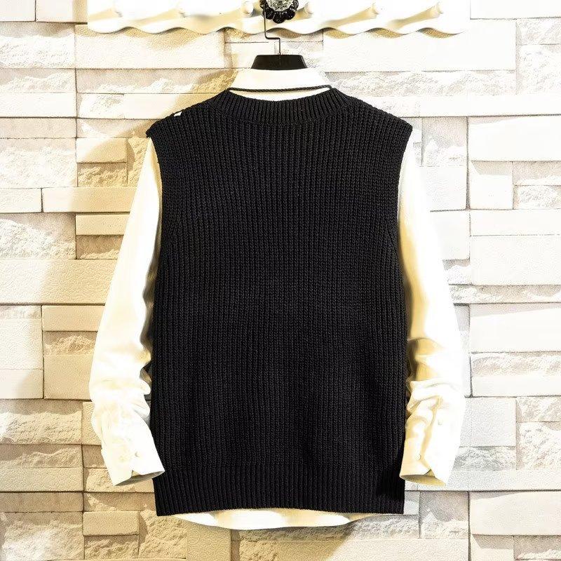 Chaleco tipo suéter holgado estilo Hong Kong para hombre, chaqueta sin mangas holgada estilo coreano para otoño e invierno, chaleco tipo suéter con combinación de varias telas.