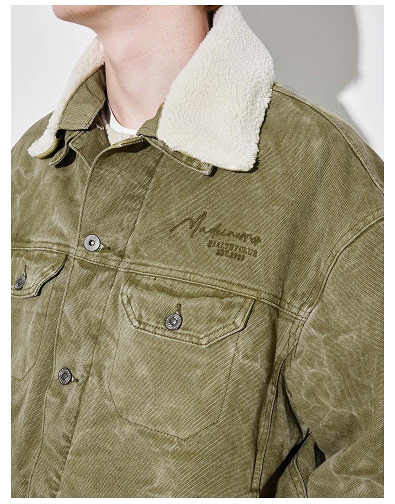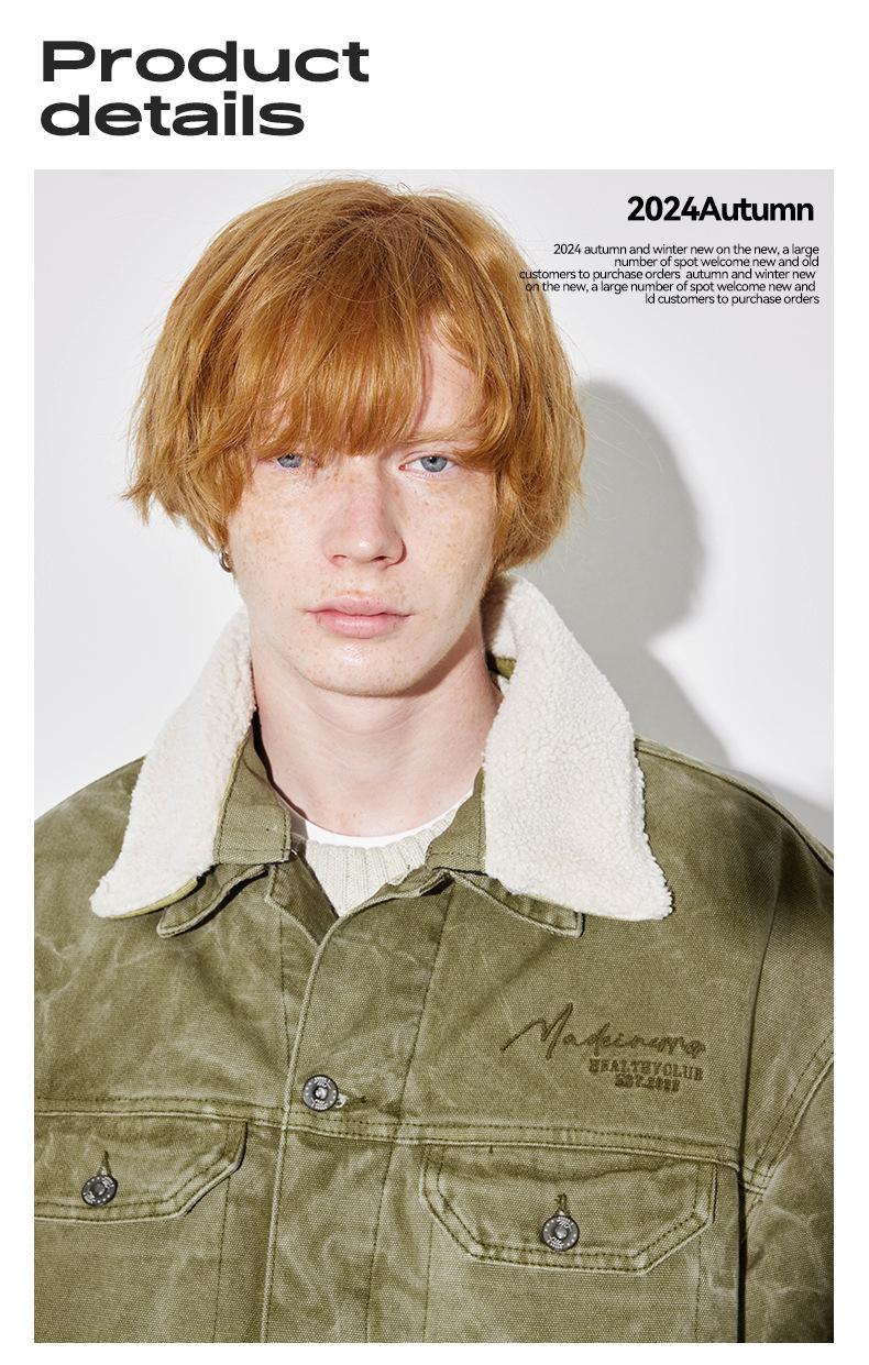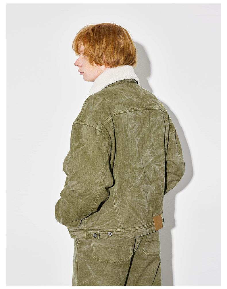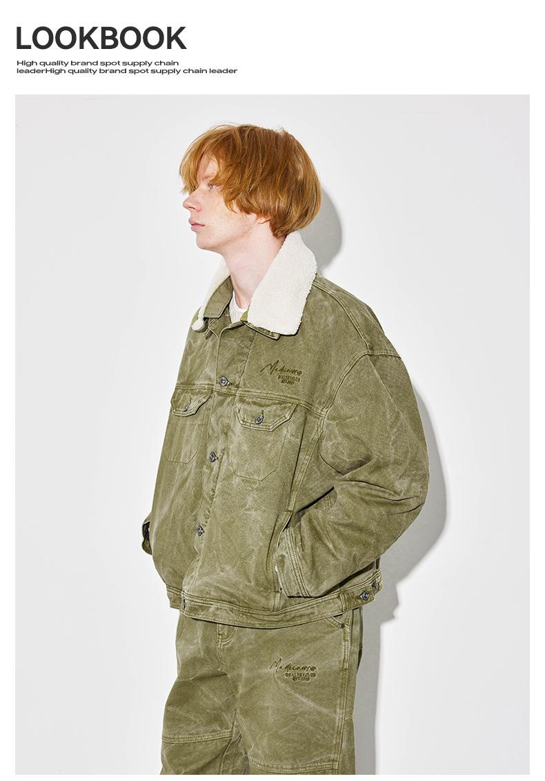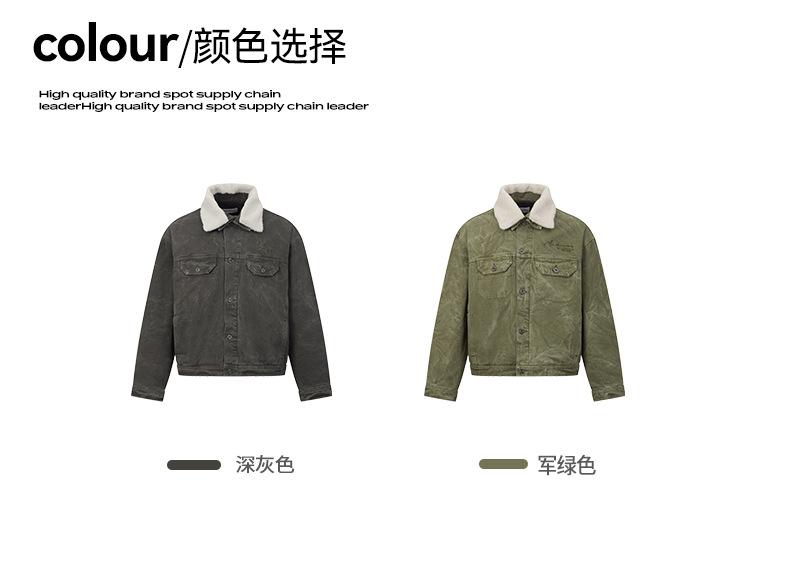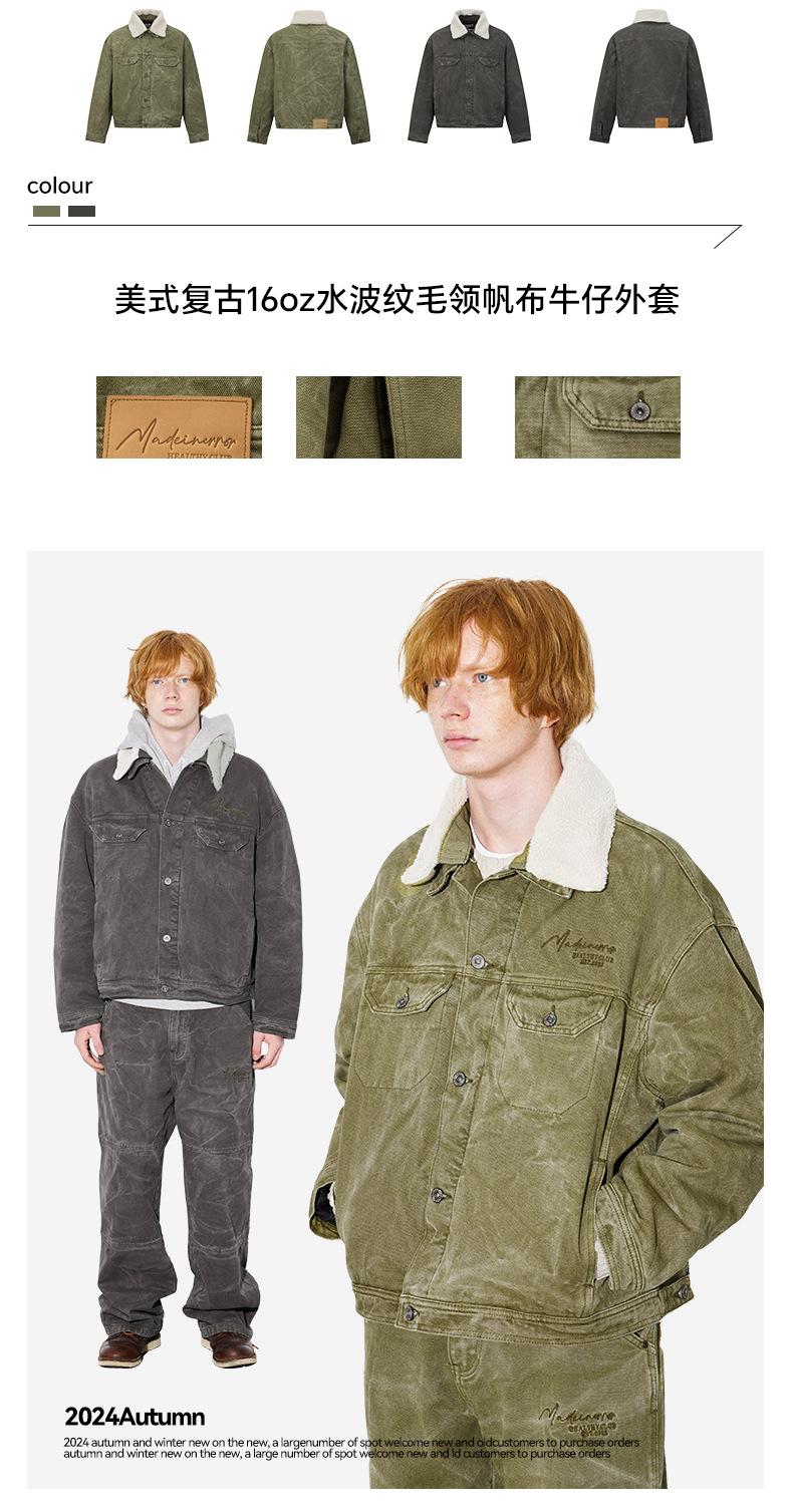 Unf 2024 Otoño e Invierno Nuevo Americano Retro Grueso Cálido Chaqueta para el Hogar Cuello de Piel Ondulado de Agua Chaqueta de Mezclilla de Lona