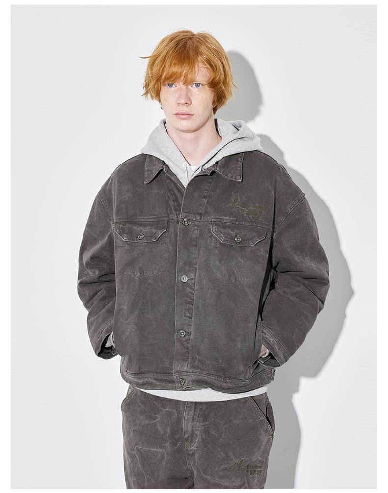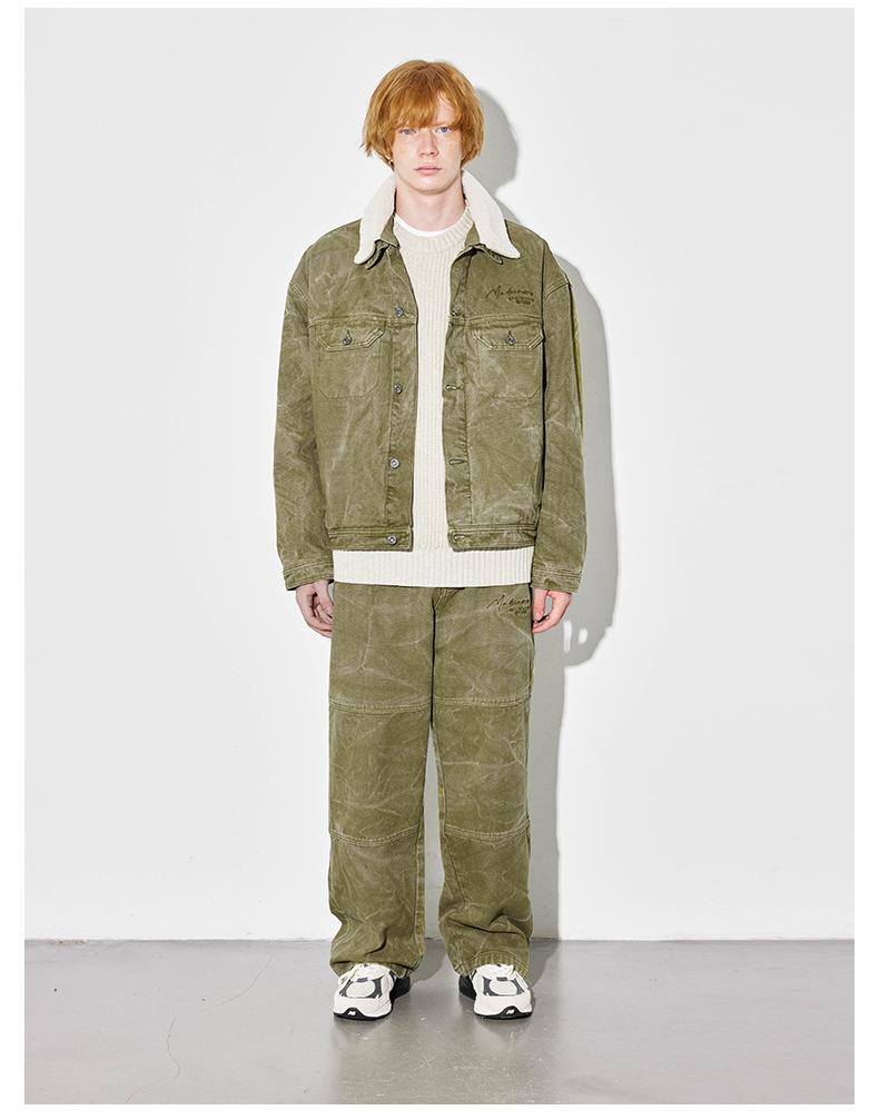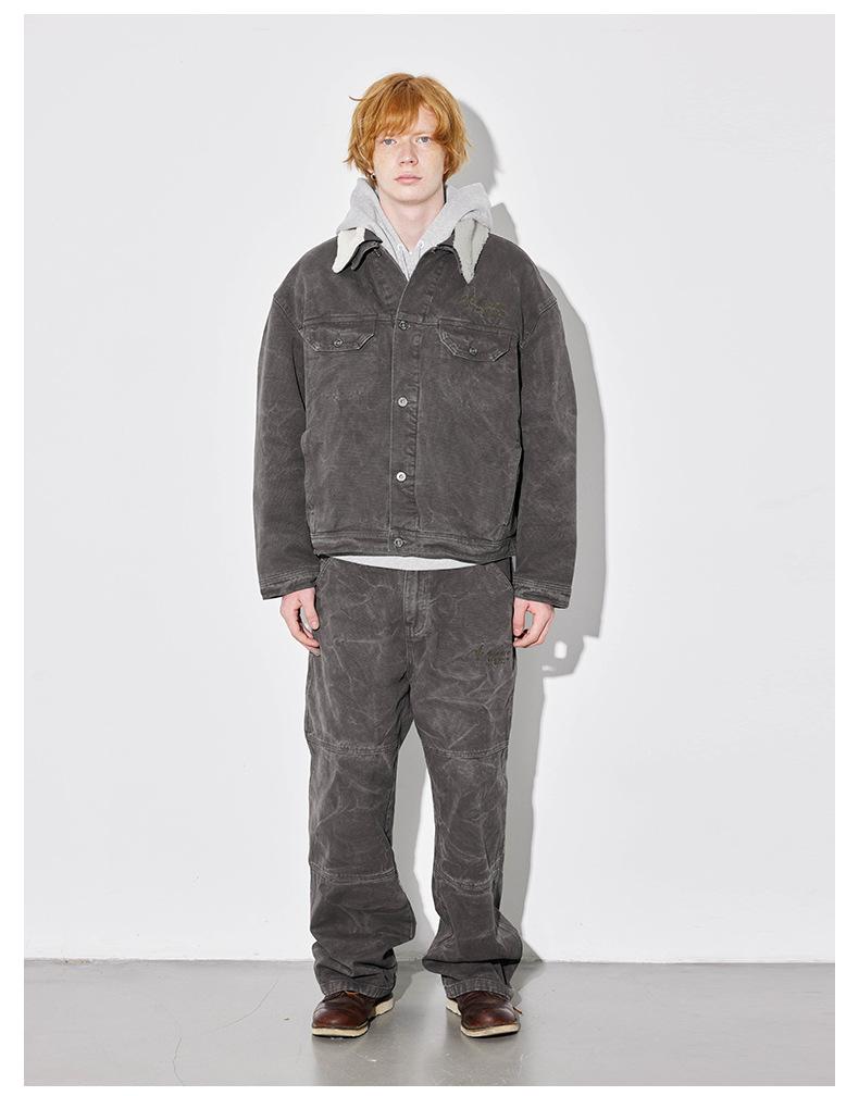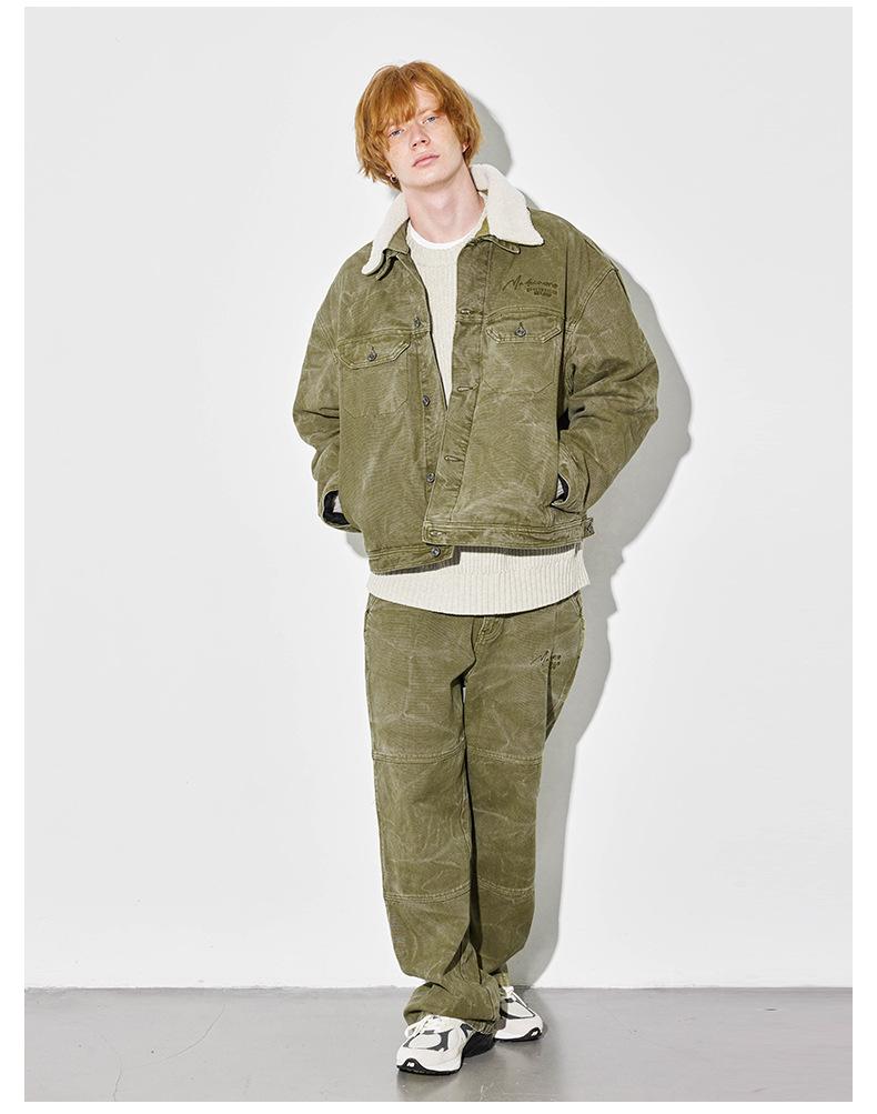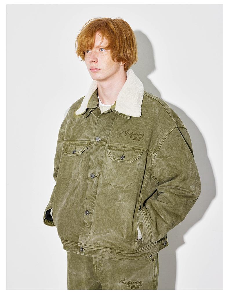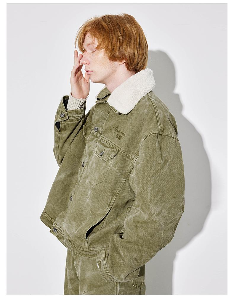 Unf 2024 Otoño e Invierno Nuevo Americano Retro Grueso Cálido Chaqueta para el Hogar Cuello de Piel Ondulado de Agua Chaqueta de Mezclilla de Lona