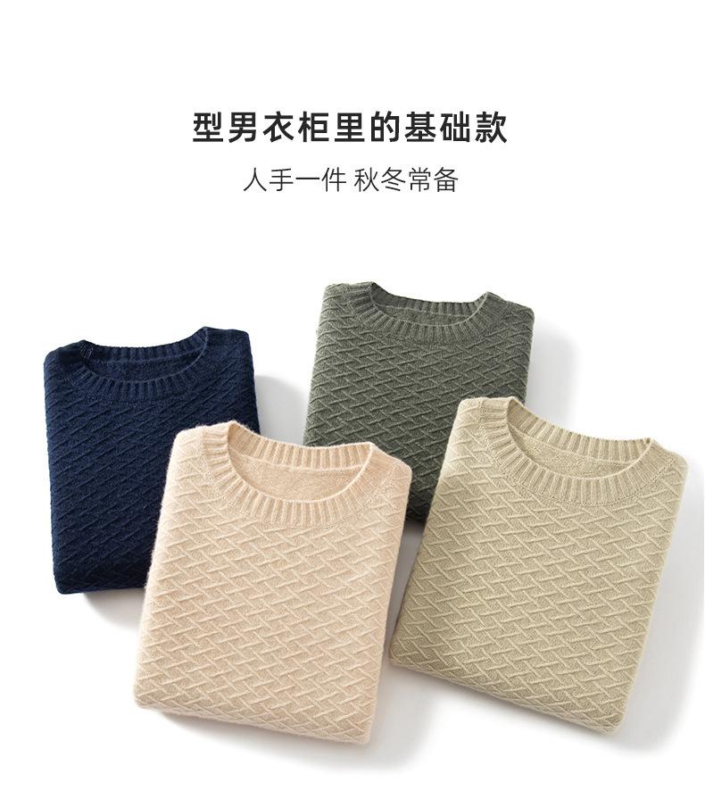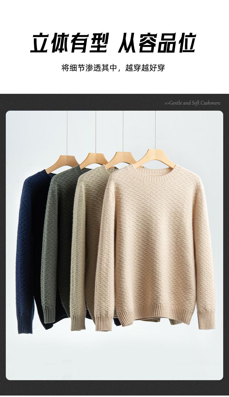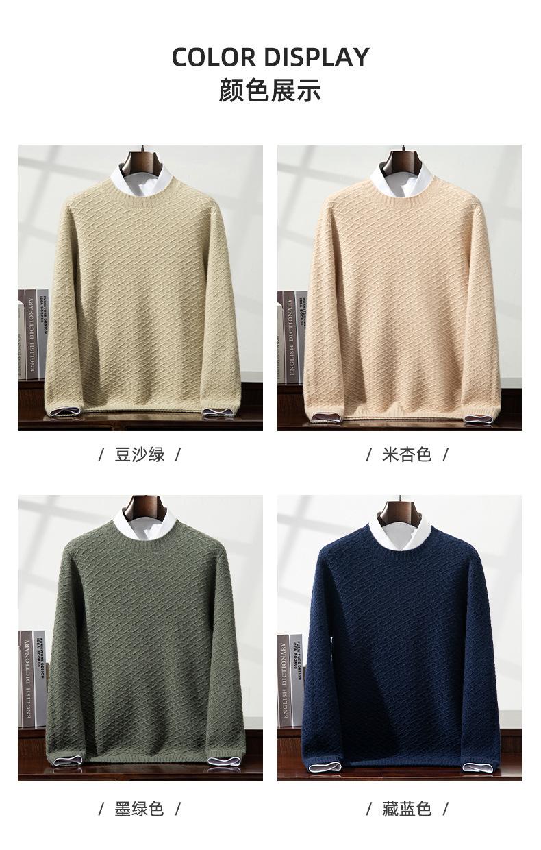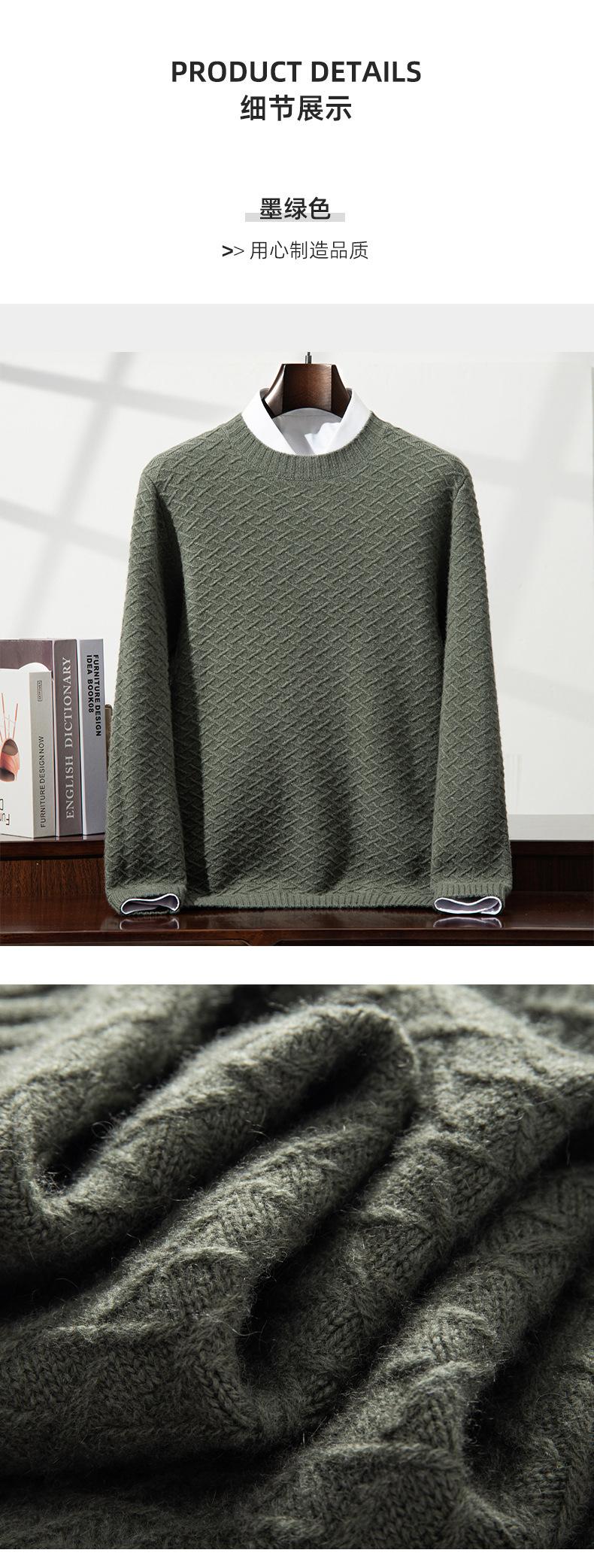 Suéter de cachemira de montaña grueso de alta gama, cuello redondo, suéter de punto de talla grande, para hombre, otoño e invierno, negocios y ocio transfronterizos.