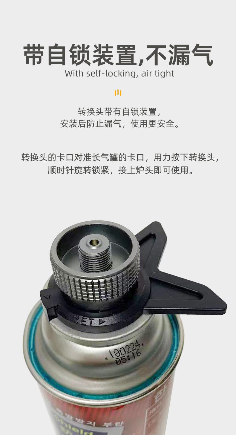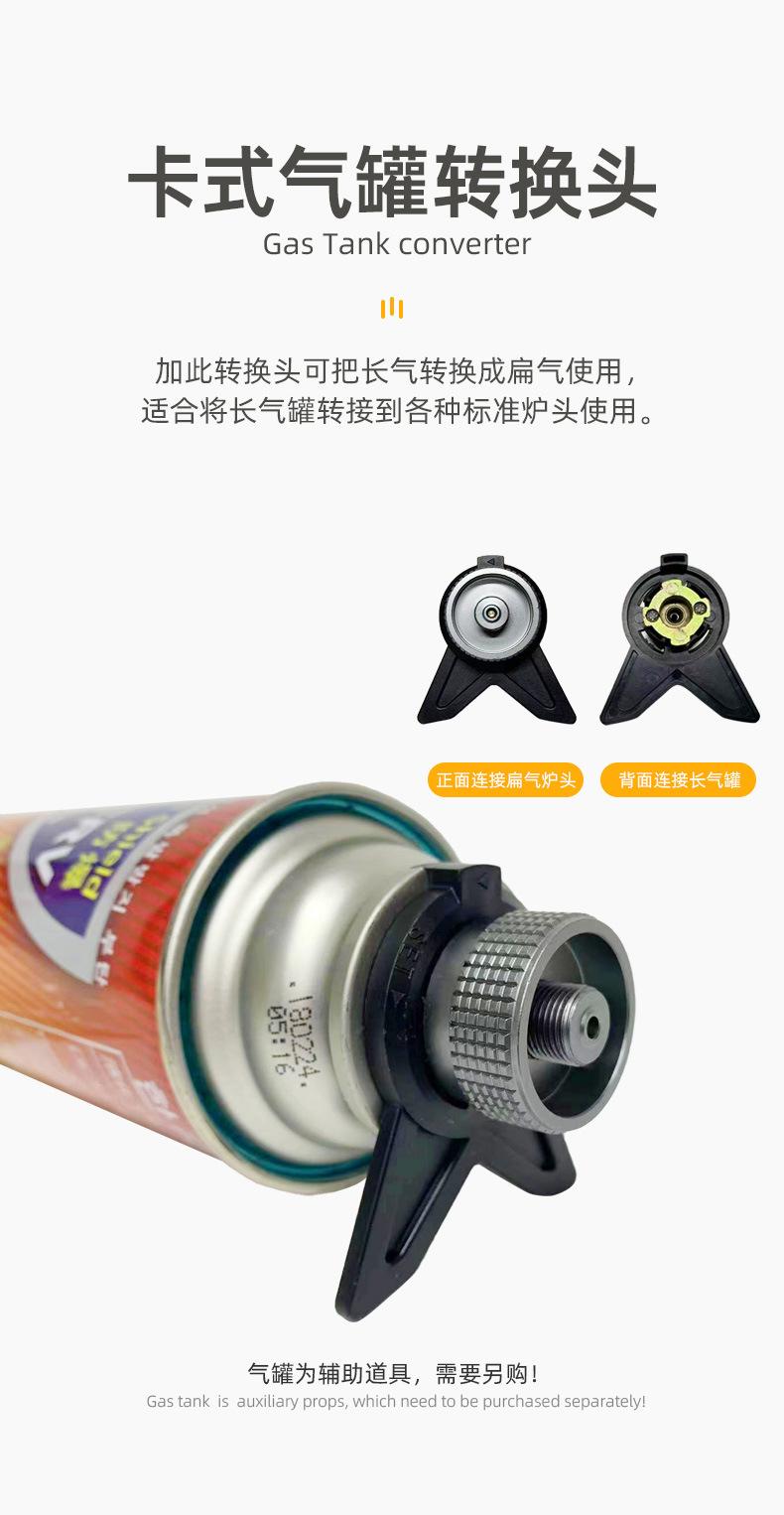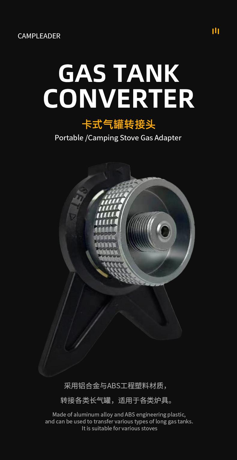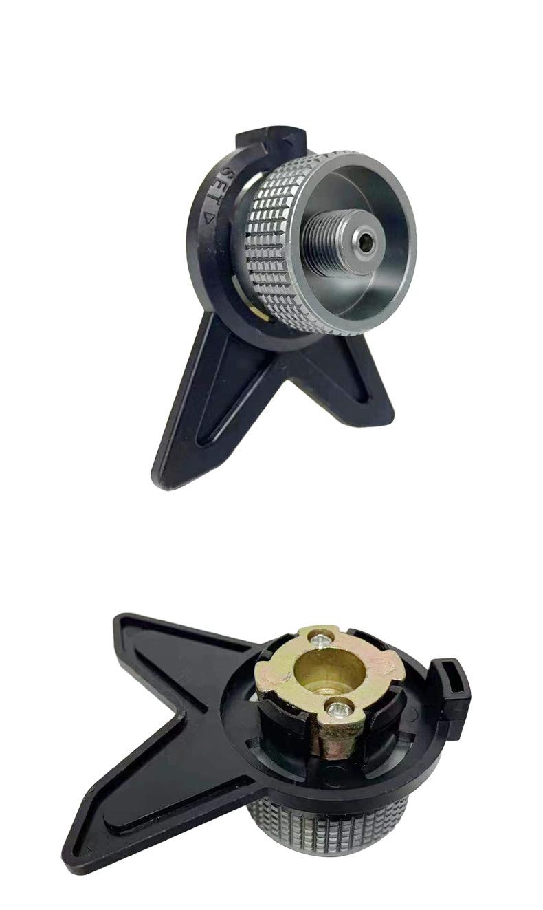 Adaptador de gas plano con cabezal de conversión redondo para exteriores con soporte para estufa de camping, conector fijo para estufa de gas butano.
