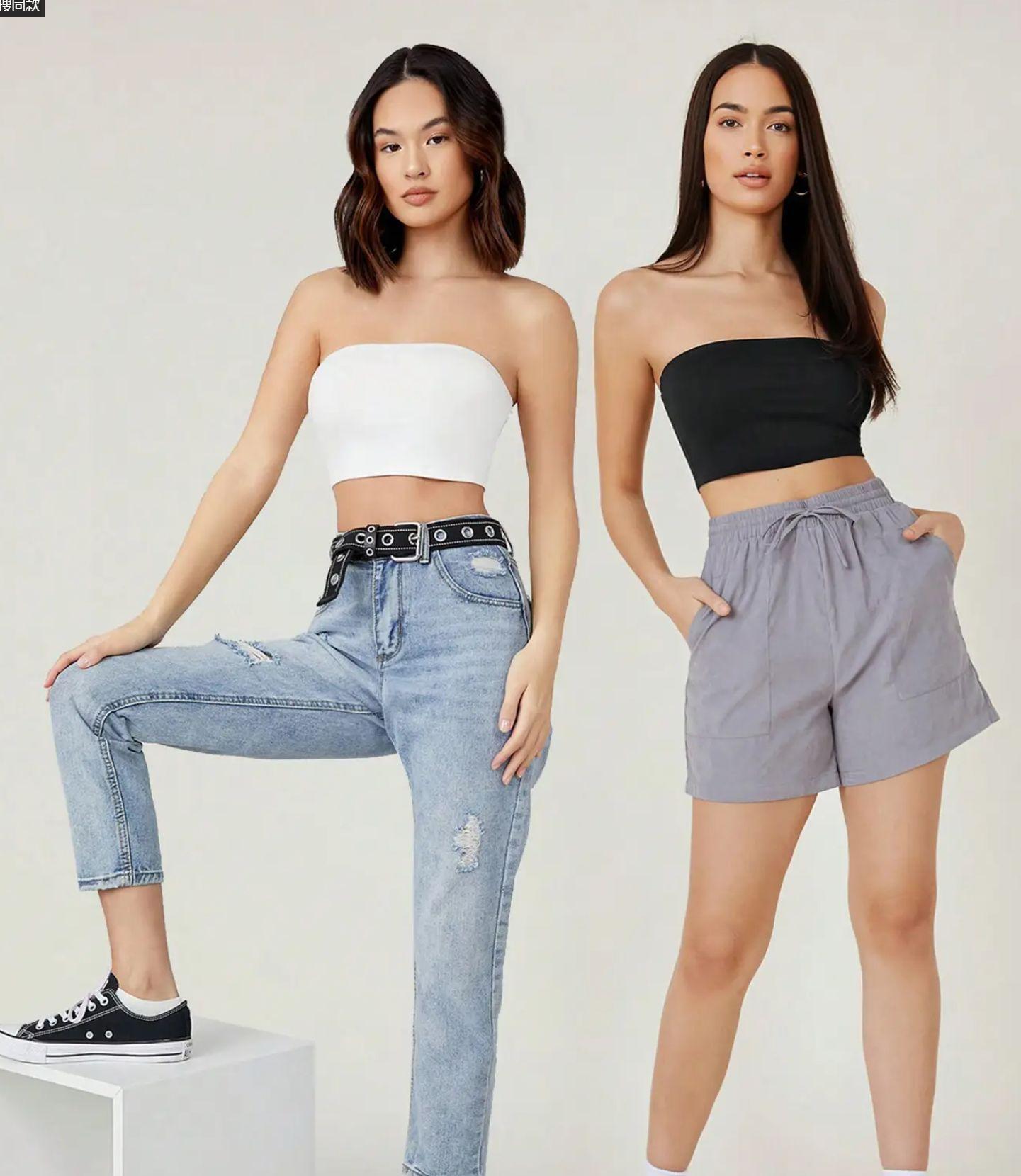 Ropa interior fina de una pieza sin tirantes de verano europea y americana para mujer, sin tirantes, anti-correr, color sólido, base pequeña, chaleco superior