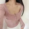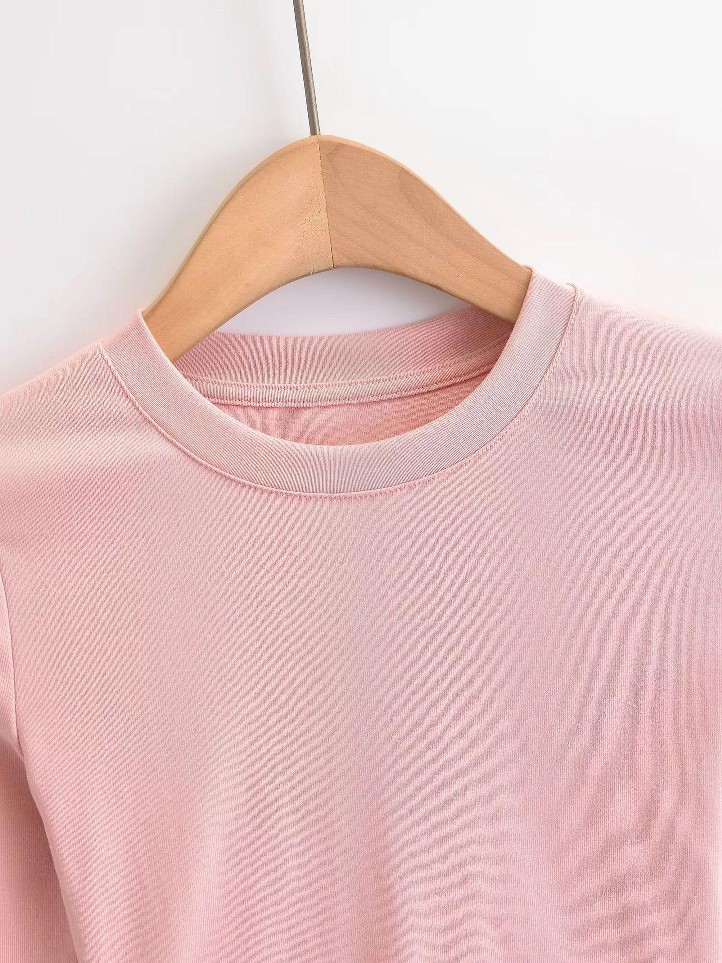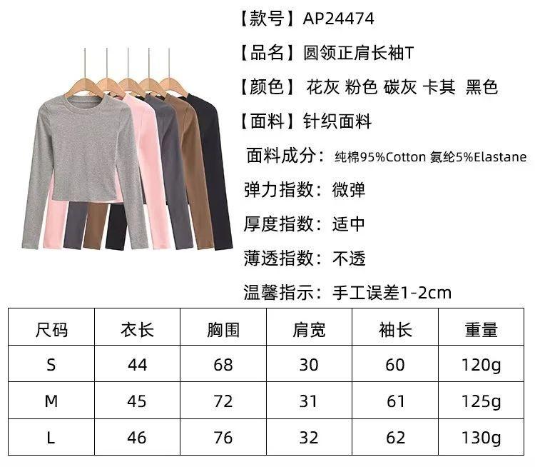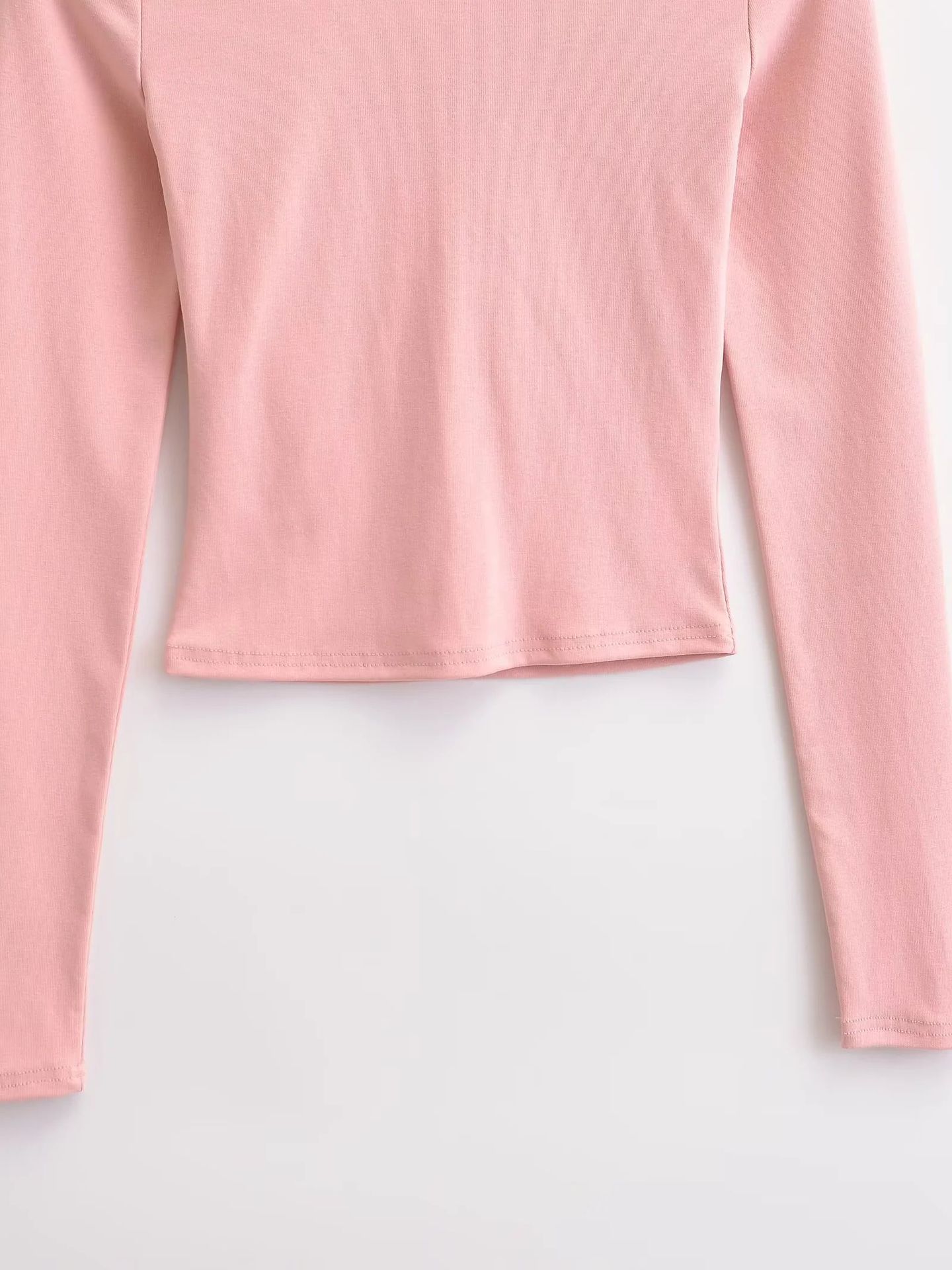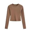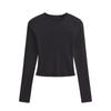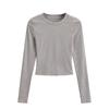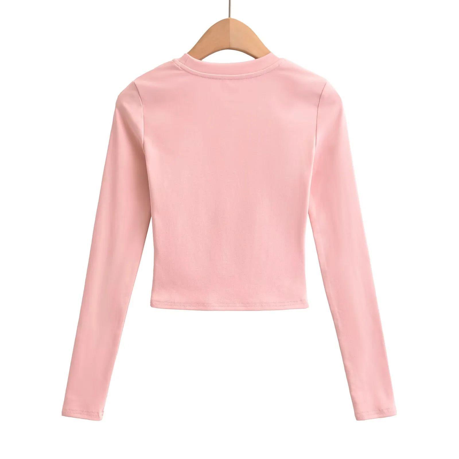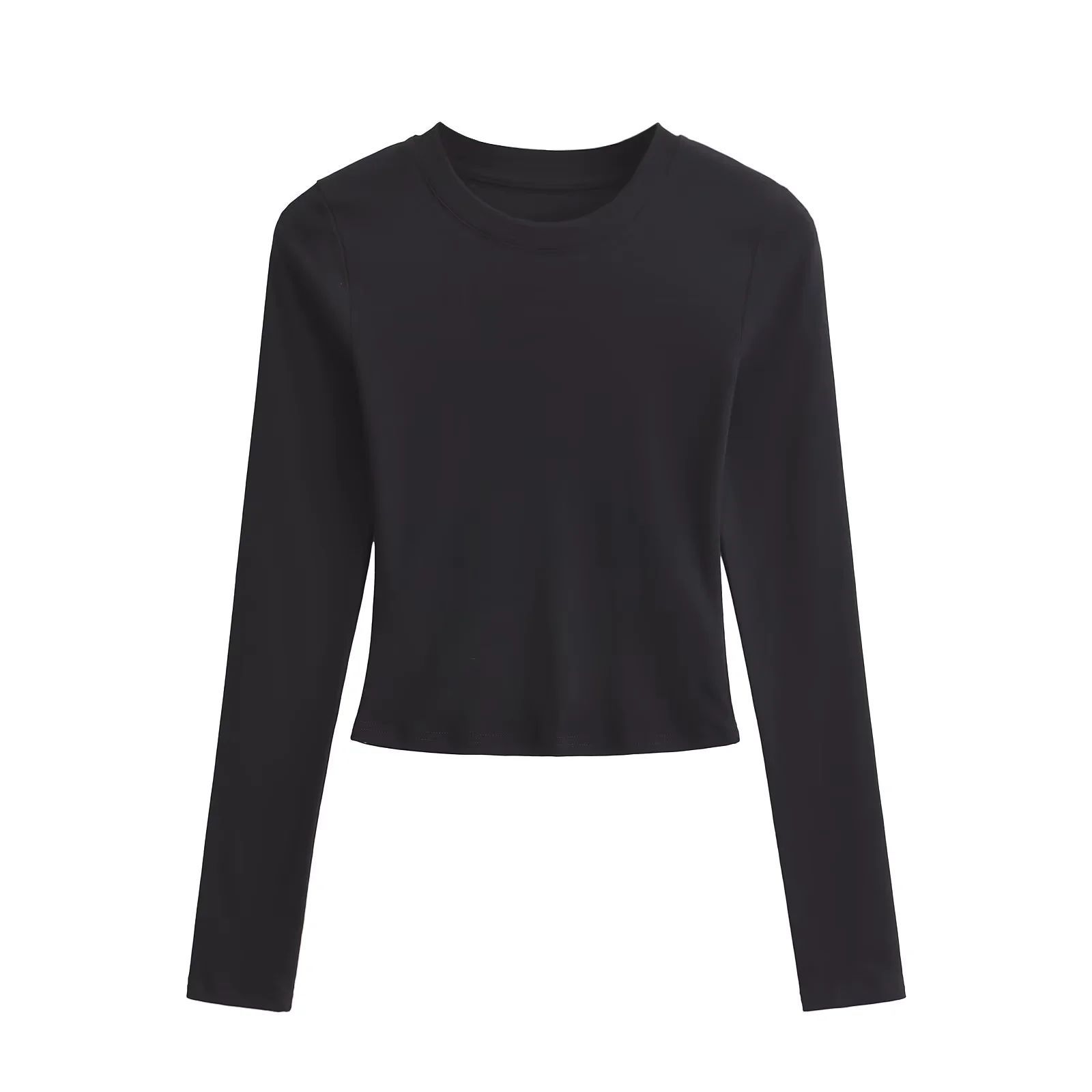 Camiseta básica de color liso con cuello redondo y manga larga para mujer, otoño 2024, estilo americano, estilo Spice Girl, corte entallado interior.