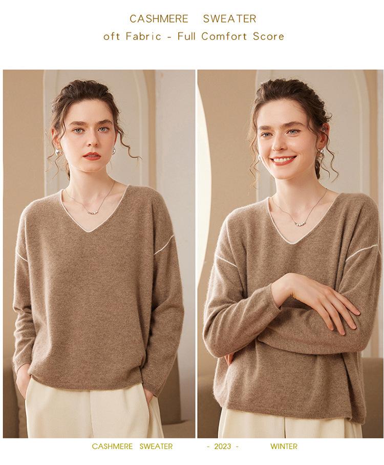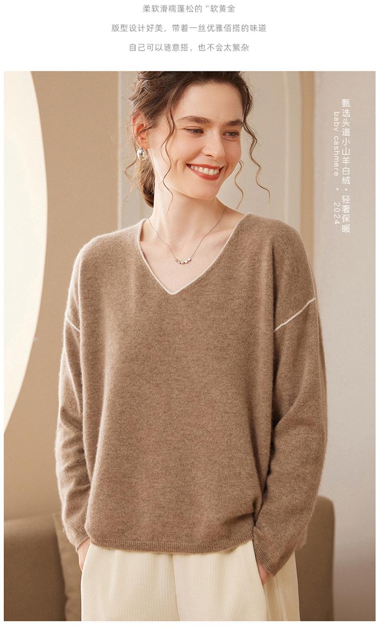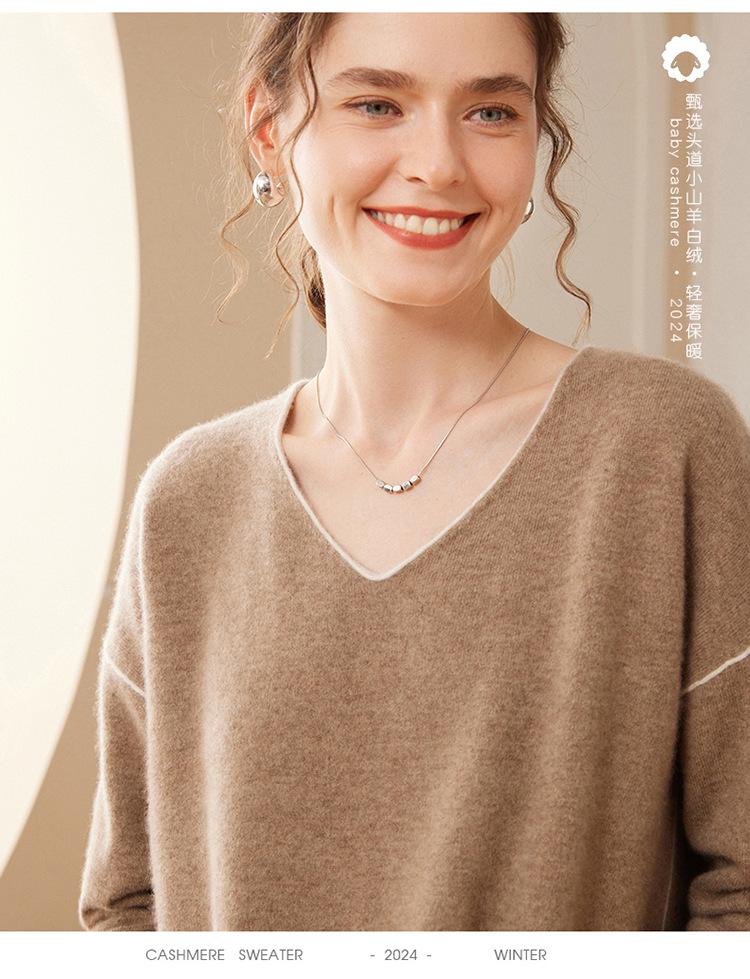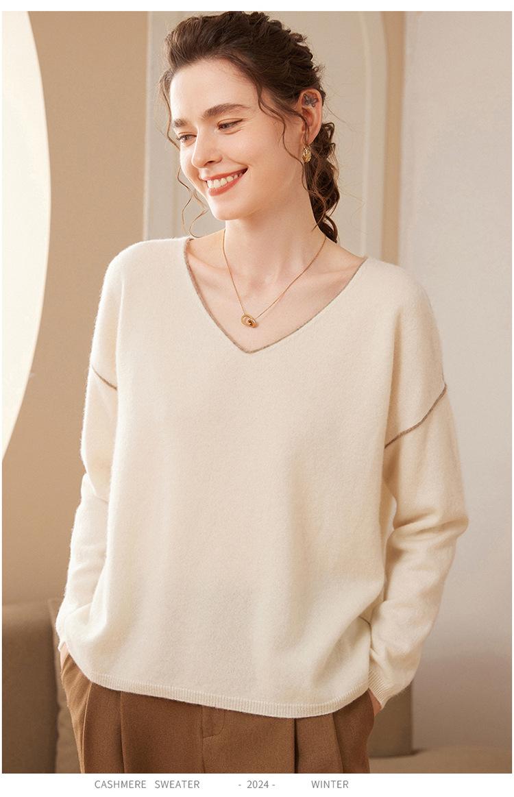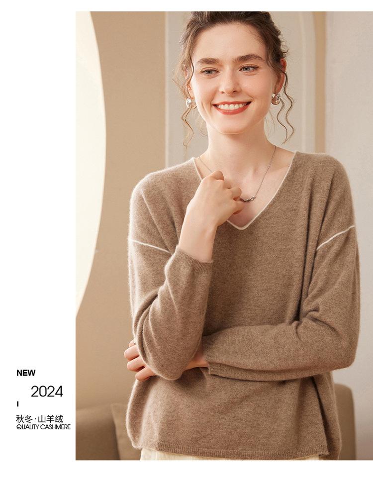 Suéter holgado de punto de cachemira para mujer, jersey de manga larga con cuello en V, estilo informal, otoño e invierno, 2024