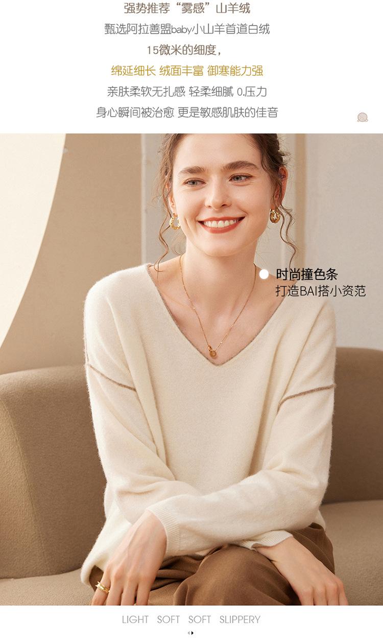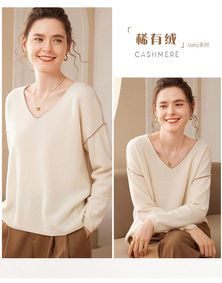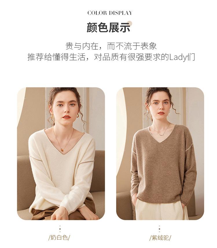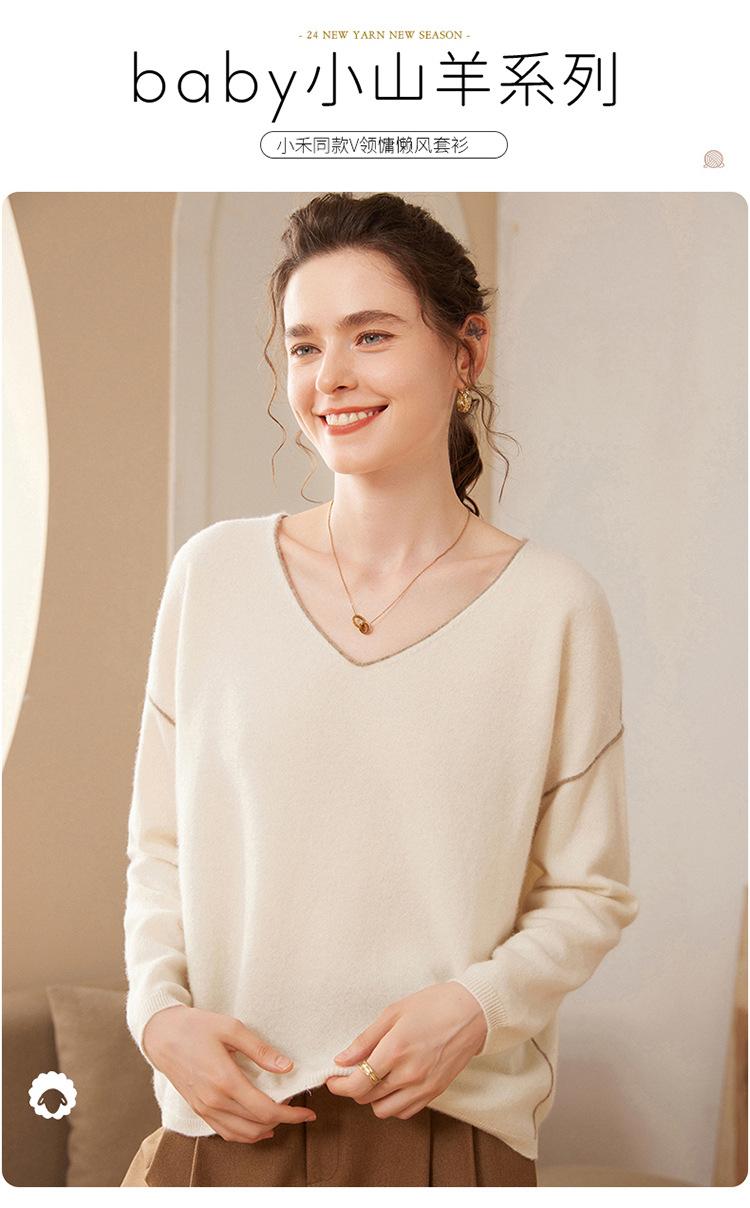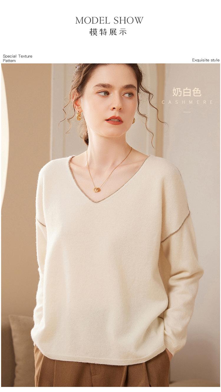 Suéter holgado de punto de cachemira para mujer, jersey de manga larga con cuello en V, estilo informal, otoño e invierno, 2024