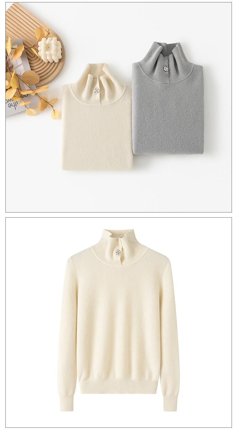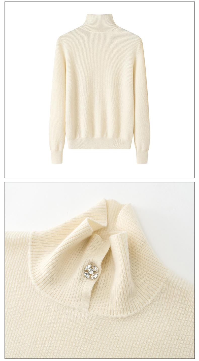Otoño e invierno Nuevo Cuello Alto puro cachemir suéter de mujer cálido manga larga color sólido suéter básico de punto