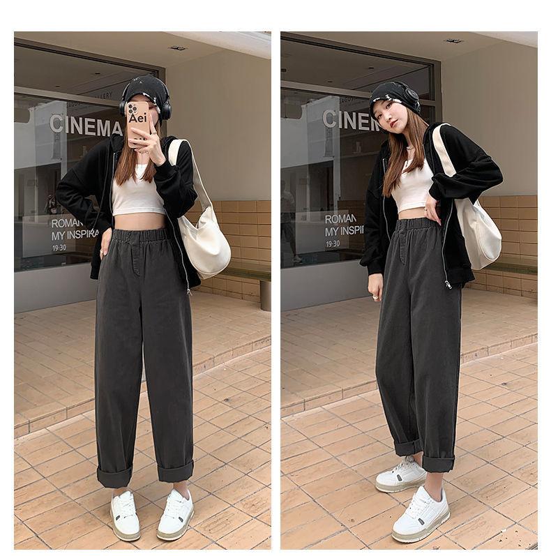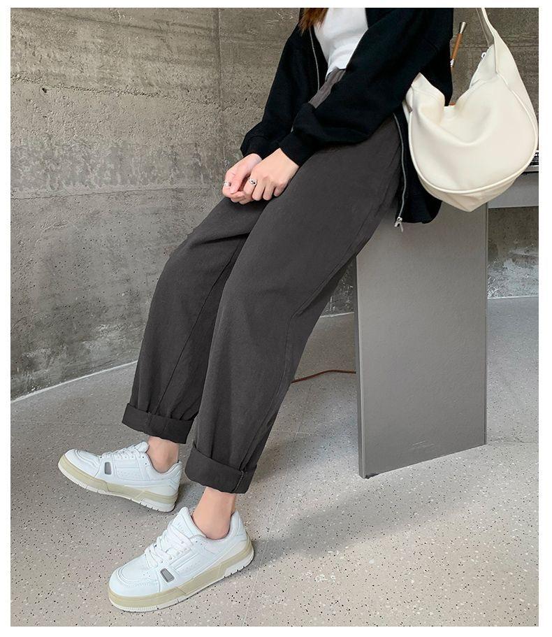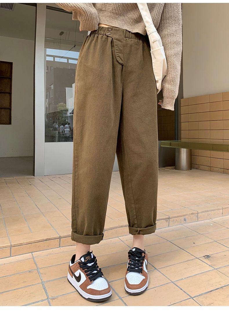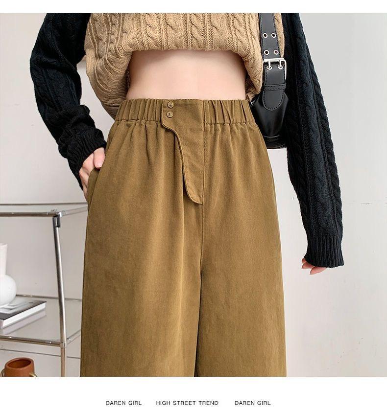 Pantalones casuales holgados y adelgazantes de cintura alta, modernos y combinables con todo, de pierna ancha, estilo americano, nuevos pantalones Machete sencillos Hallen para mujer.