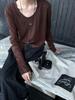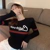 Camiseta blanca ajustada hermosa y popular de principios de otoño para mujer, nueva camiseta de manga larga de punto elegante coreana ligera y transpirable de 2024