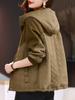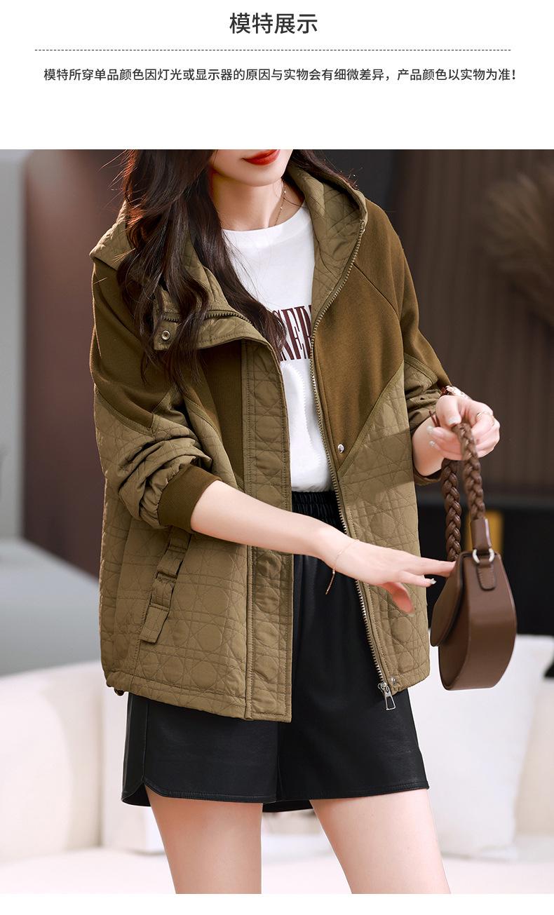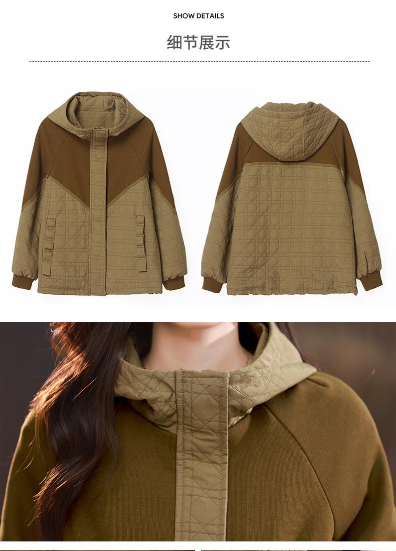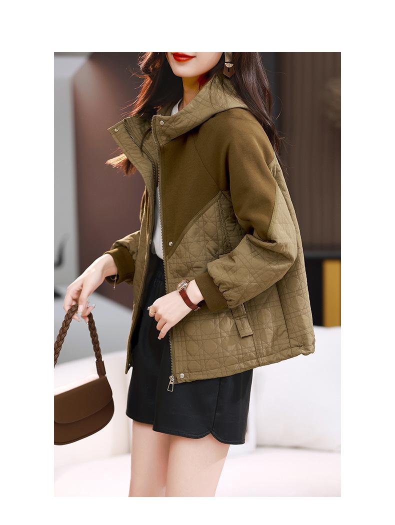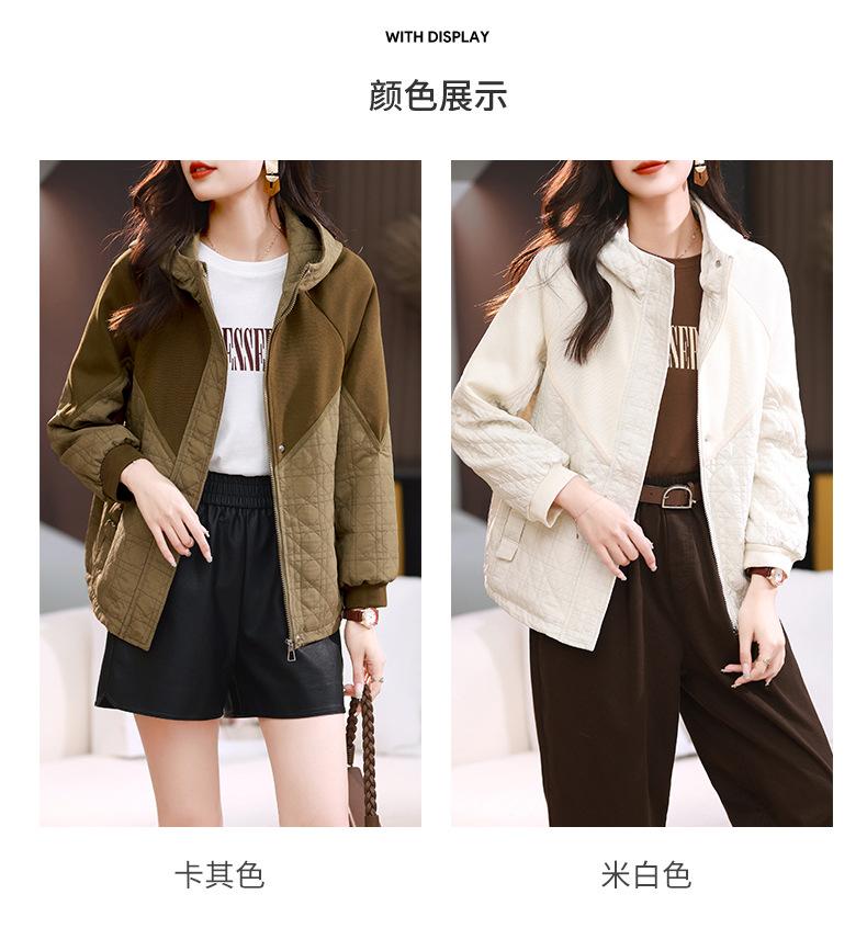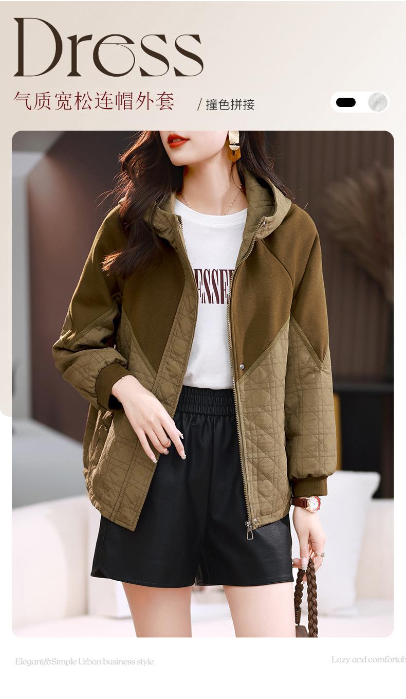 Abrigo grueso de primavera y otoño para mujer, moda informal 2024, con capucha, costuras de color en contraste, chaqueta corta, suelta y elegante.