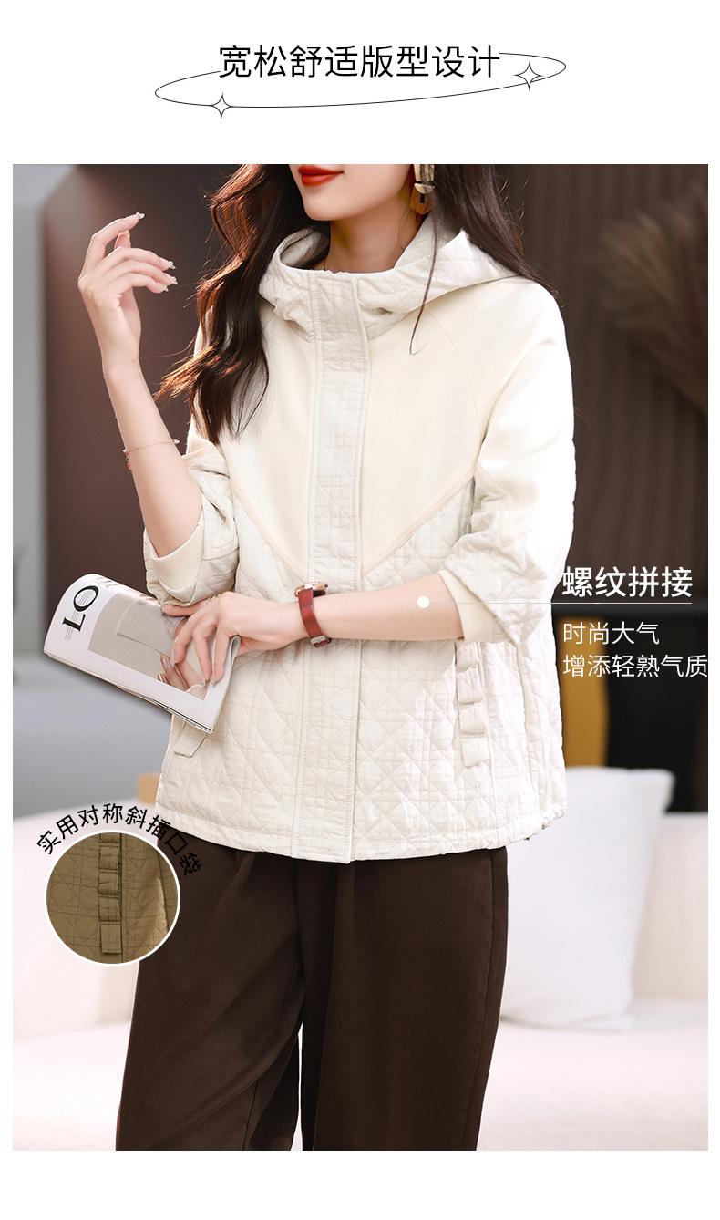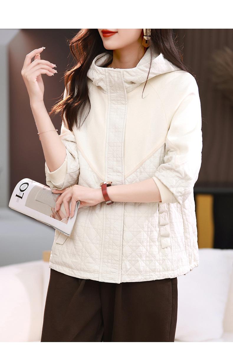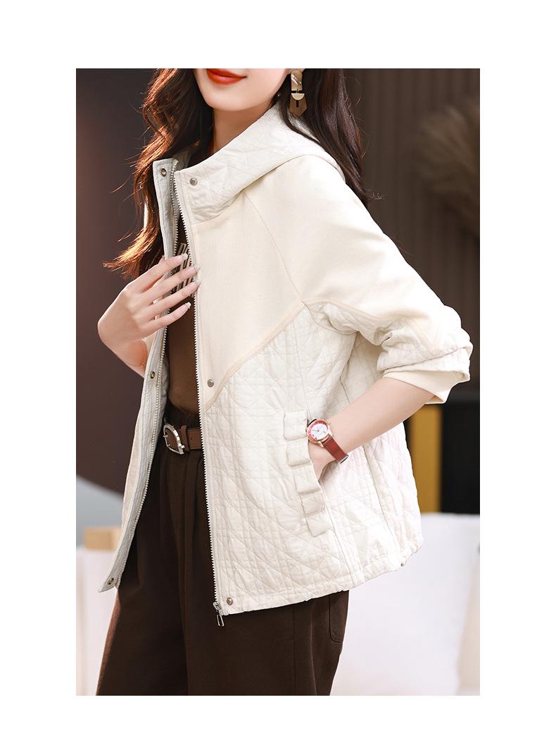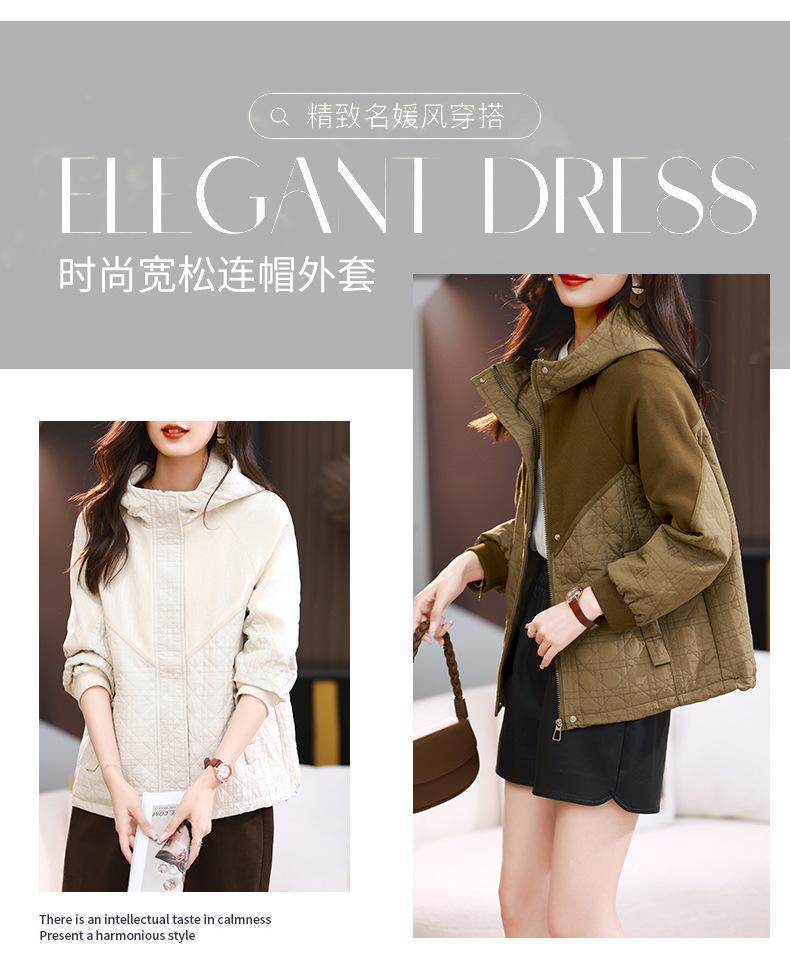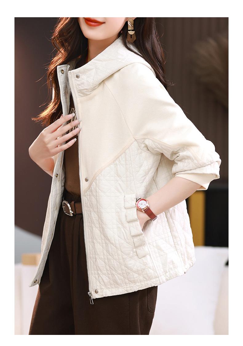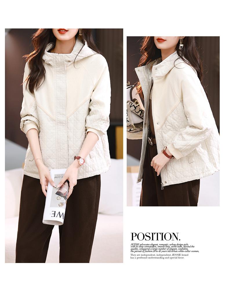 Abrigo grueso de primavera y otoño para mujer, moda informal 2024, con capucha, costuras de color en contraste, chaqueta corta, suelta y elegante.
