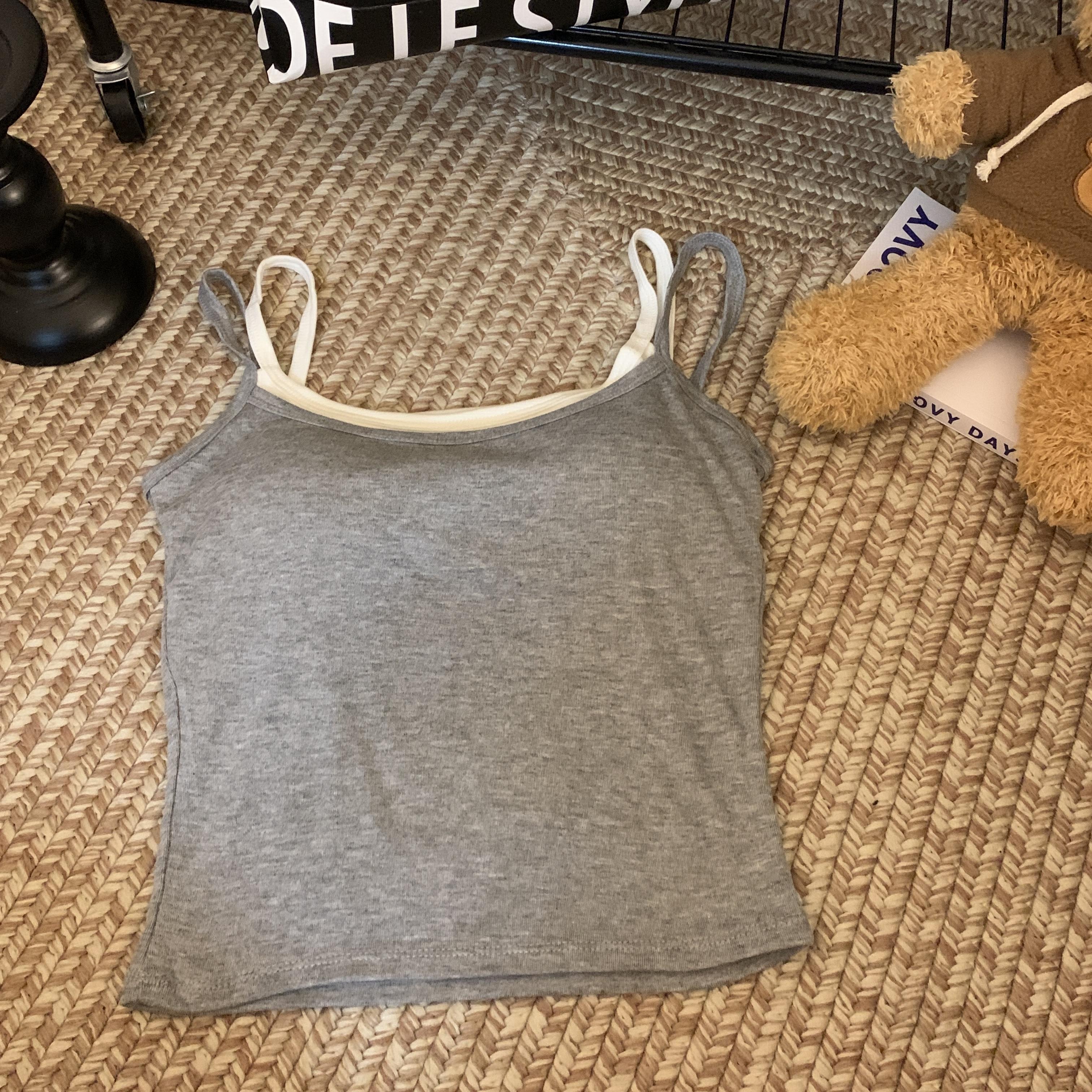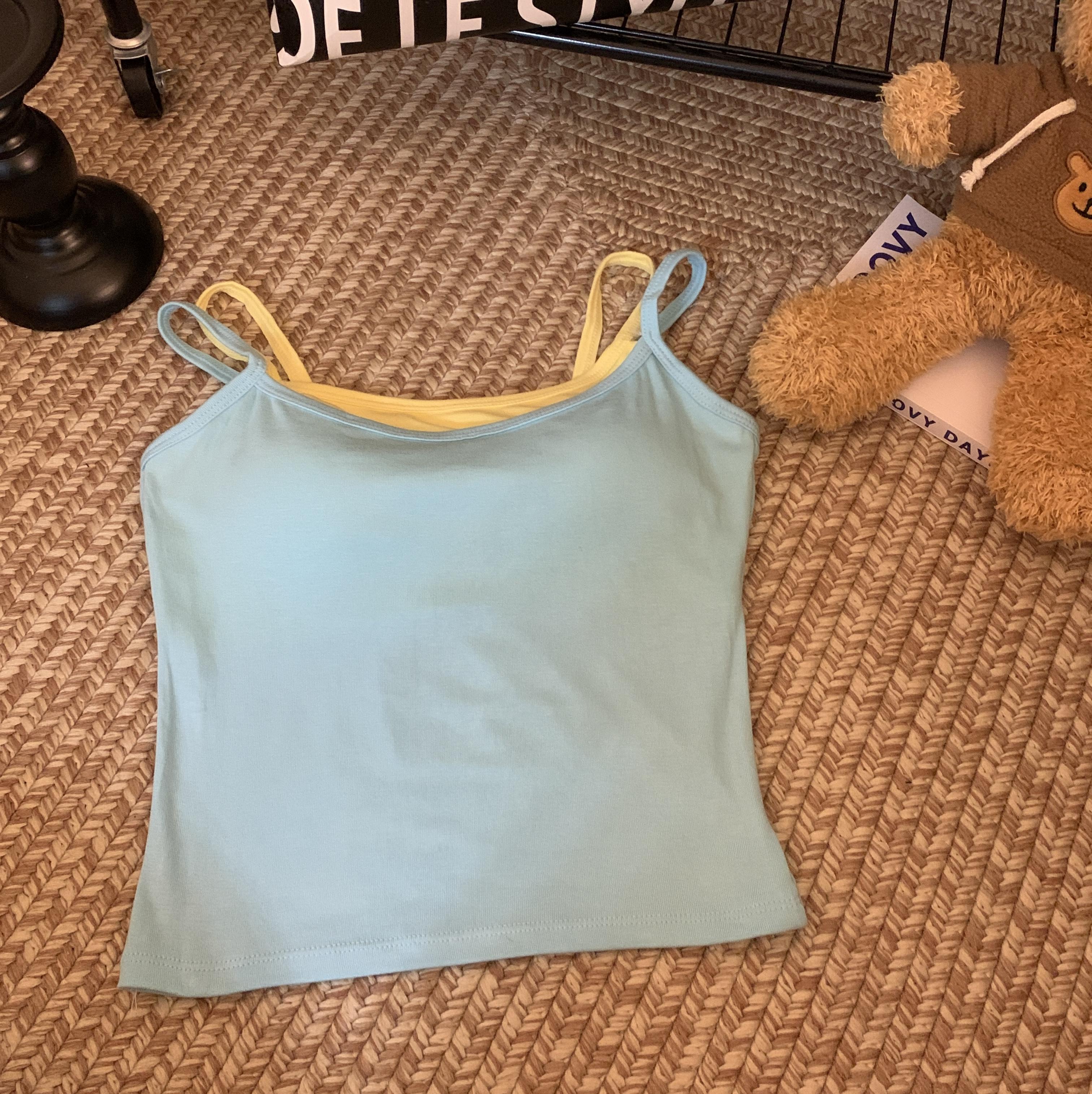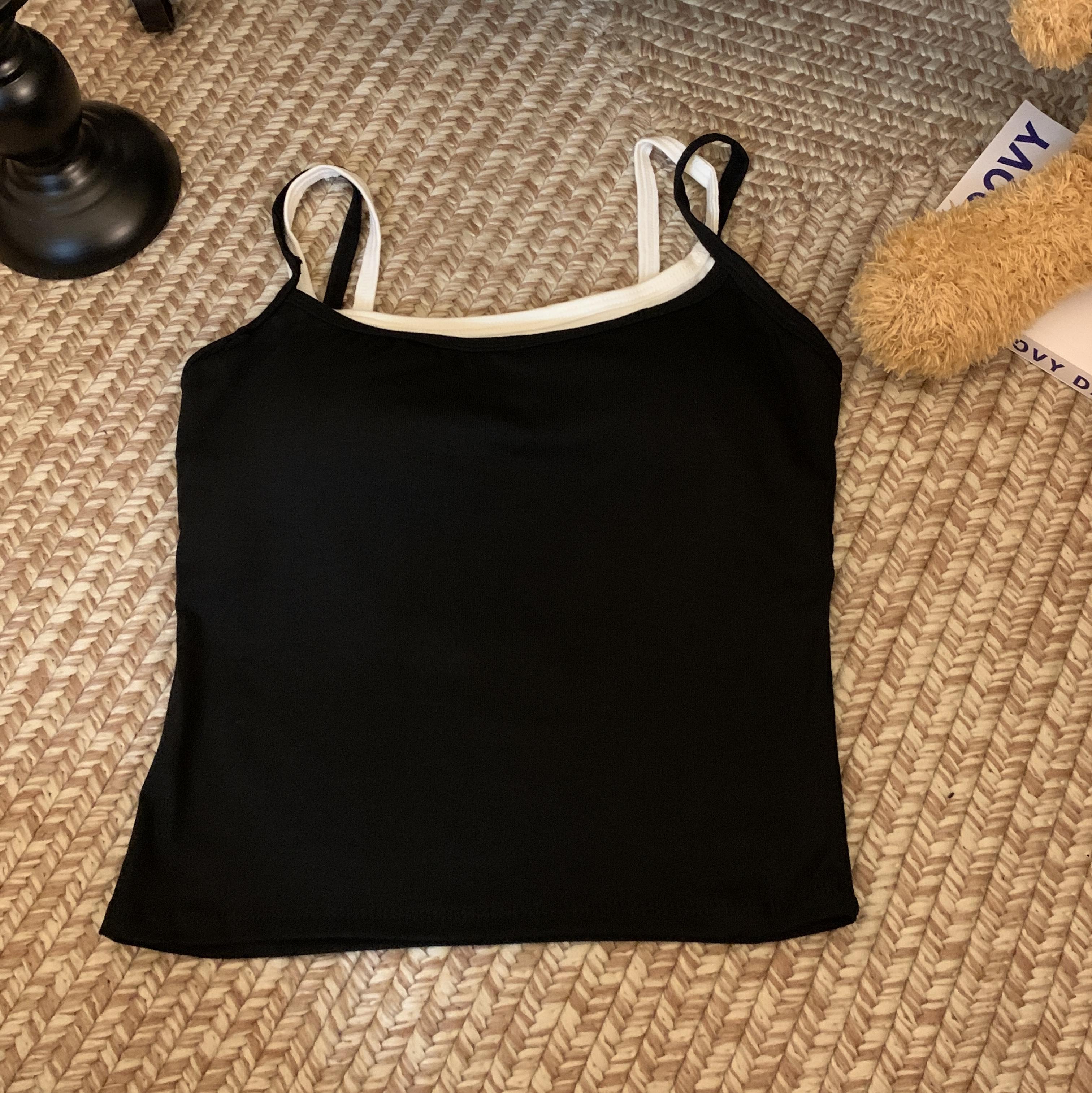 Chaleco de dos piezas con diseño falso de color liso que combina con todo, con almohadillas para el pecho, para uso interior y exterior, de moda, ajustado para mujer.