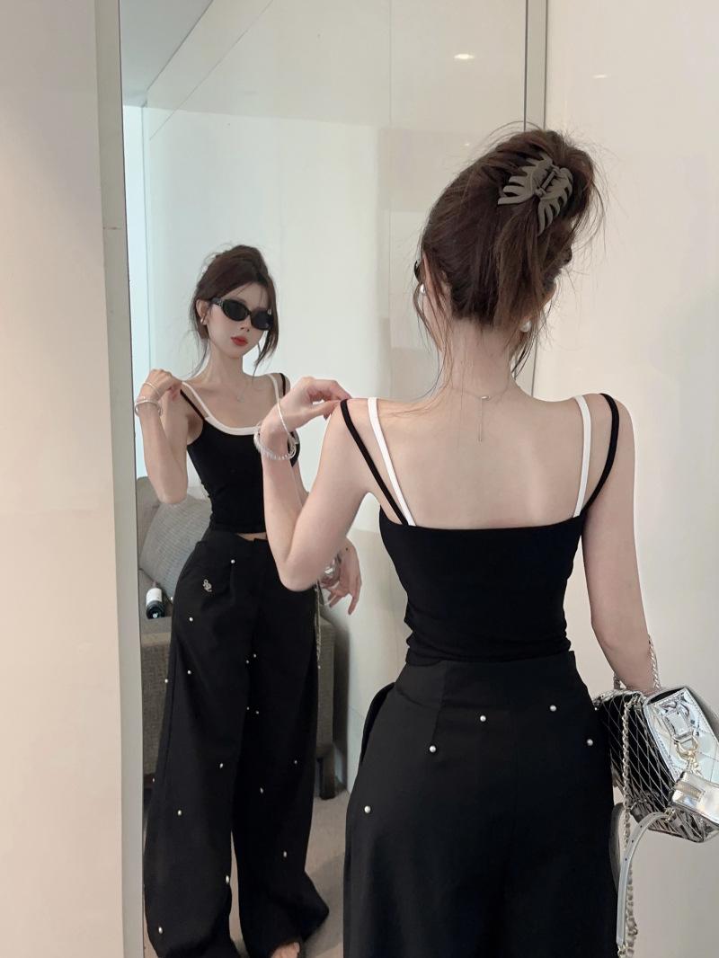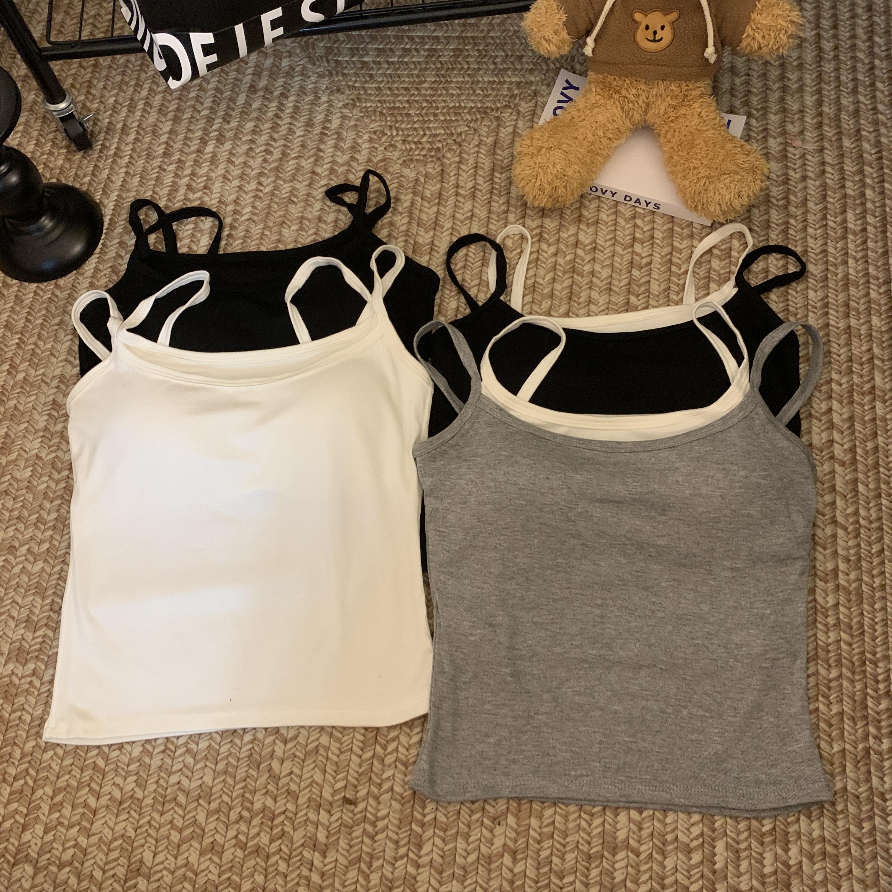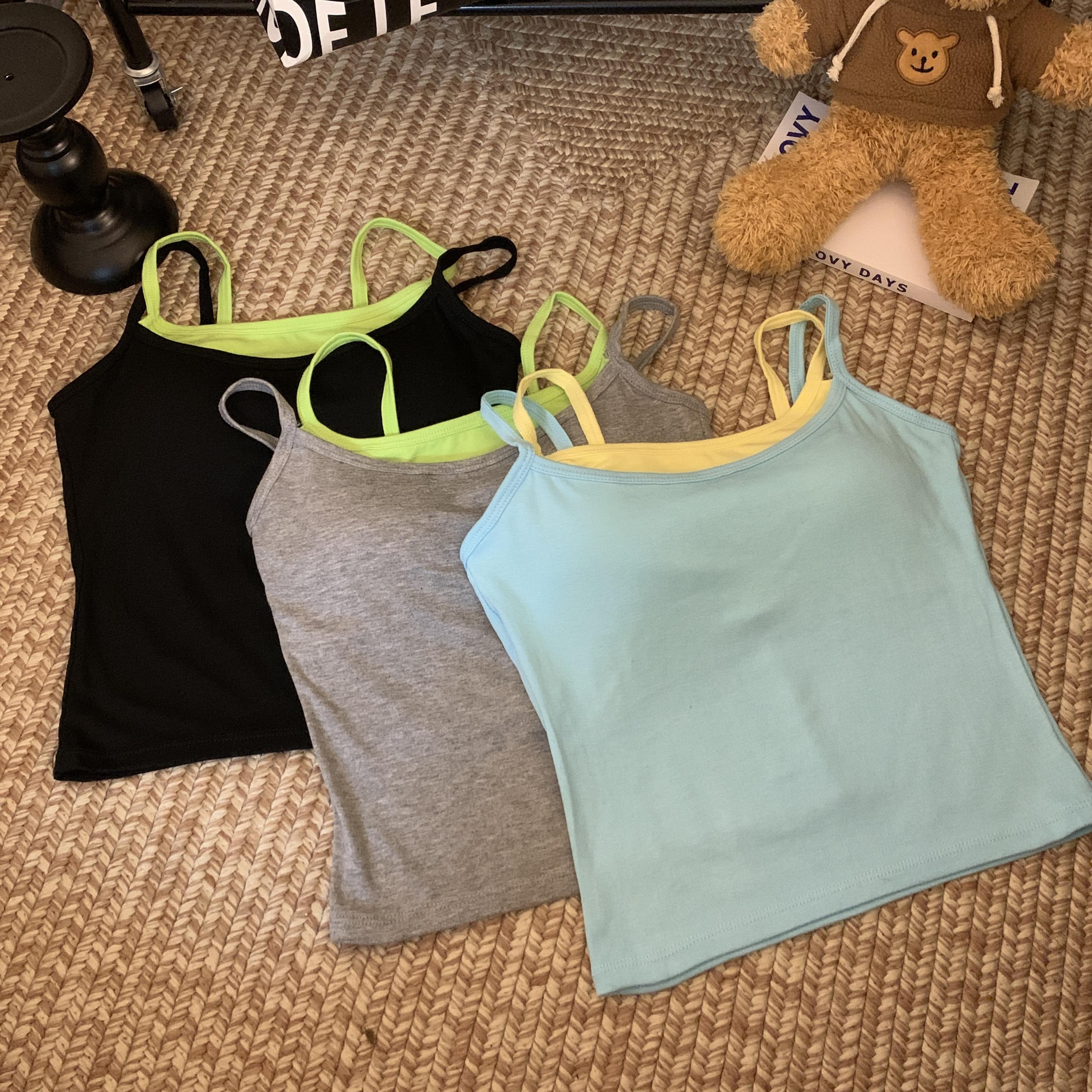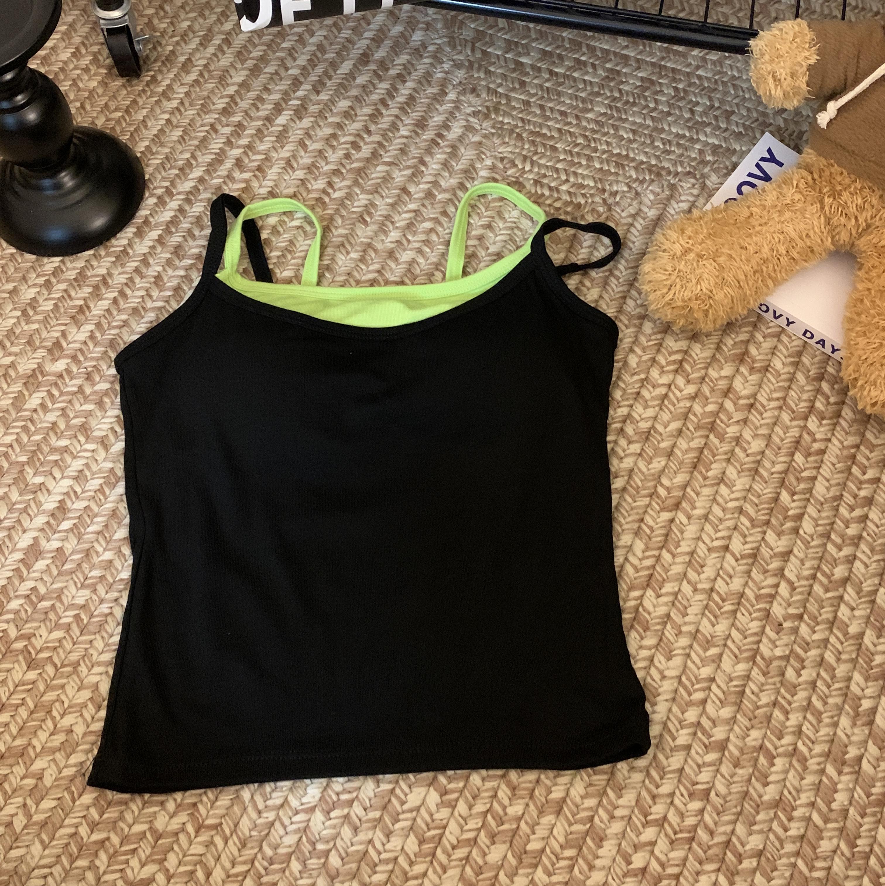 Chaleco de dos piezas con diseño falso de color liso que combina con todo, con almohadillas para el pecho, para uso interior y exterior, de moda, ajustado para mujer.
