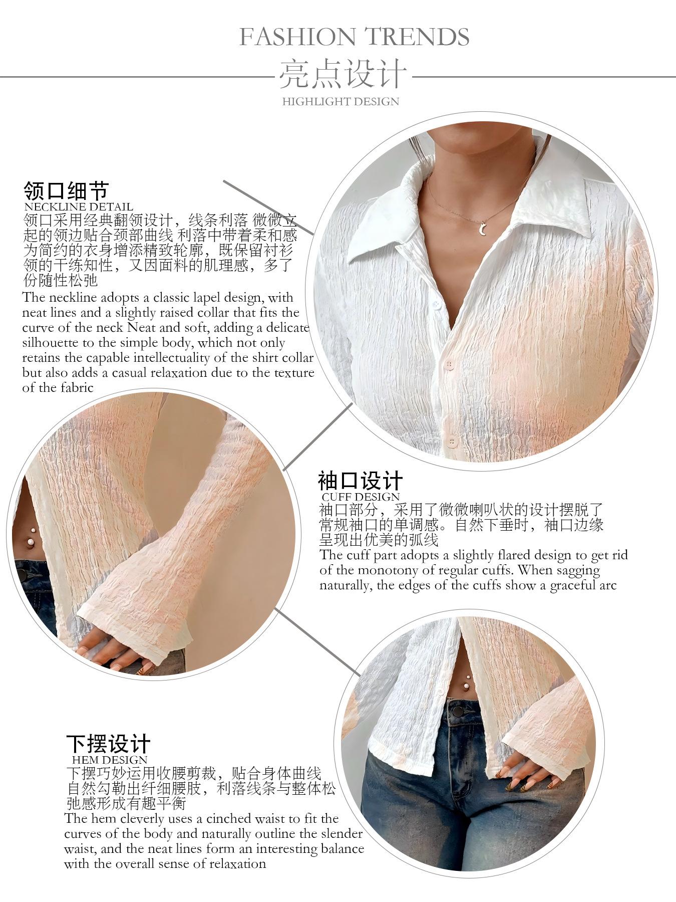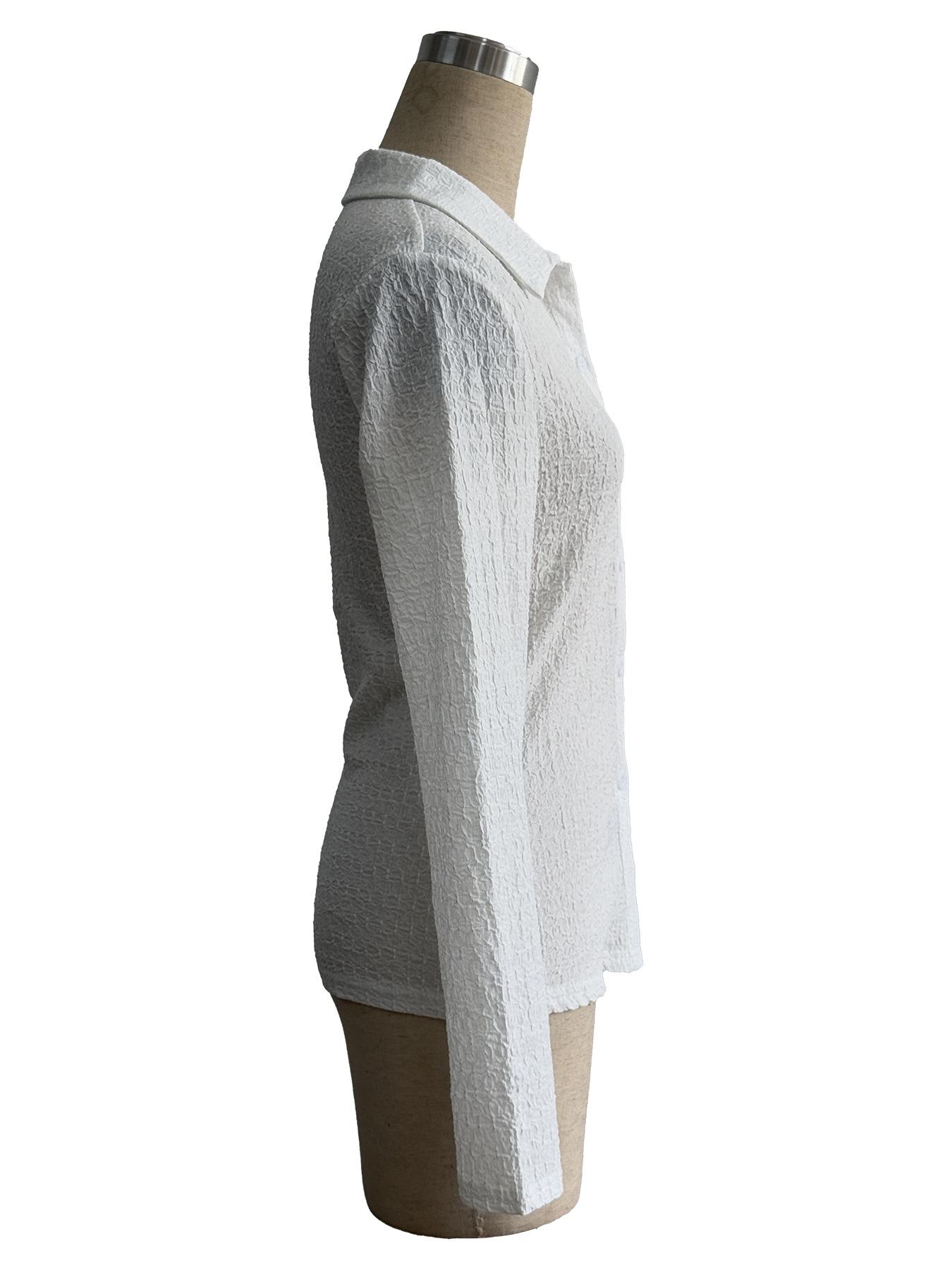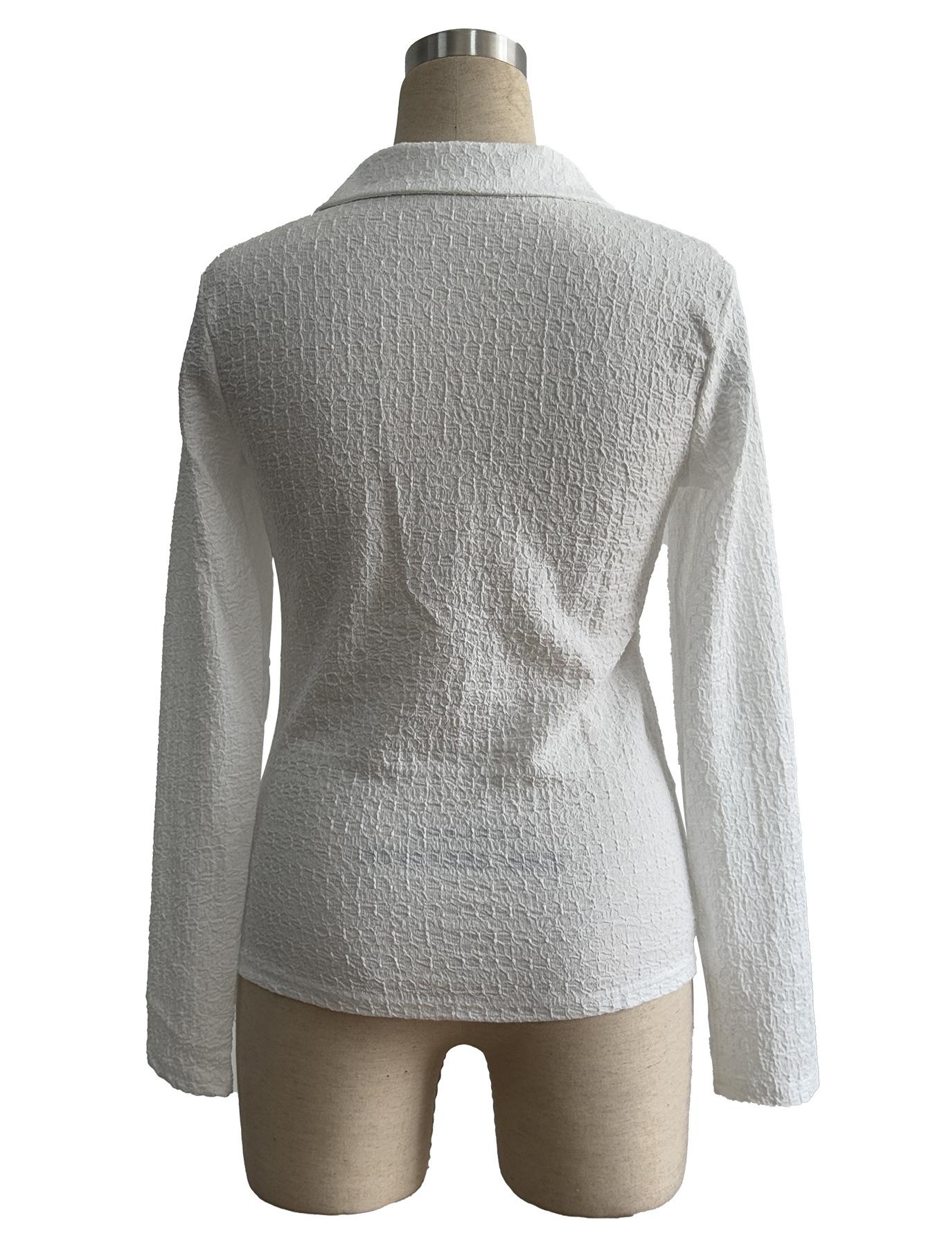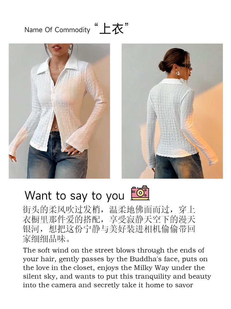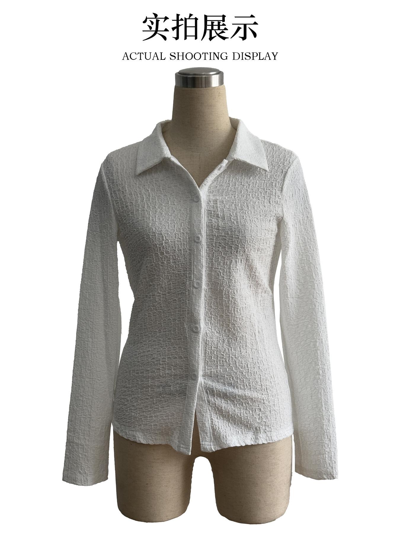 Compra Europa y Estados Unidos transfronterizo 2025 Amazon nueva camisa de moda elegante para damas de color sólido con textura y manga larga para mujer al por mayor en Joom.pro