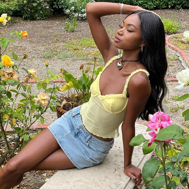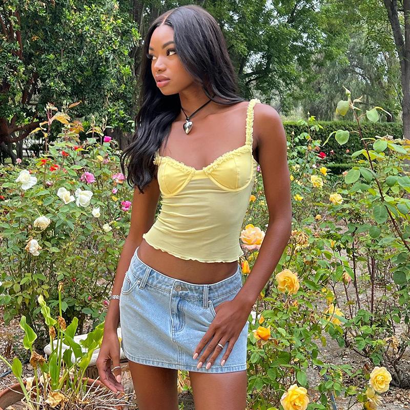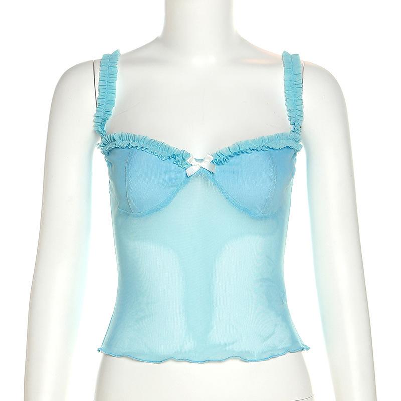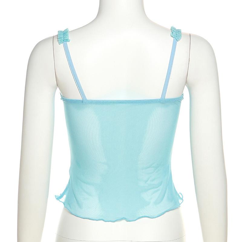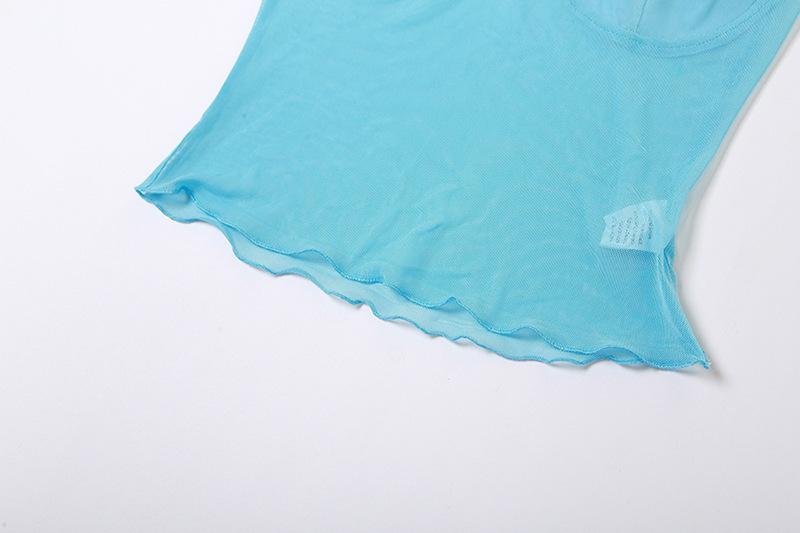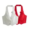 Moda de primavera 2023 para mujer, estilo europeo y americano, con un solo hombro, chaleco de gasa ajustado sin espalda