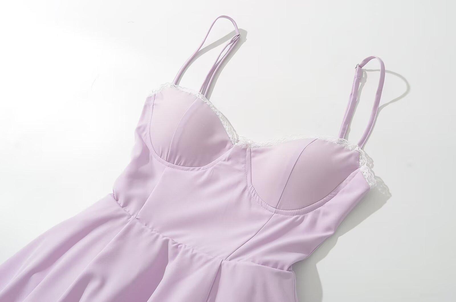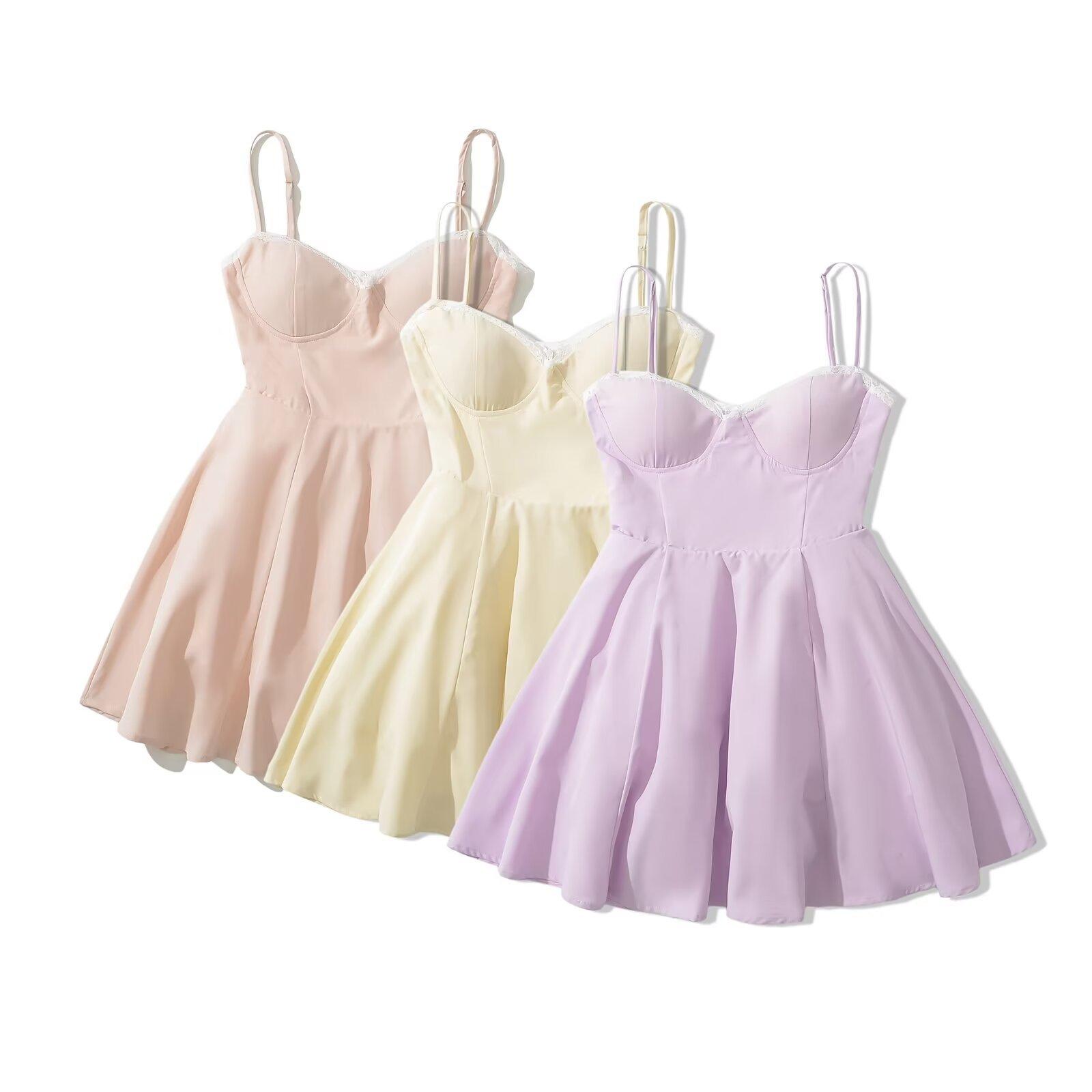 Comercio exterior al por mayor 2024 verano nuevo europeo y americano viento encaje pecho almohadilla malla mini vestido de tirantes H5066