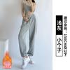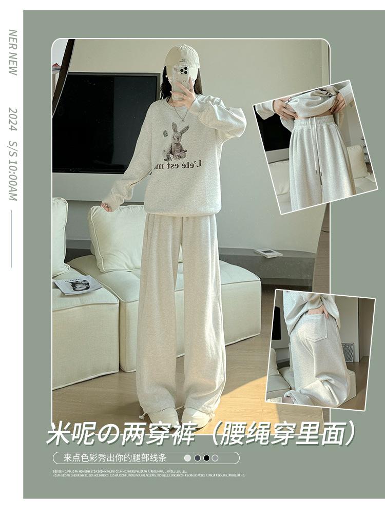 Pantalones deportivos americanos blancos y grises para mujer, primavera y otoño, nuevos pantalones casuales rectos de cintura alta, sueltos, adelgazantes, pantalones de pierna ancha pequeños.