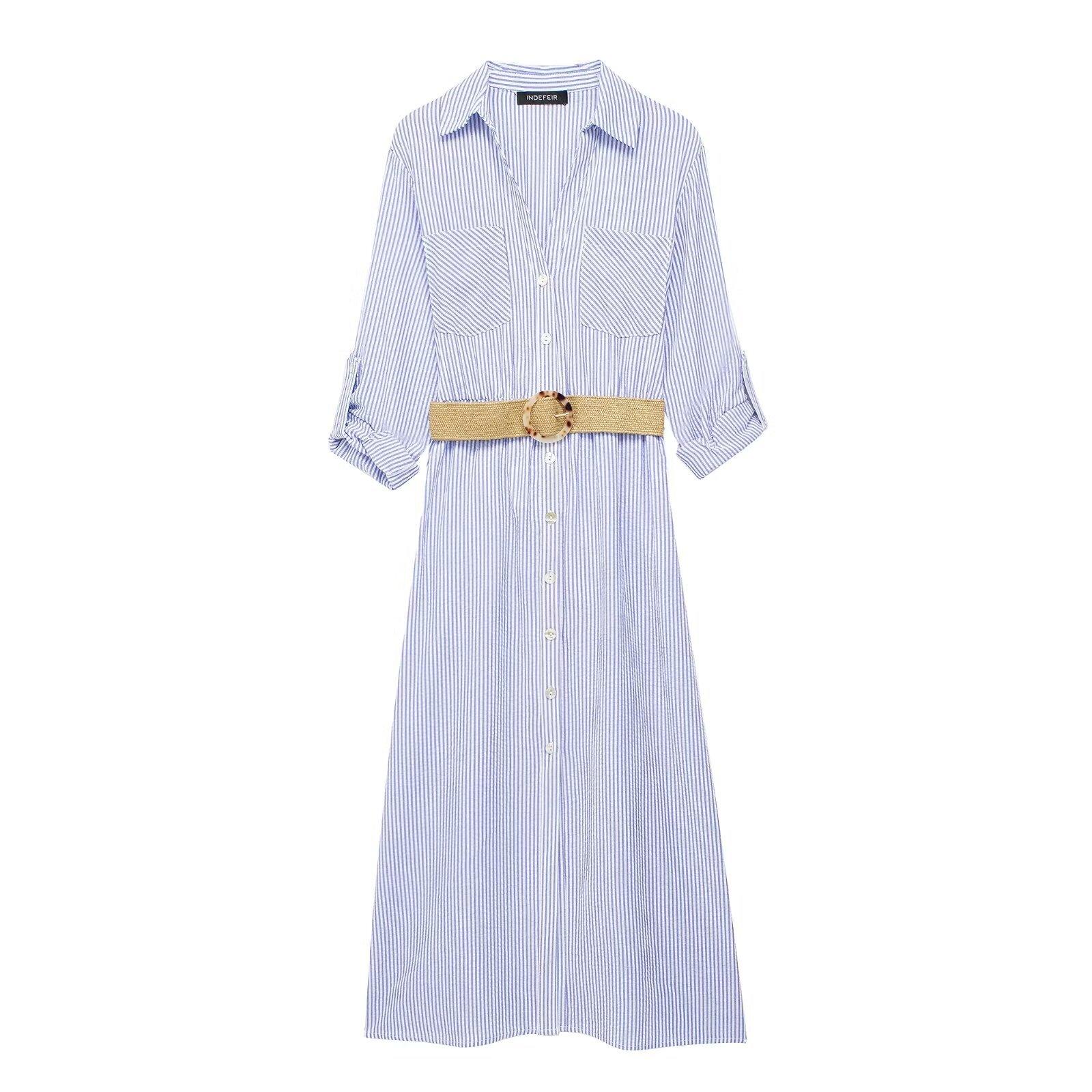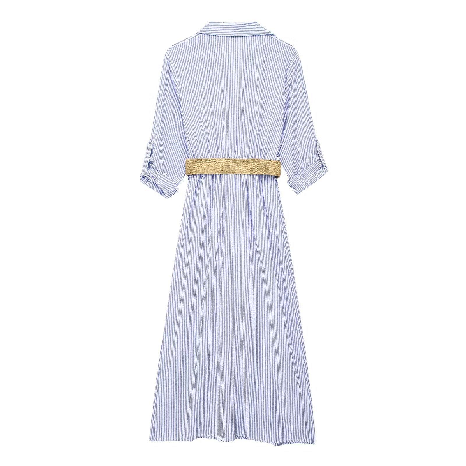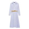 Comercio exterior transfronterizo de Amazon, venta al por mayor de ropa de mujer europea y americana, primavera 2024, nuevo vestido estilo camisa a rayas con cinturón