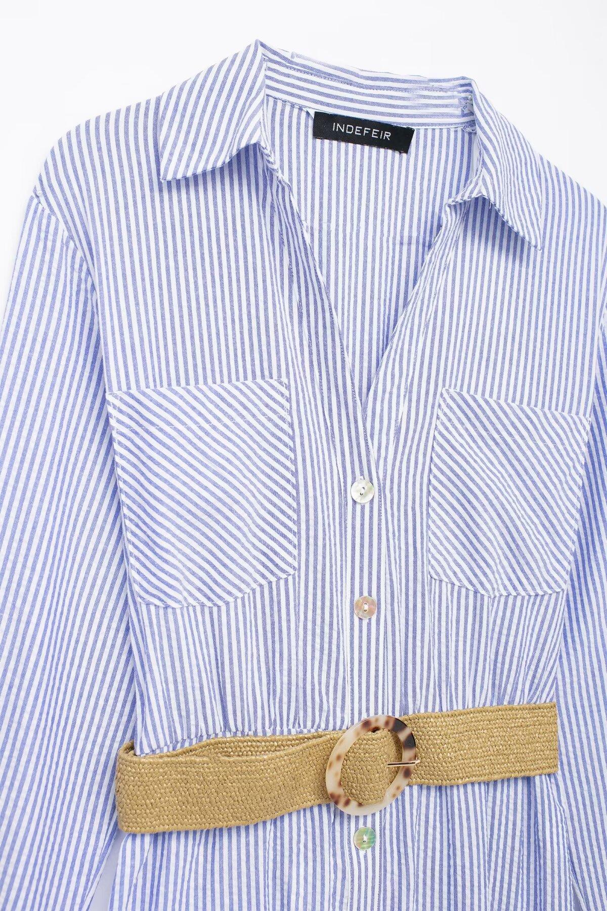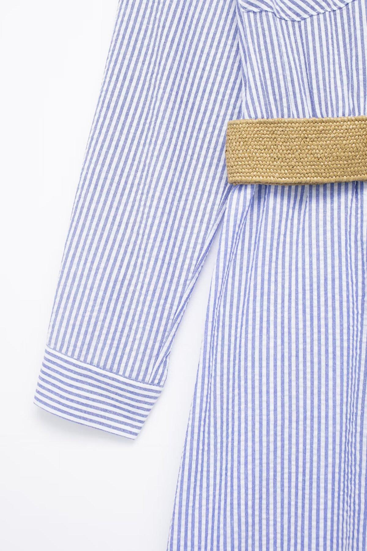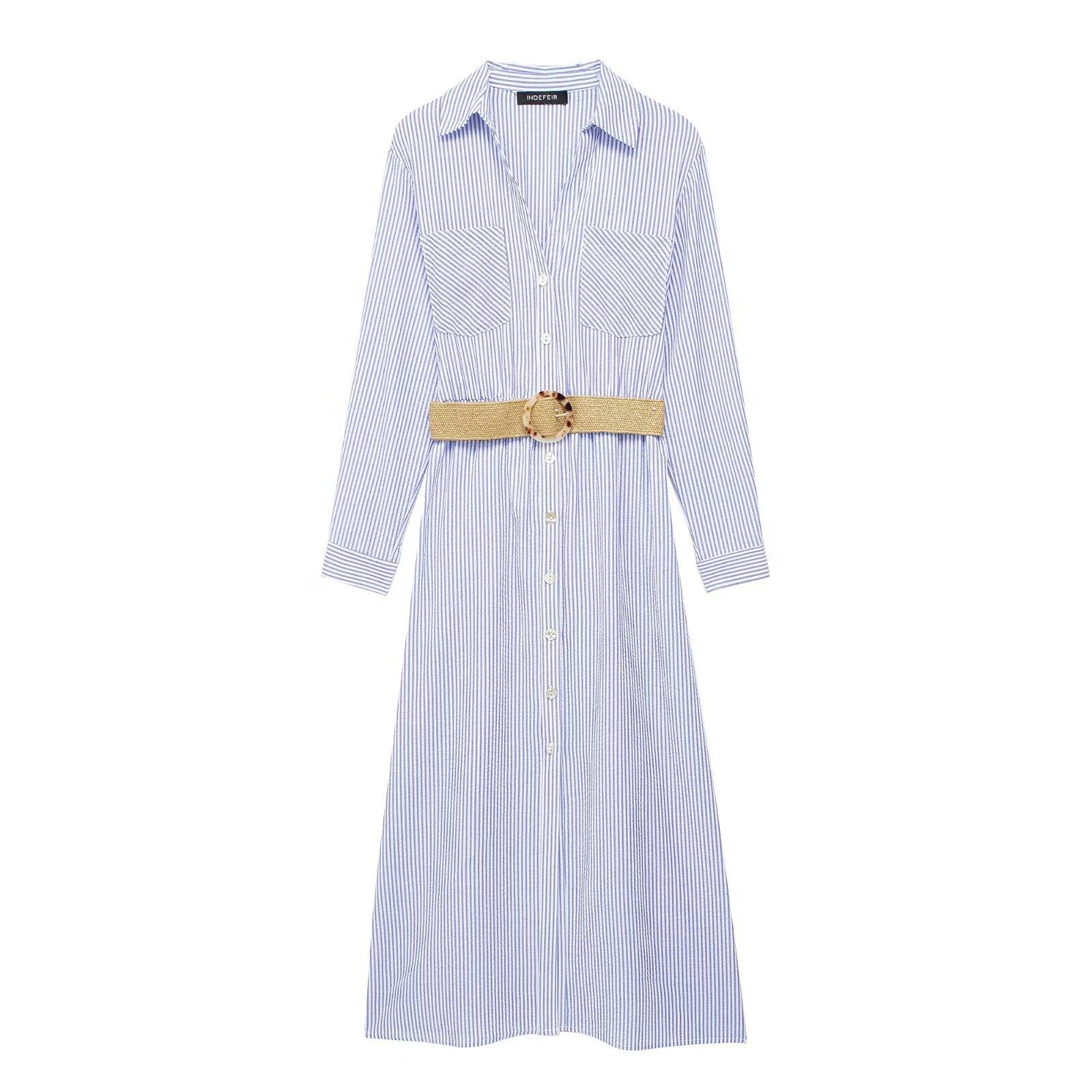 Compra Comercio exterior transfronterizo de Amazon, venta al por mayor de ropa de mujer europea y americana, primavera 2024, nuevo vestido estilo camisa a rayas con cinturón al por mayor en Joom.pro