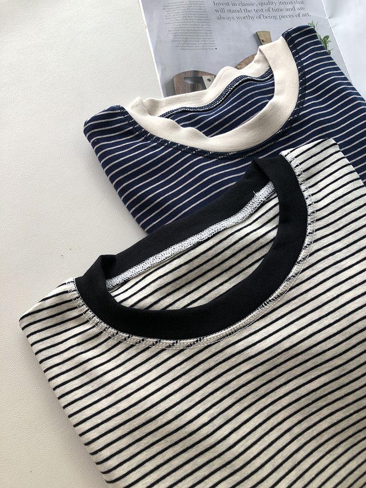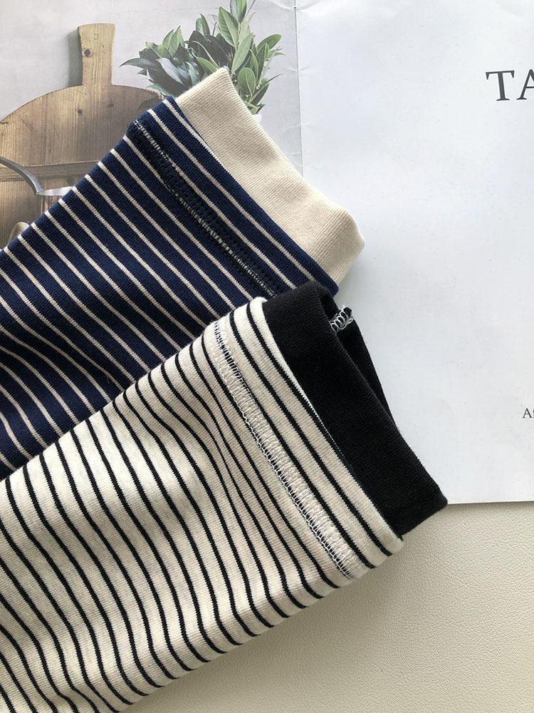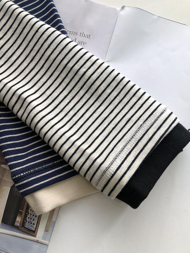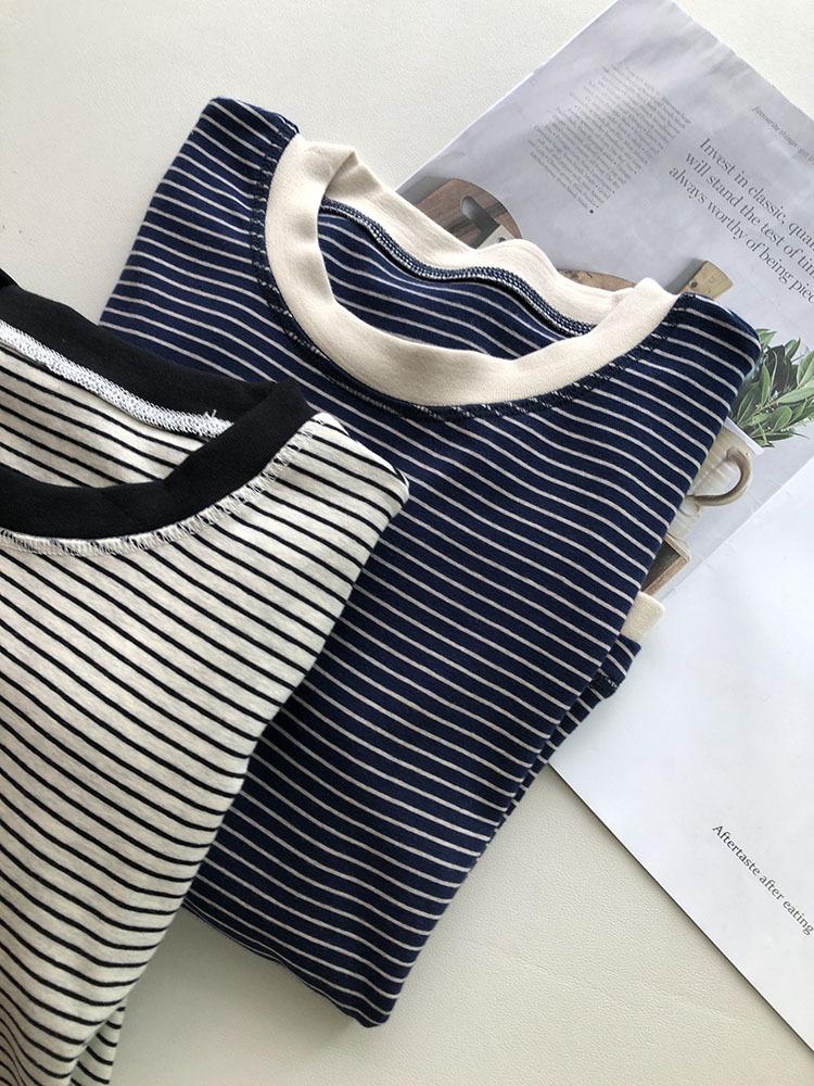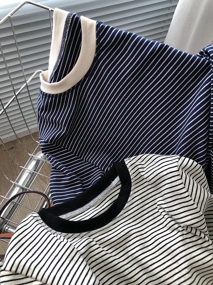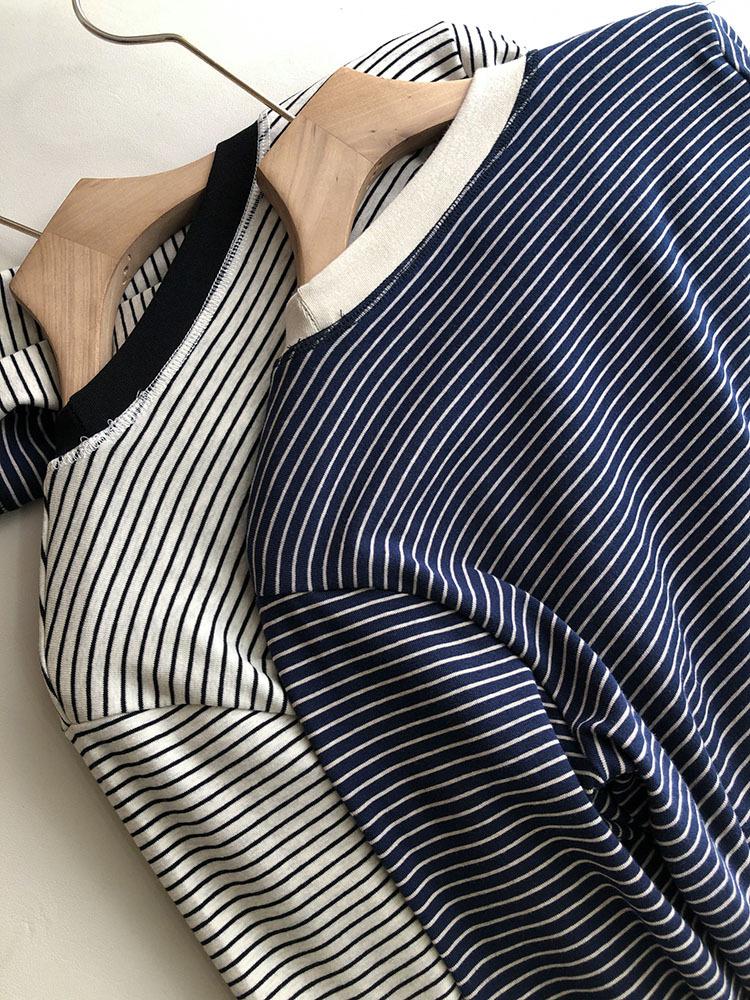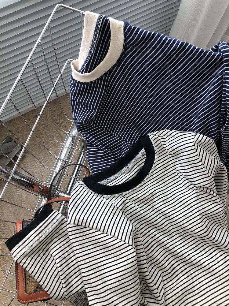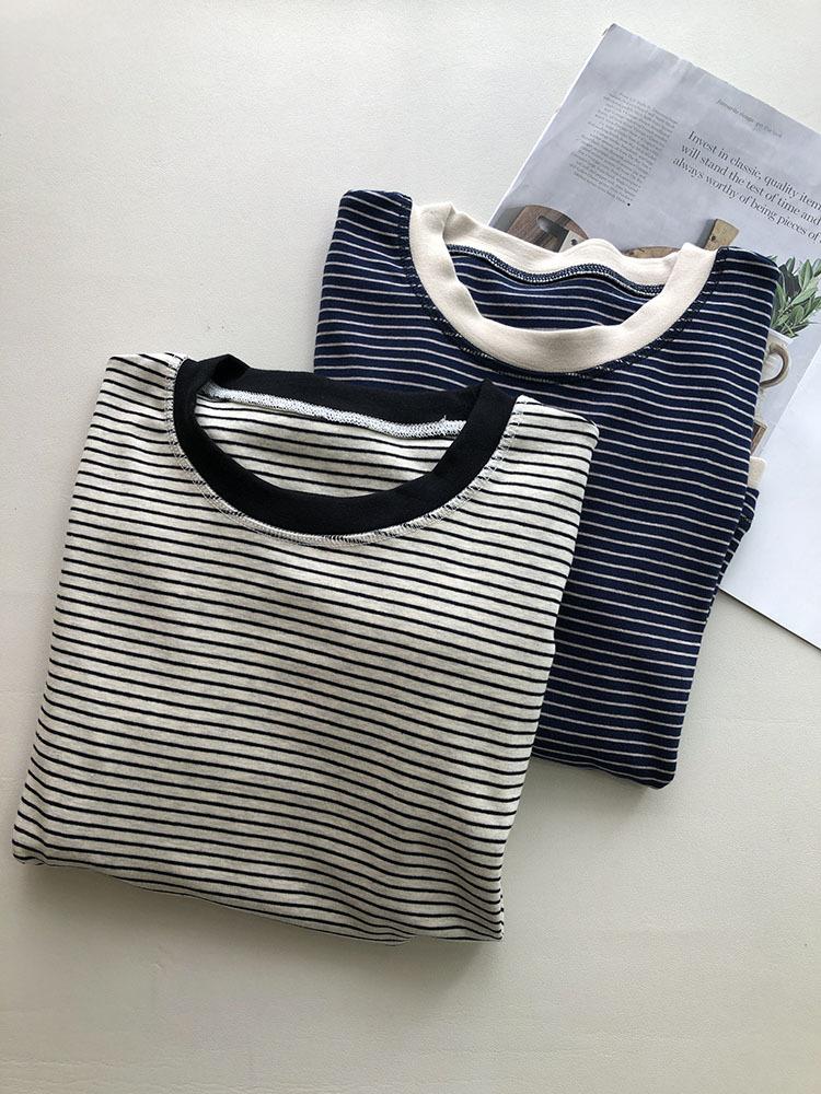 Camiseta de manga larga de algodón con contraste de rayas vintage de talla grande para mujer, otoño e invierno, nueva camisa adelgazante de corte entallado para chica gordita