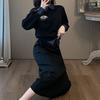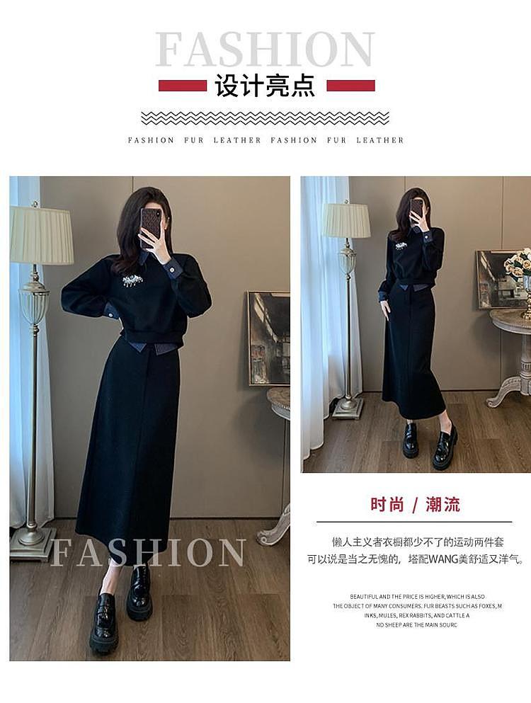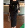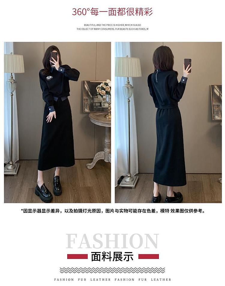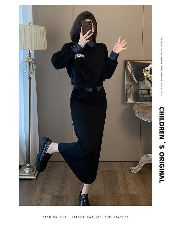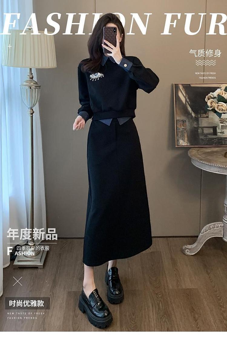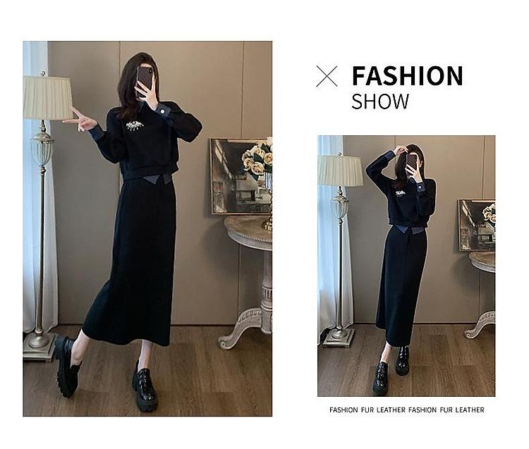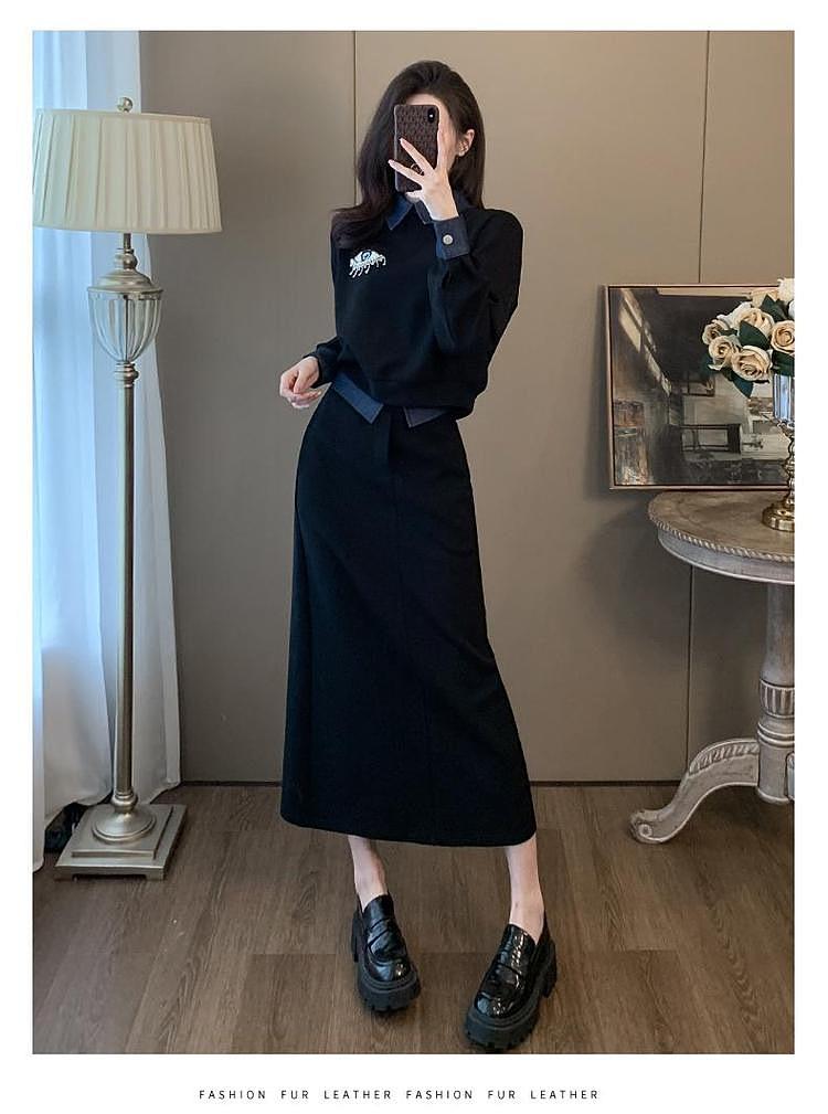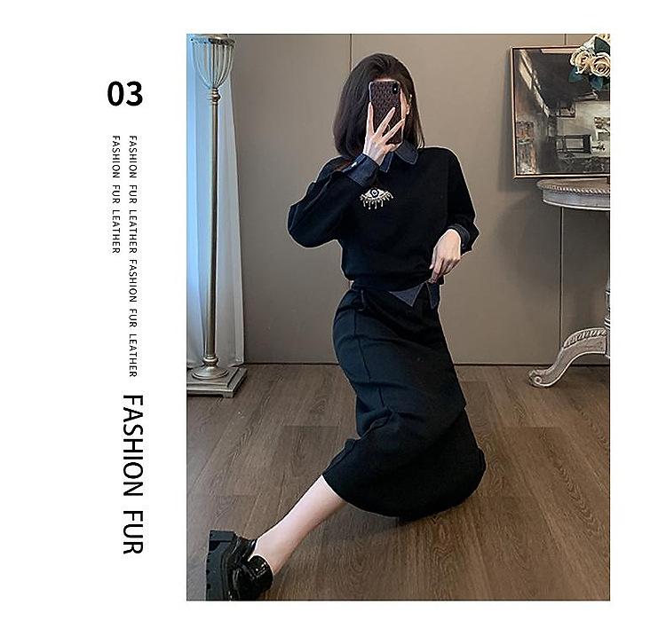 Falda de Traje de Moda Sexy Negra para Mujer Otoño 2024 Nuevo Estilo Look Adelgazante Sudadera Falda Elegante Conjunto de Dos Piezas