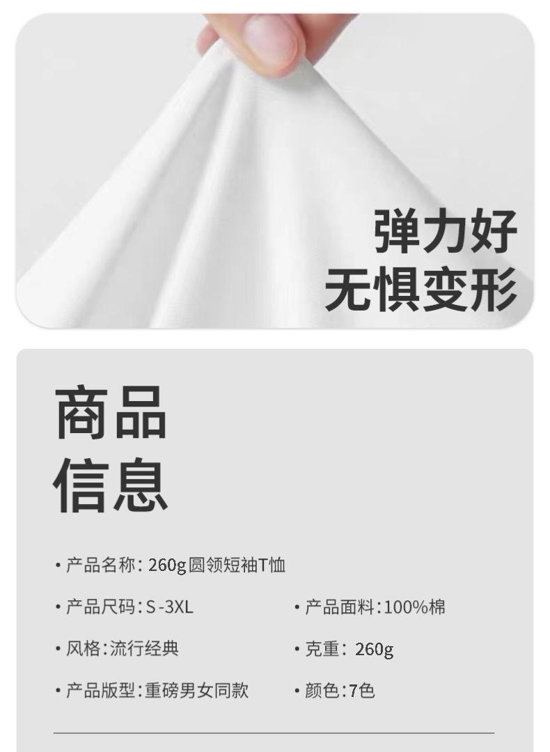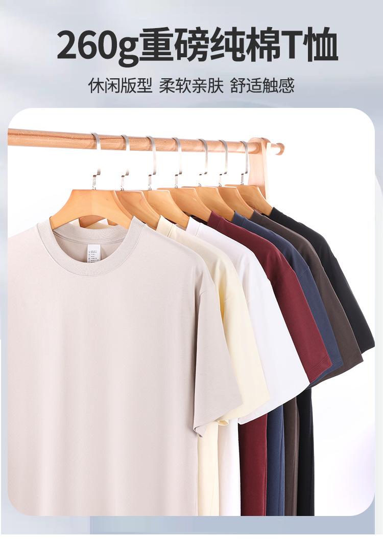 Camiseta de Algodón Pesado de 260g de Manga Corta Algodón Abierta Manga Media Manga Tejida Verano Camiseta Holgada Camiseta Blanca