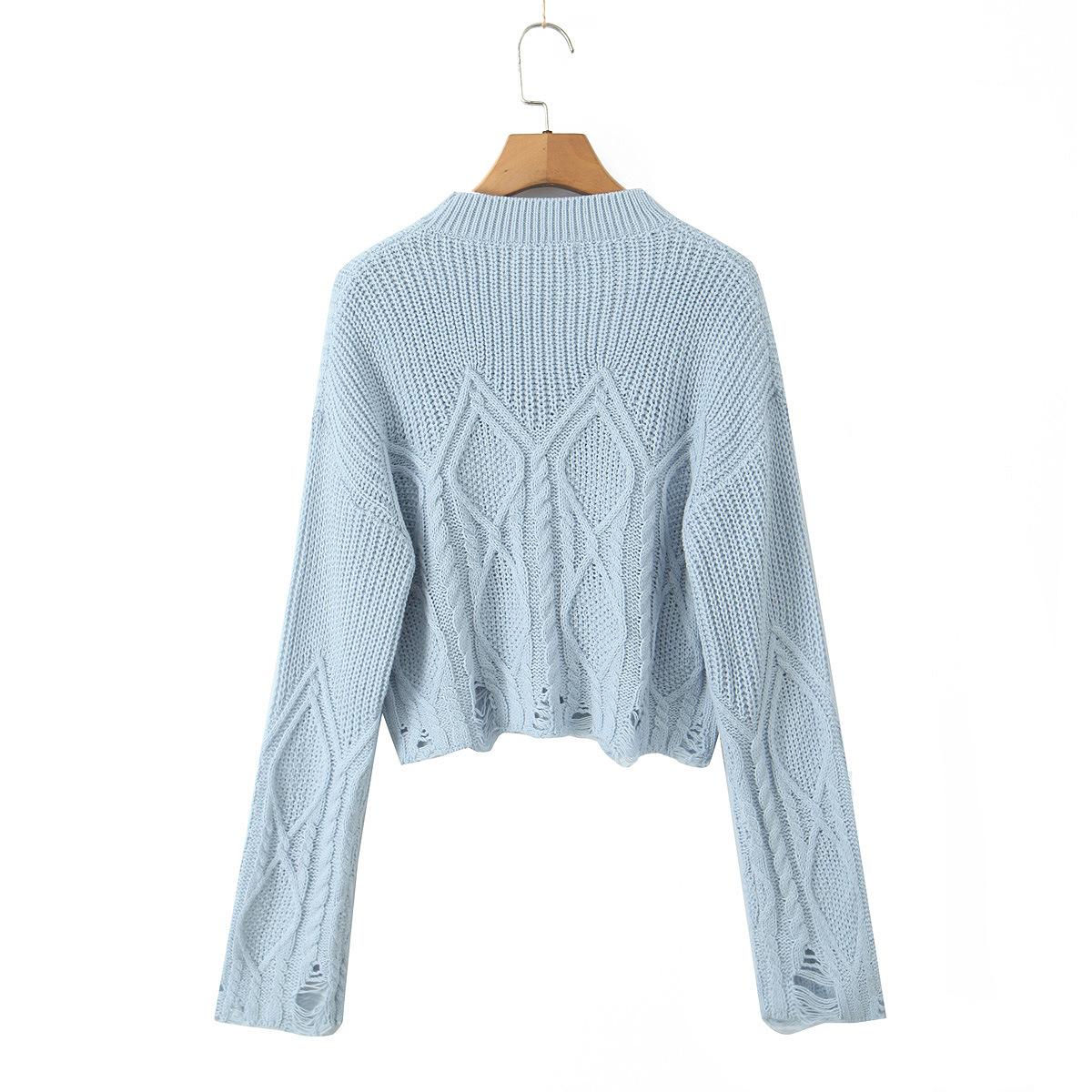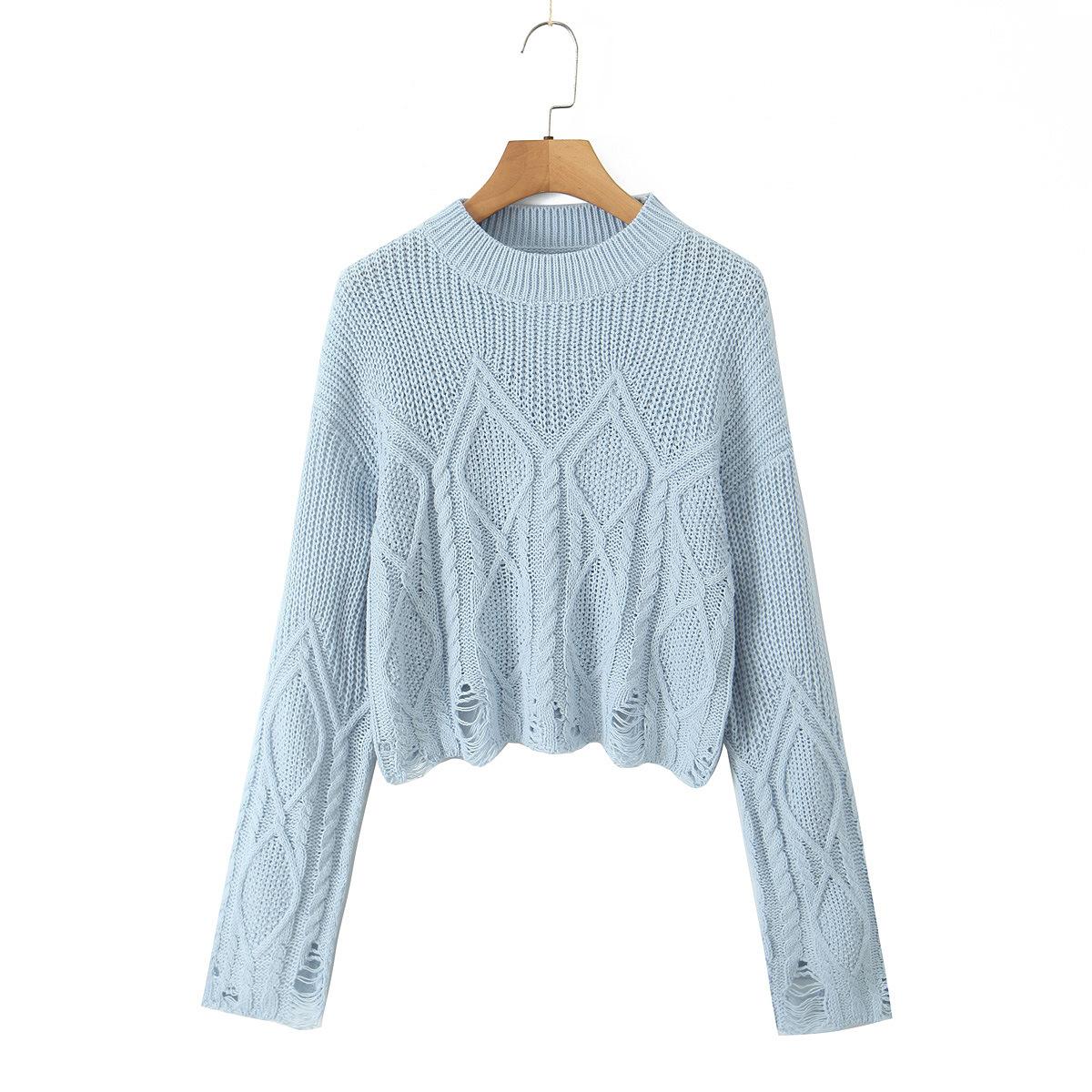 1345-Otoño e invierno 2024 nuevo suéter sexy de manga larga para mujer, suéter ajustado de cuello redondo francés para chica sexy