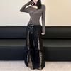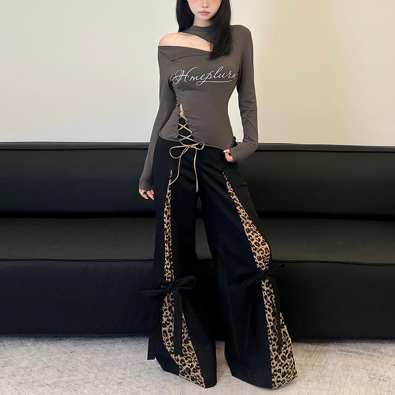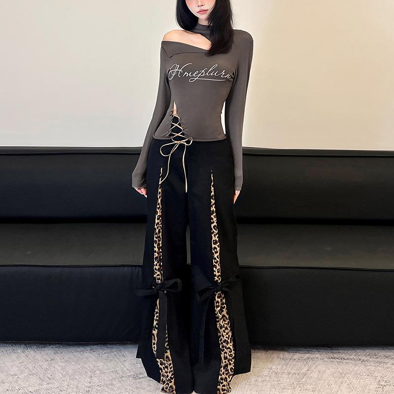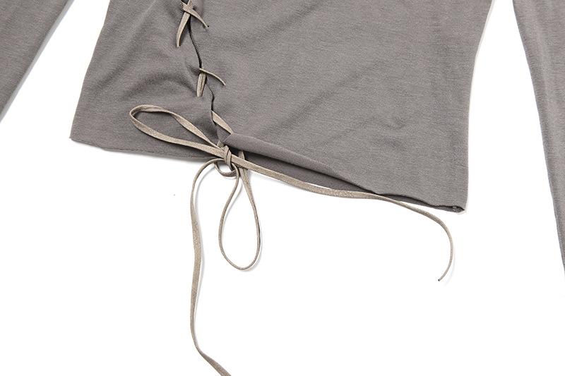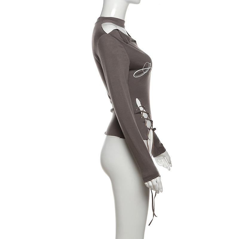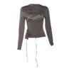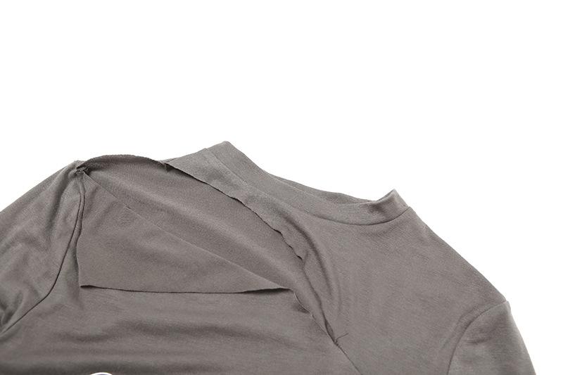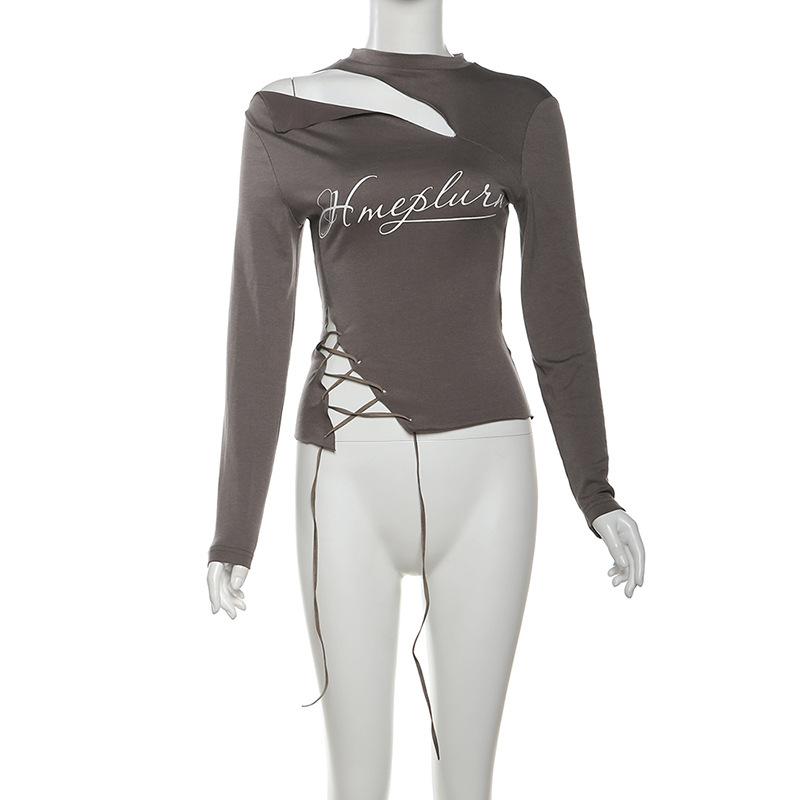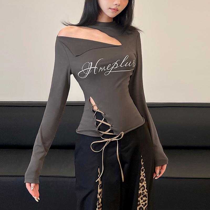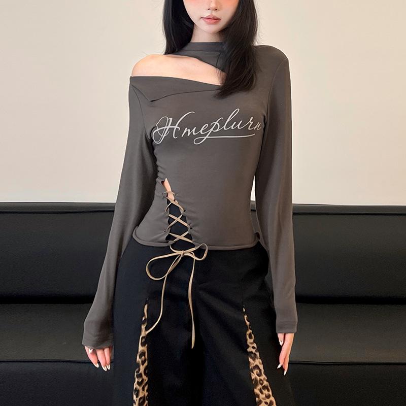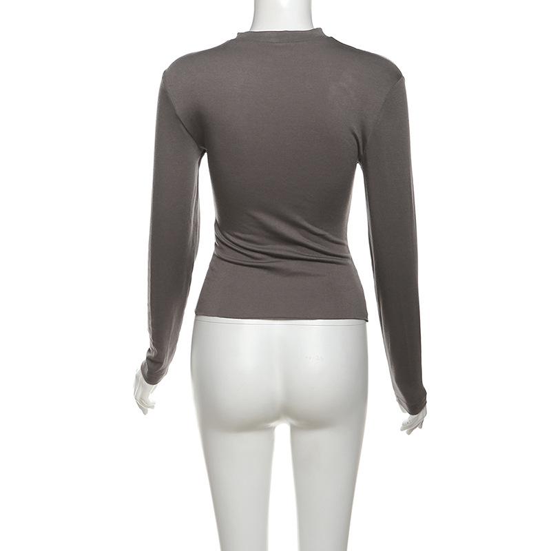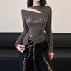 2024 Estilo Europeo y Americano Transfronterizo Otoño Nuevo para Mujer Color Sólido Ajustado Moda Urbana Cuello Oblicuo Manga Larga Top Estampado para Mujer