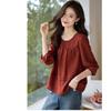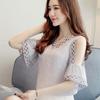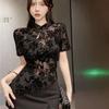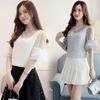 Camiseta de gasa de un solo hombro para mujer, blusa de encaje de verano, versátil, de manga corta, primavera 2024