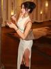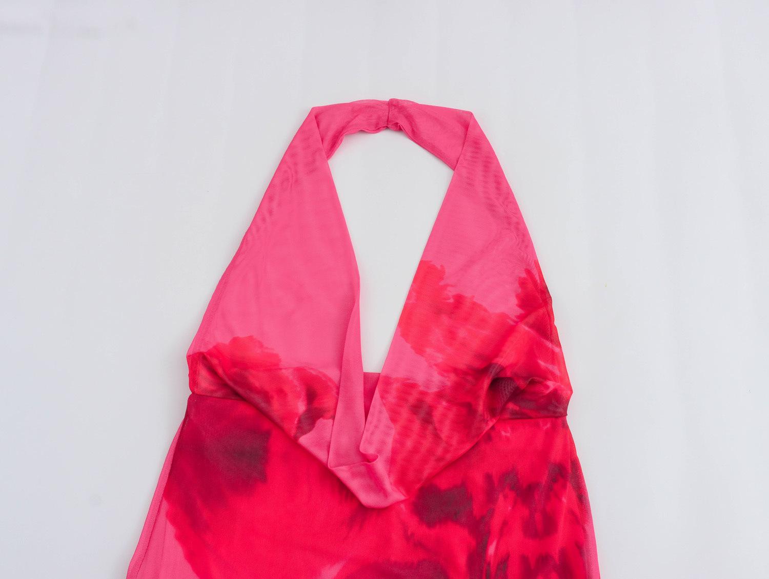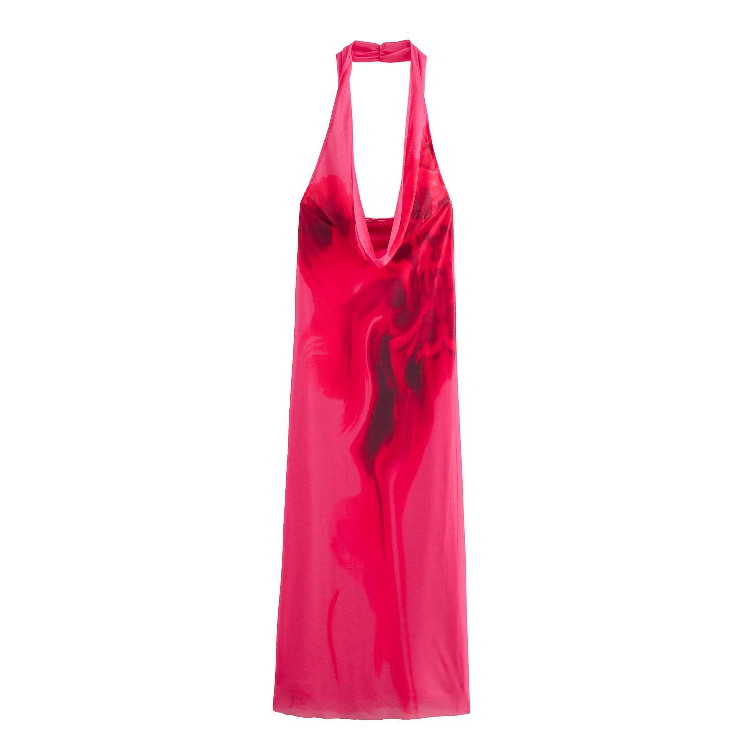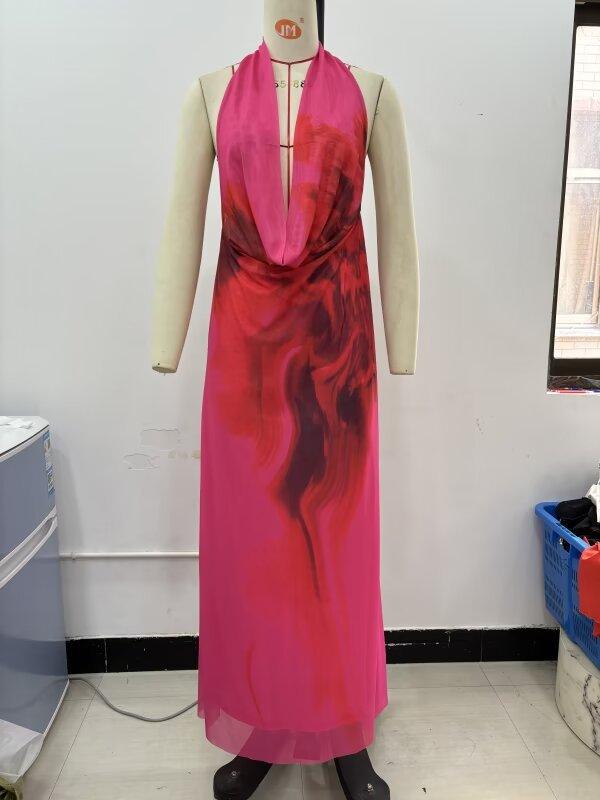 Vestido de tul drapeado sexy con cuello entallado para mujer europea y americana, novedad de verano 2024, comercio exterior transfronterizo de Amazon