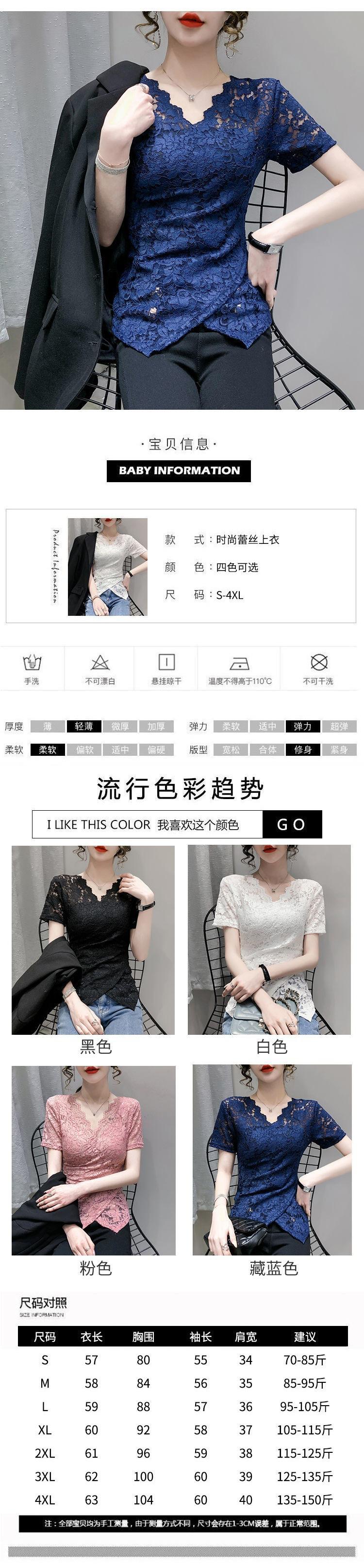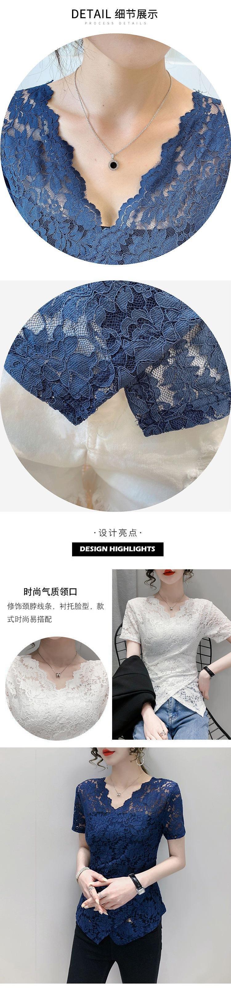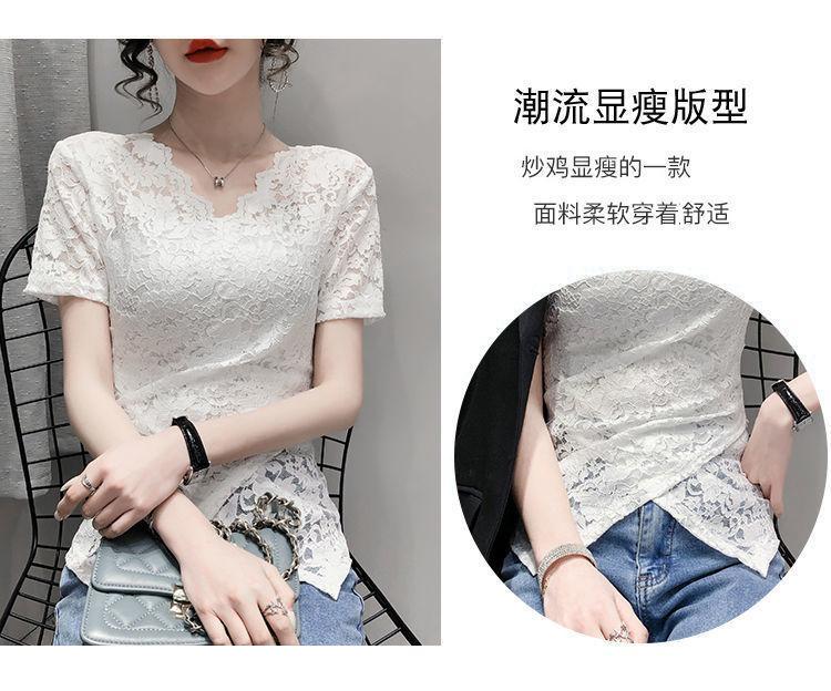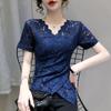 Compra Nuevo estilo de verano 2024, top femenino de encaje asimétrico con abertura y escote en V, versátil, de manga corta y moderno al por mayor en Joom.pro