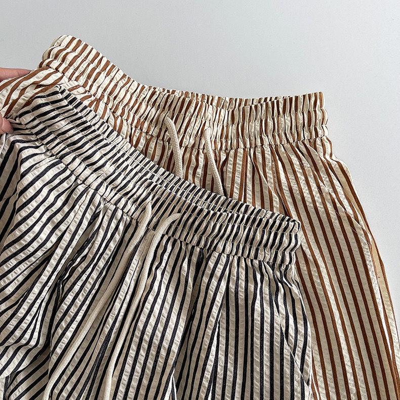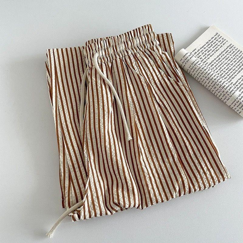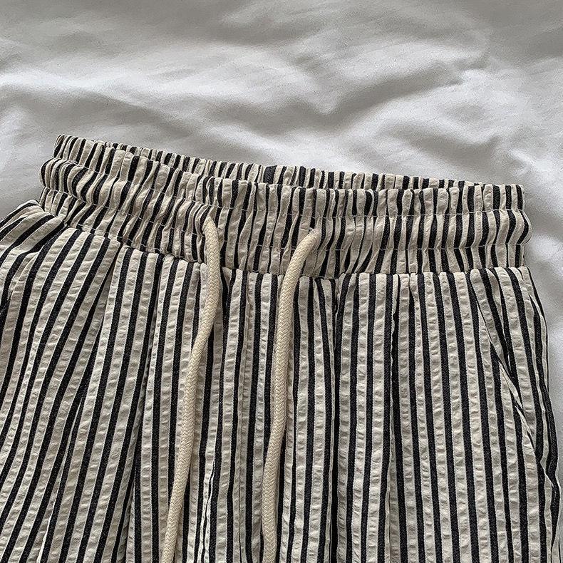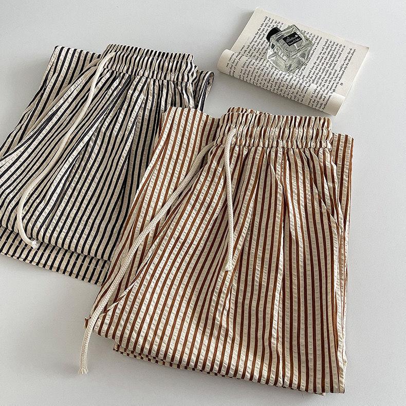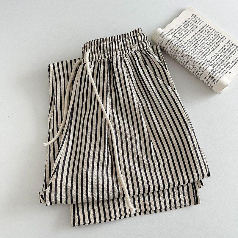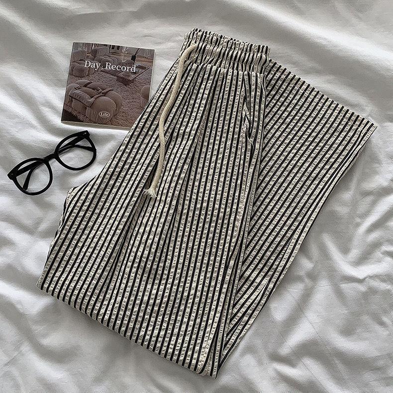 Pantalones anchos de rayas americanas para mujer, de verano, finos, de cintura alta, holgados, adelgazantes, rectos, para caminar con tranquilidad, envío gratis