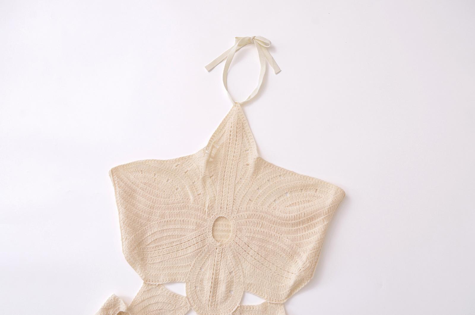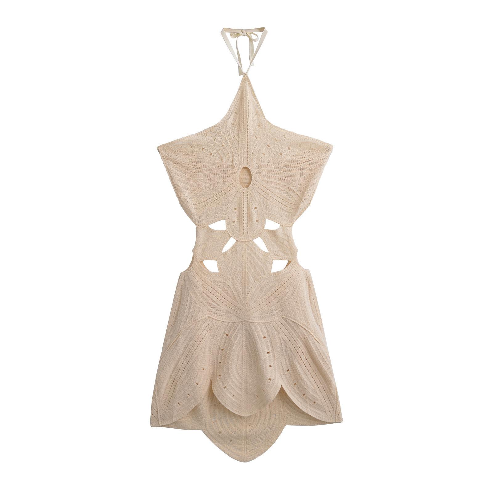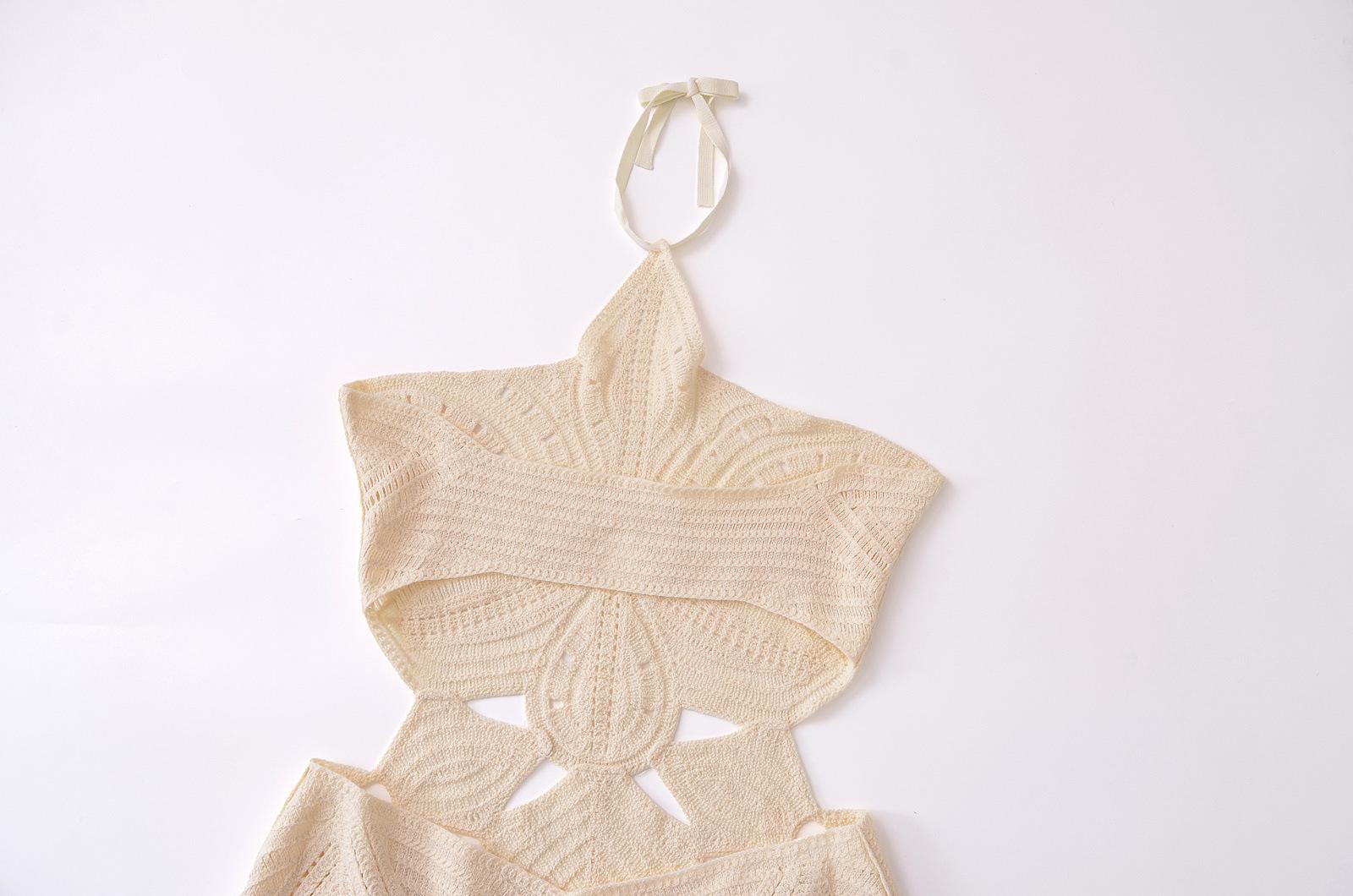 Vestido de fiesta hueco con flores tejidas y cuello colgante de nueva moda 2024 para mujer de Europa y Estados Unidos, comercio exterior transfronterizo de Amazon