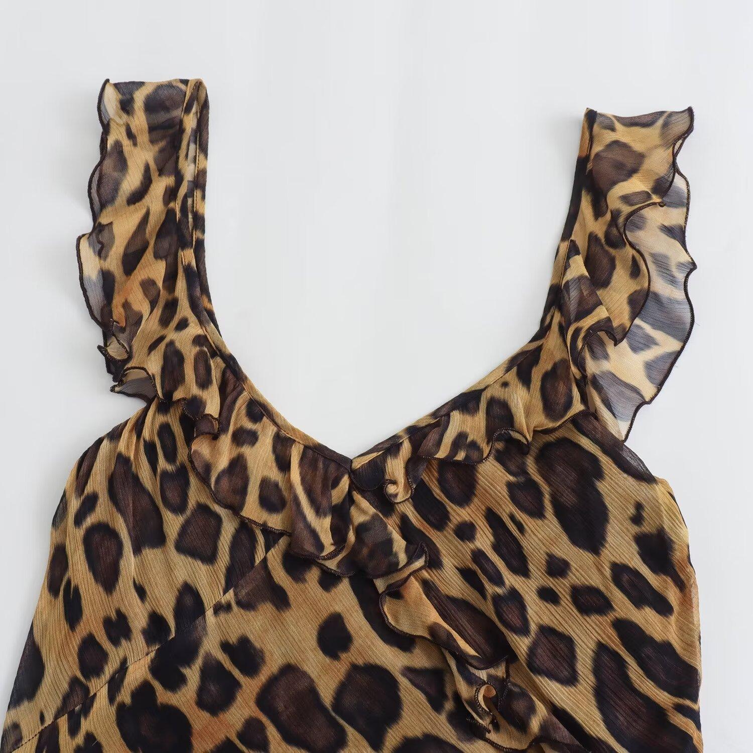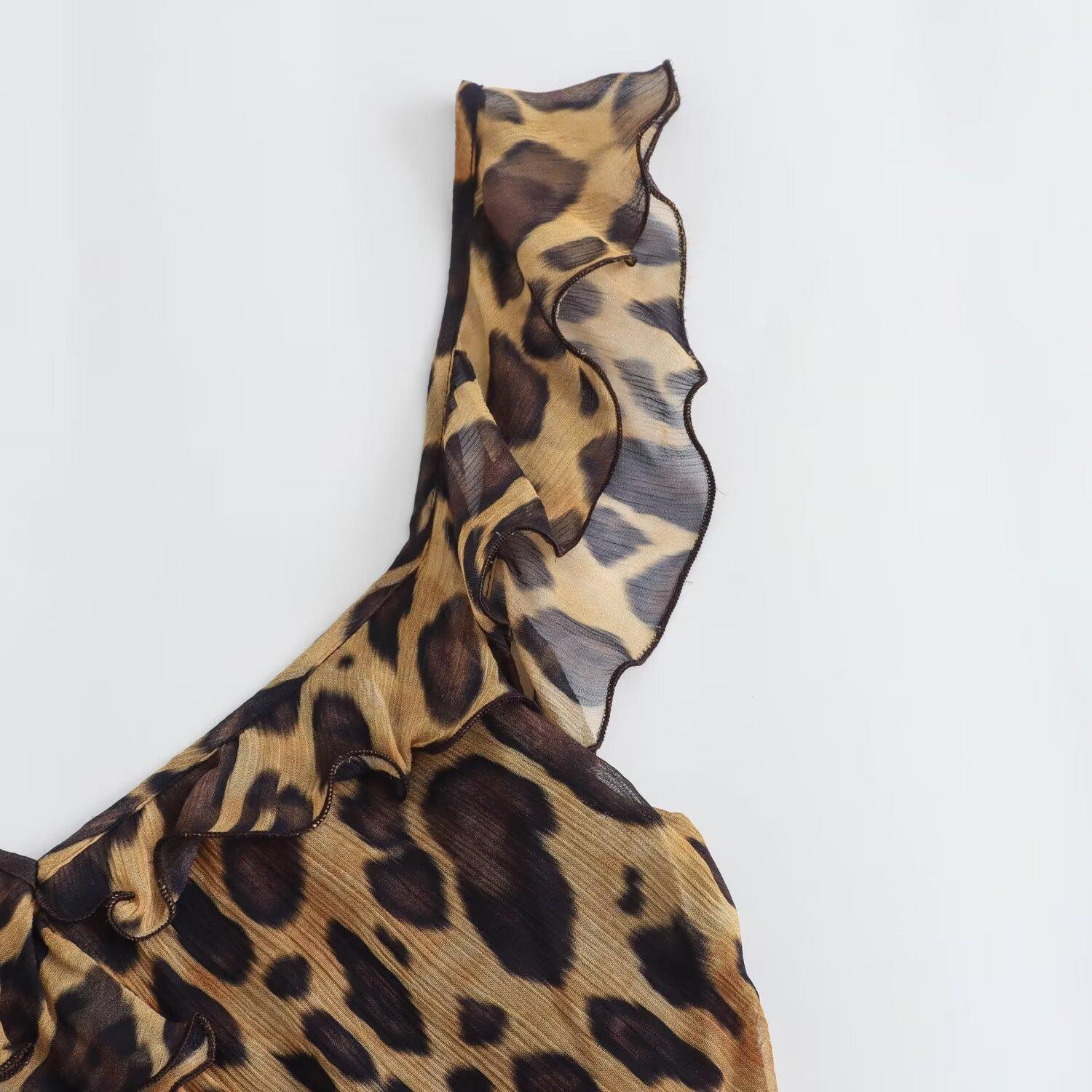 Vestido de encaje con estampado animal para mujer, verano 2024, comercio transfronterizo de Amazon, Europa y América