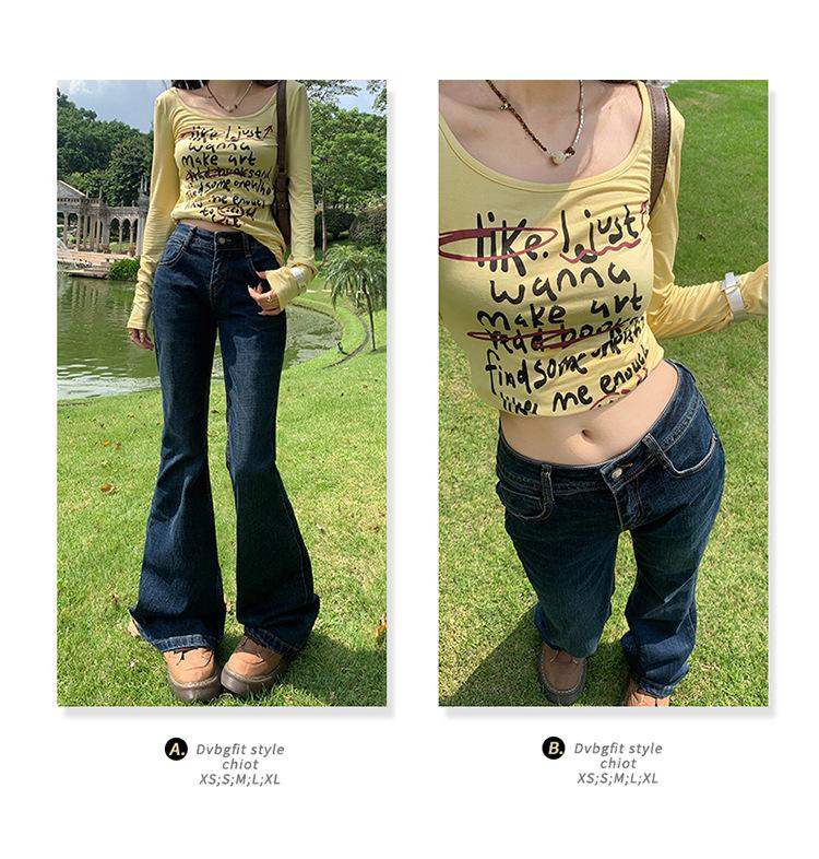 Compra Pantalones vaqueros clásicos retro de estilo Hong Kong para mujer, estilo Spice Girl, cintura baja, diseño adelgazante, combinables. al por mayor en Joom.pro