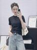 2024 Principios de Otoño Nuevo Color Sólido Cuello Redondo Casual Combinable Moda Adelgazante Top para Mujer 3335