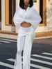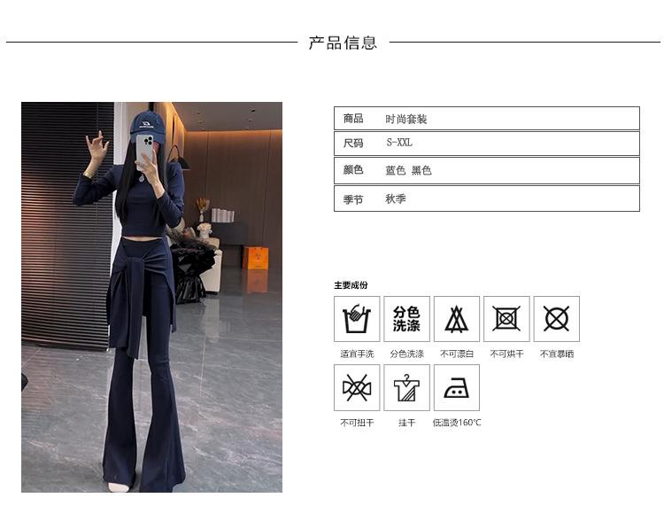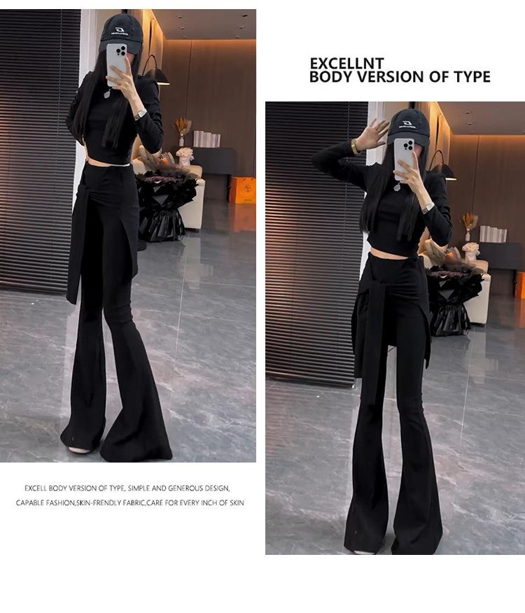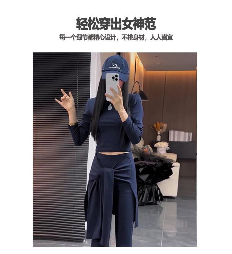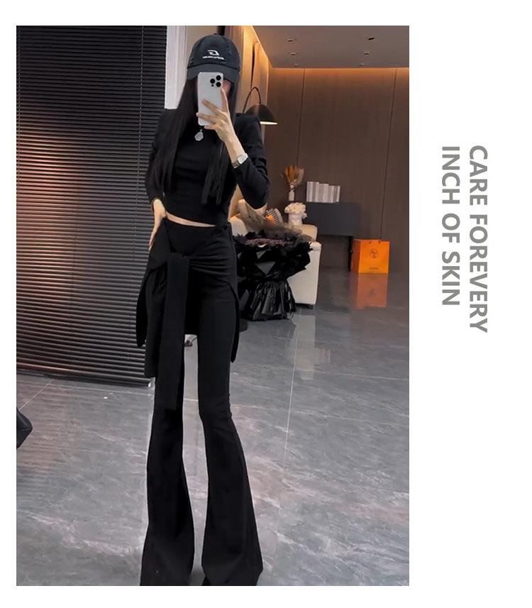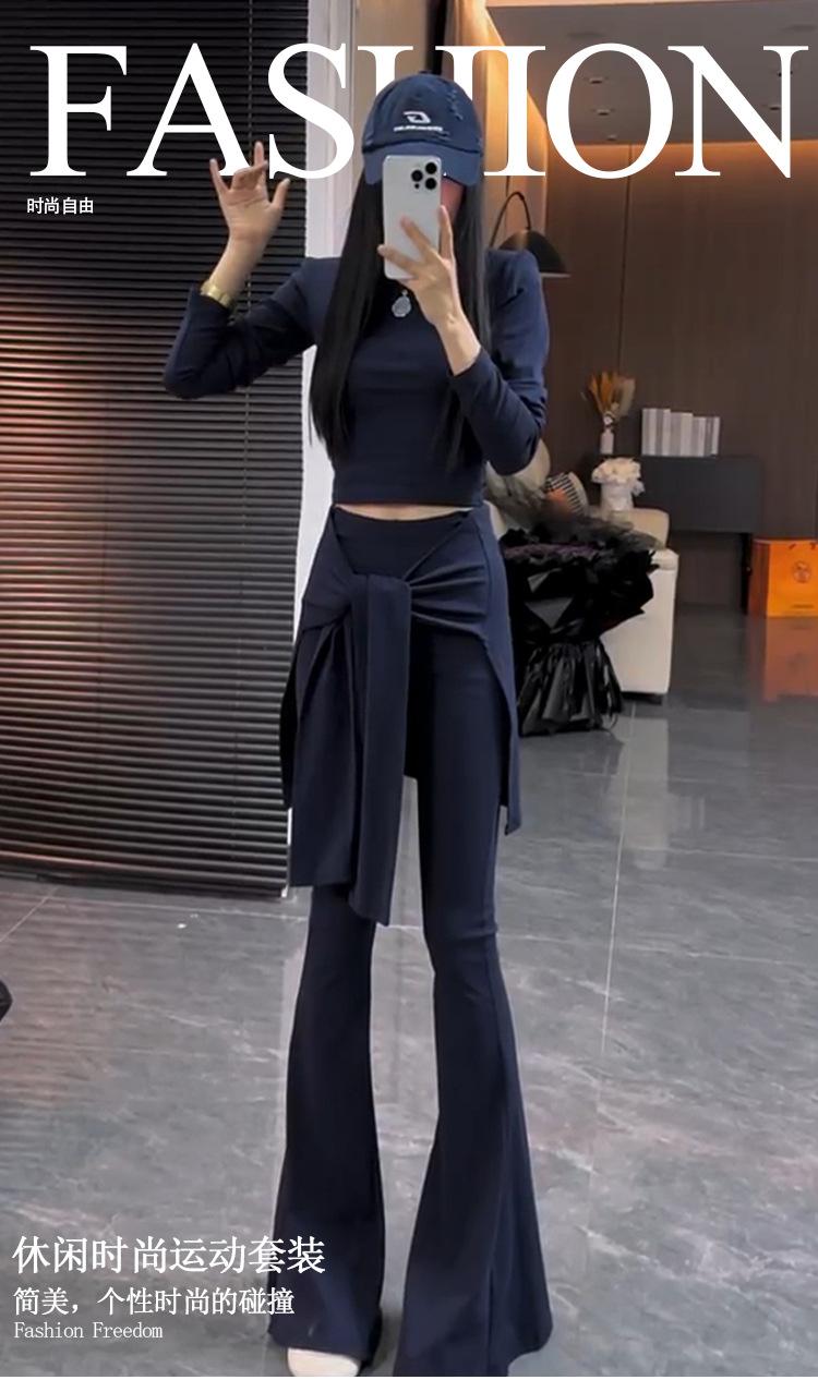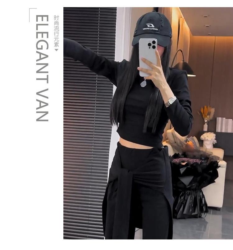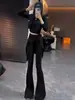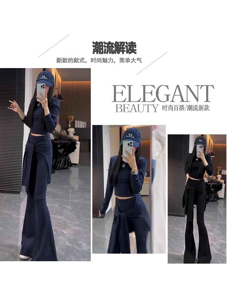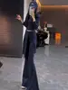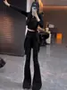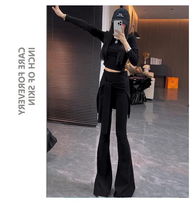 Moda Casual Sentido del Diseño Delgado Top de Manga Larga Traje Mujer 2025 Otoño Nuevo Ajustado Micro-pantalón Conjunto de Dos Piezas