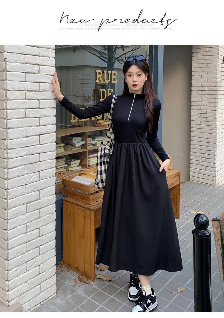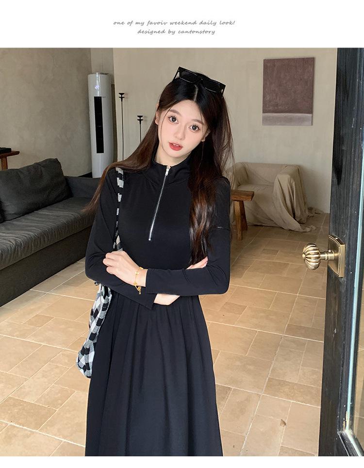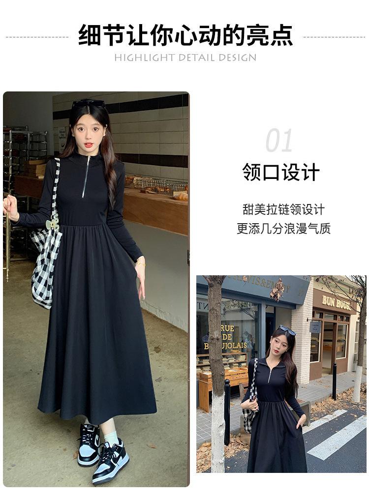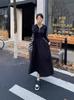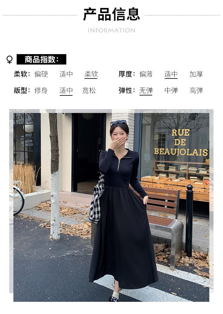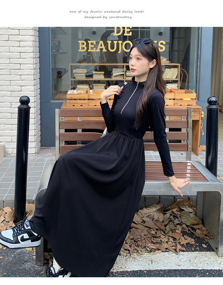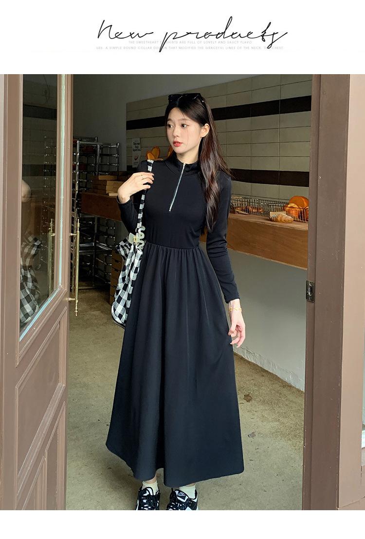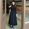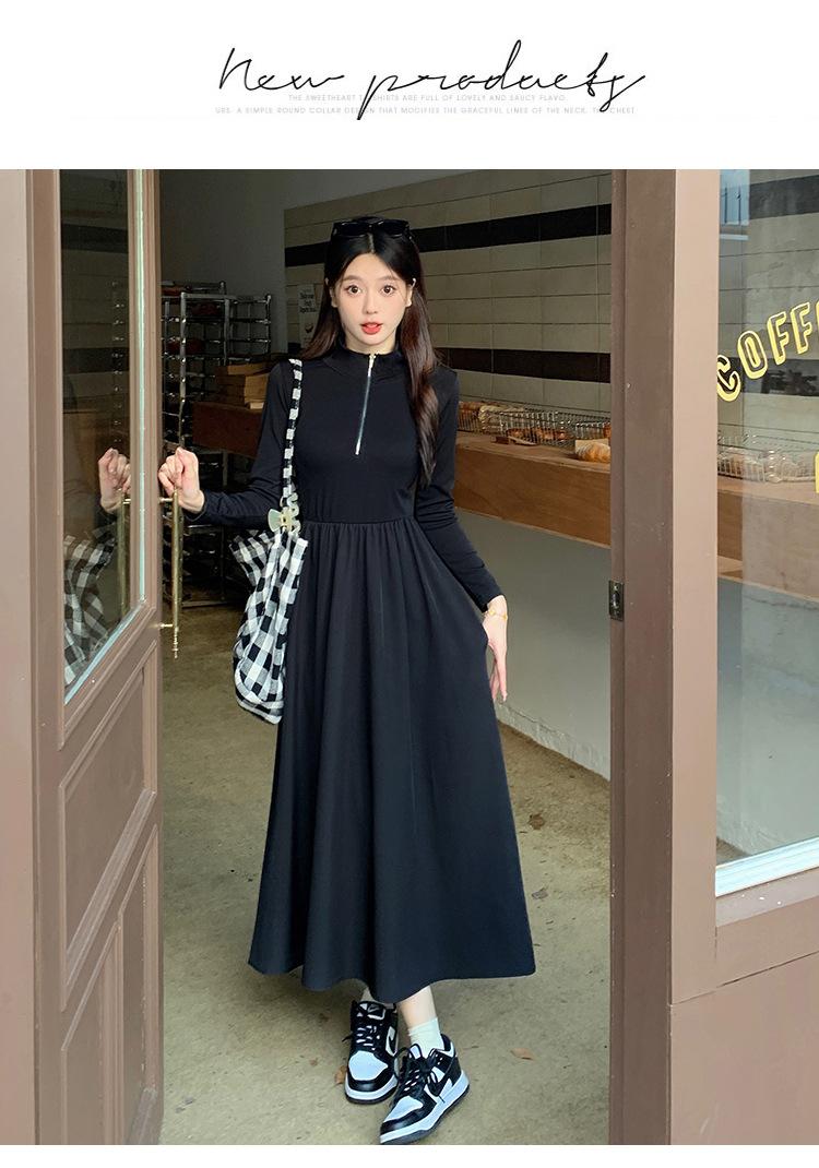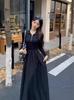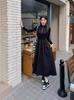 Vestido de punto negro de manga larga para mujer, estilo casual francés, nuevo para principios de otoño, adelgazante, falda larga