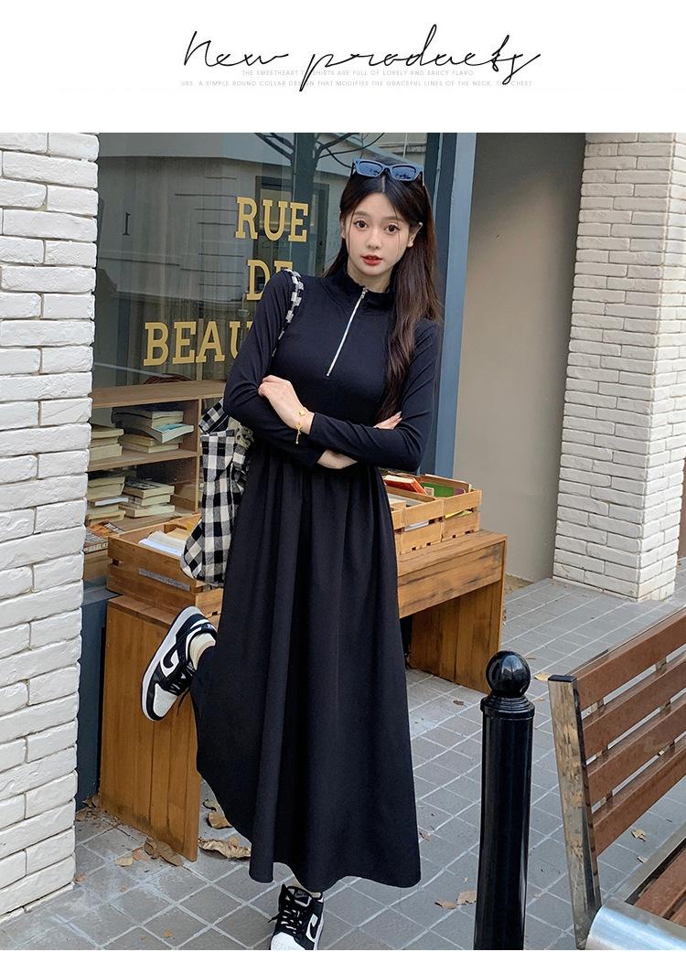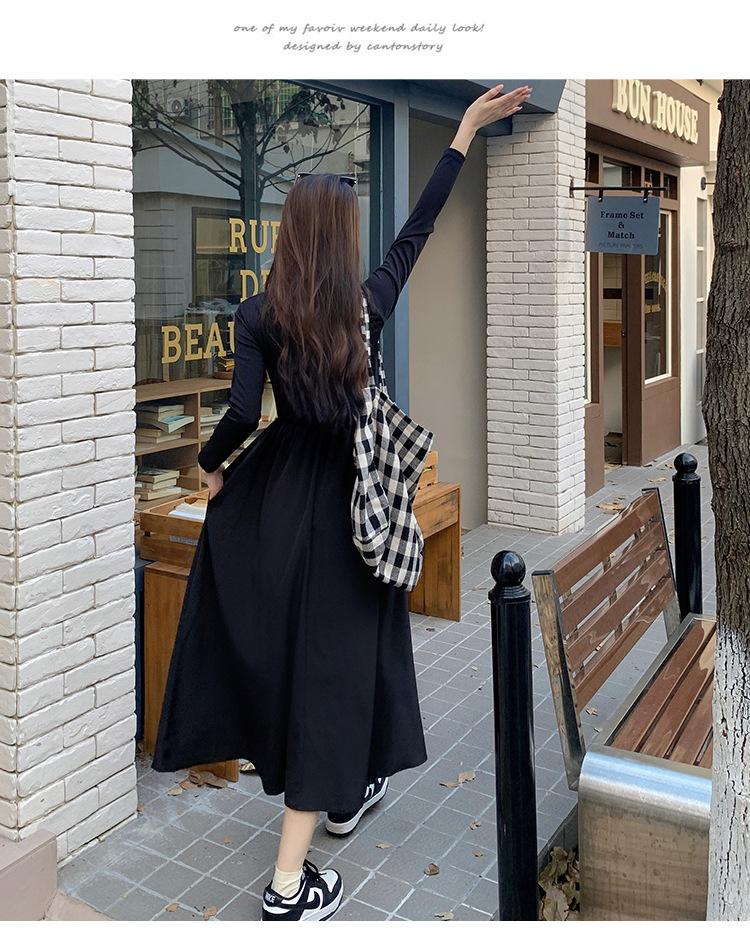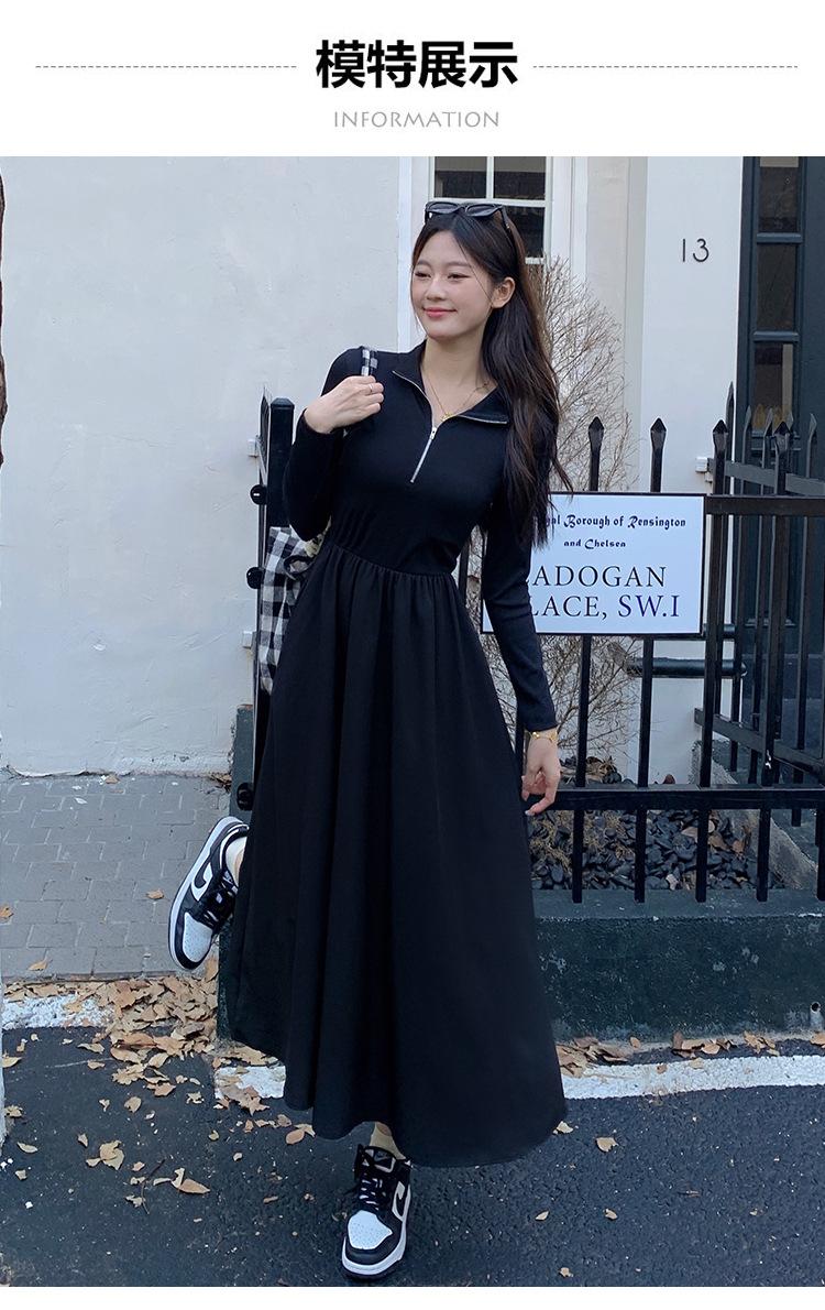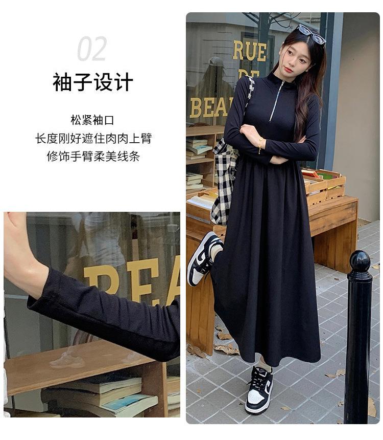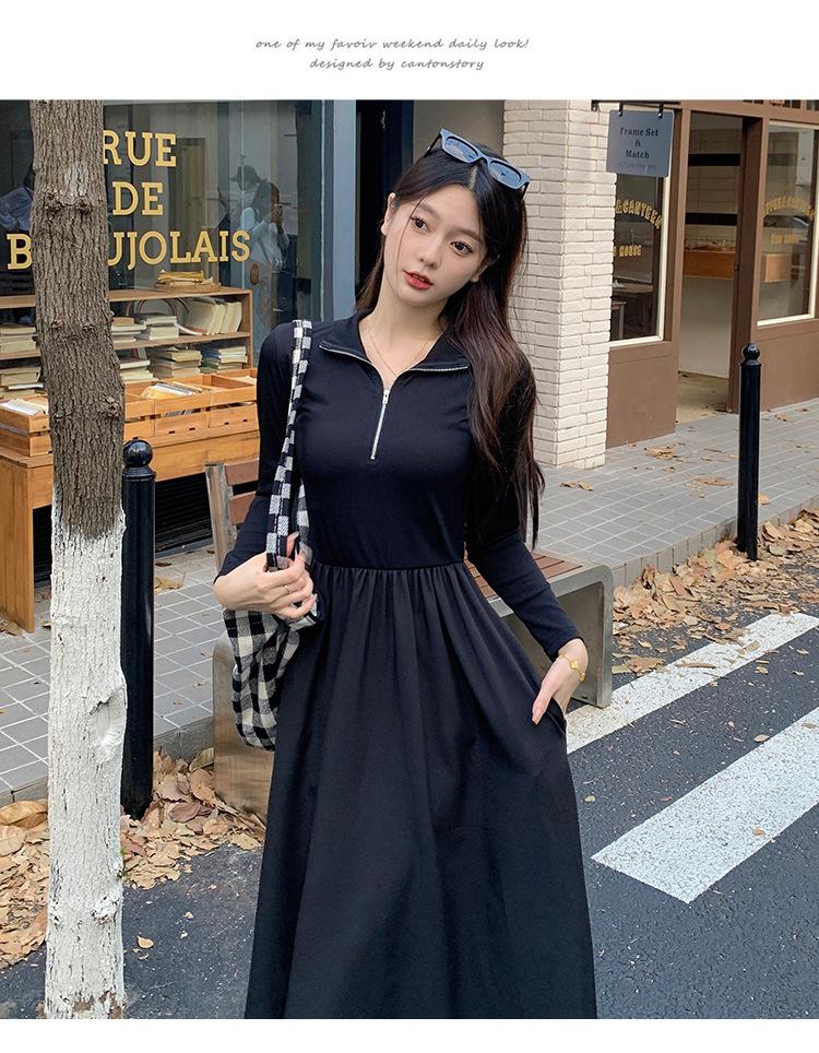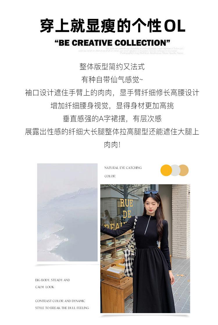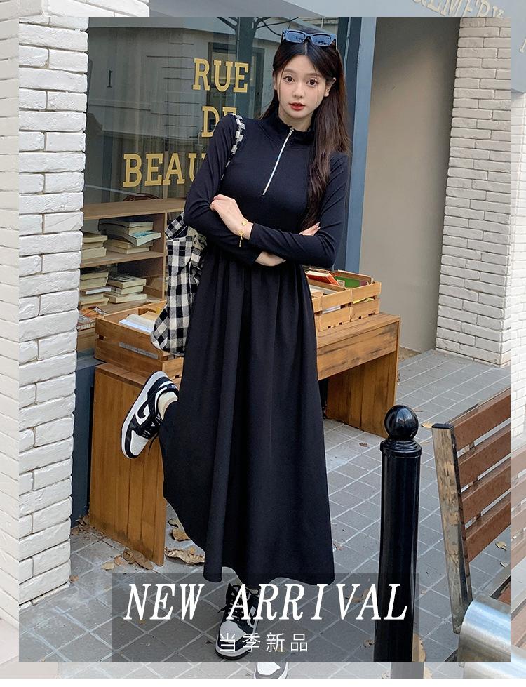 Vestido de punto negro de manga larga para mujer, estilo casual francés, nuevo para principios de otoño, adelgazante, falda larga
