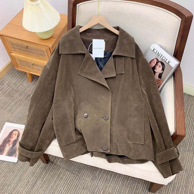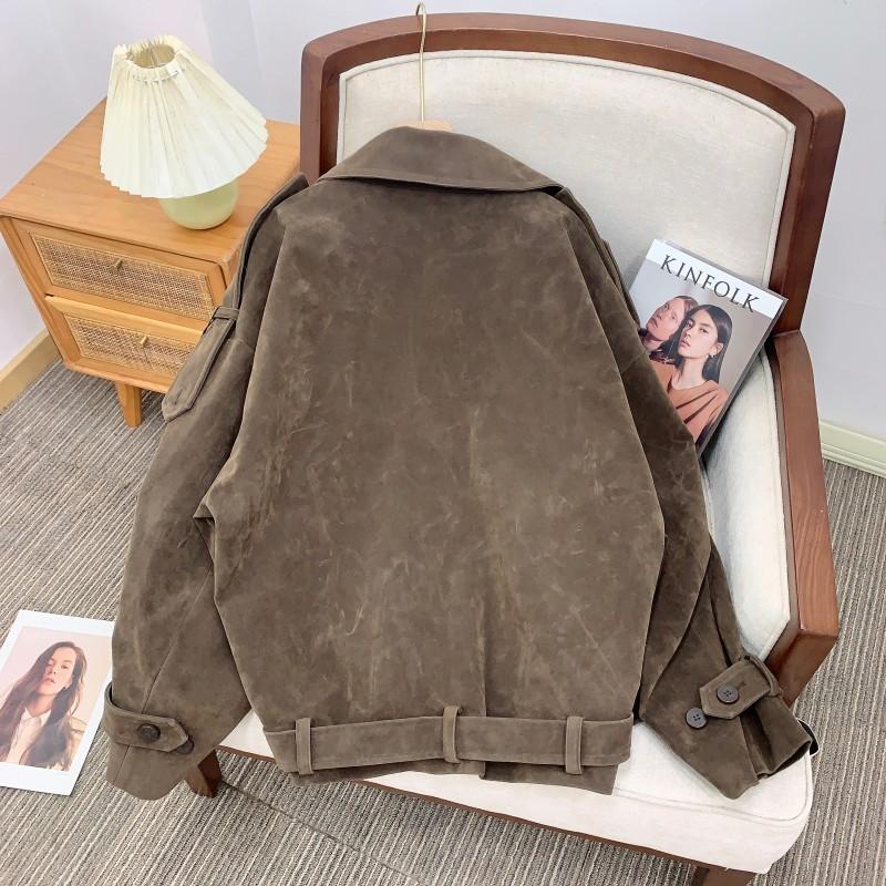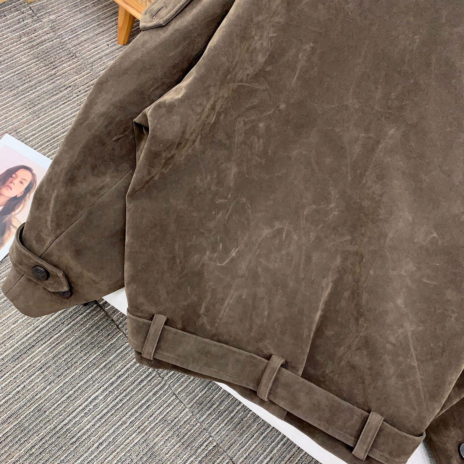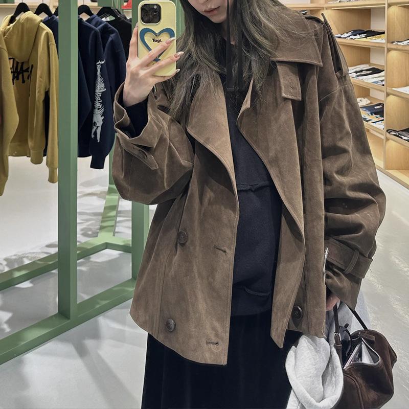 Spot X París Edición Antigua Chaqueta Cortavientos de Gamuza Lavada Chaqueta Retro de Moda Moda Femenina Calle Moda Gente Pequeña