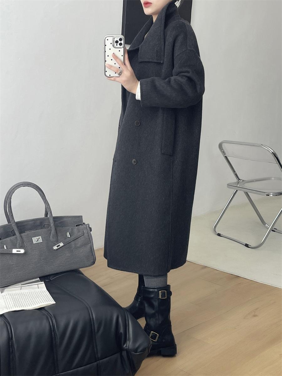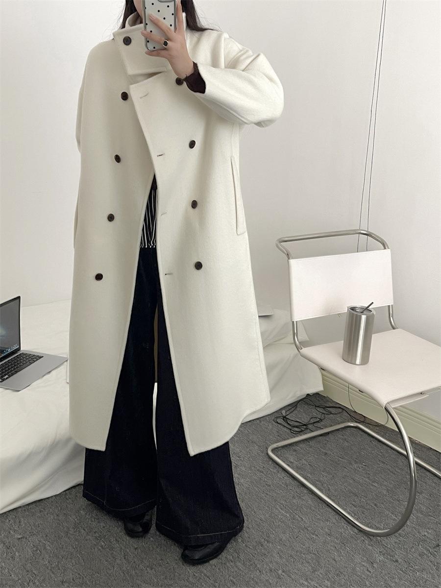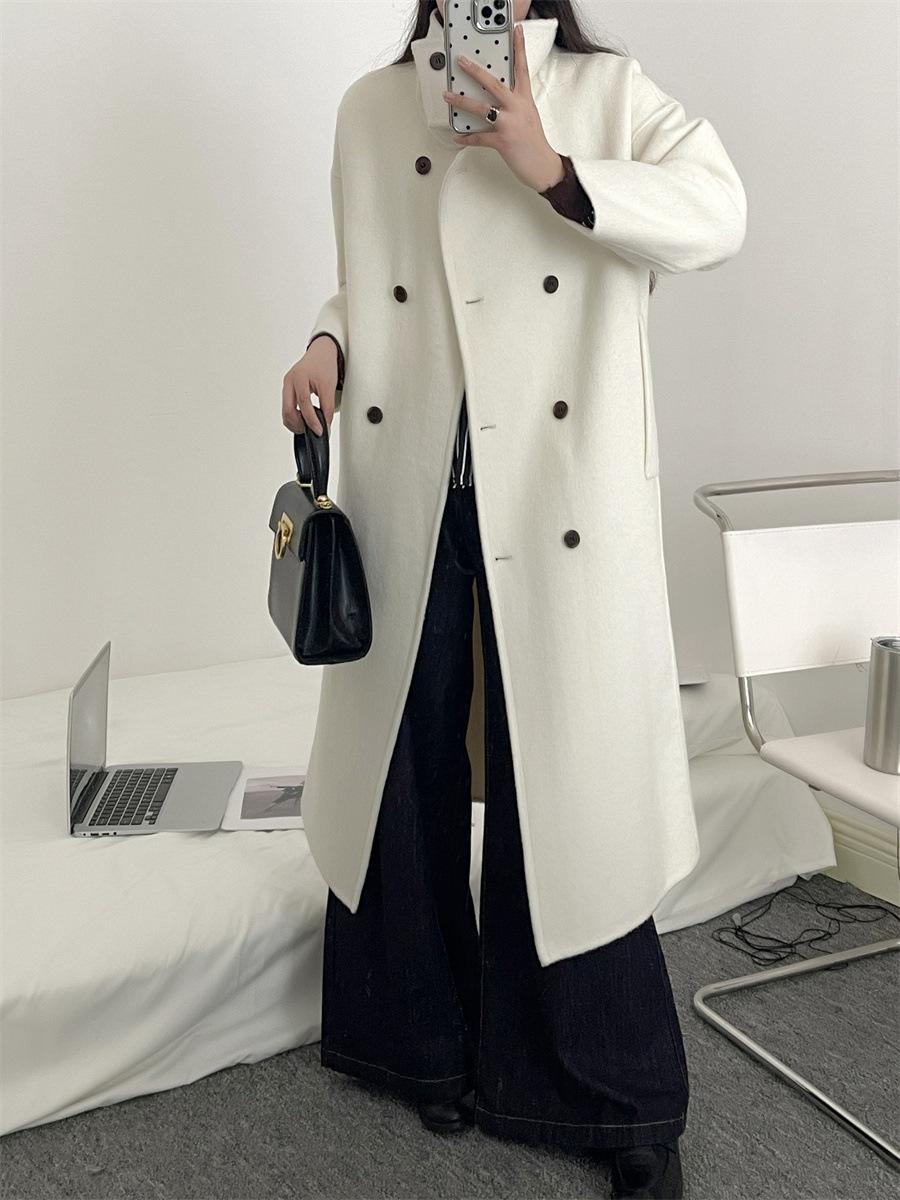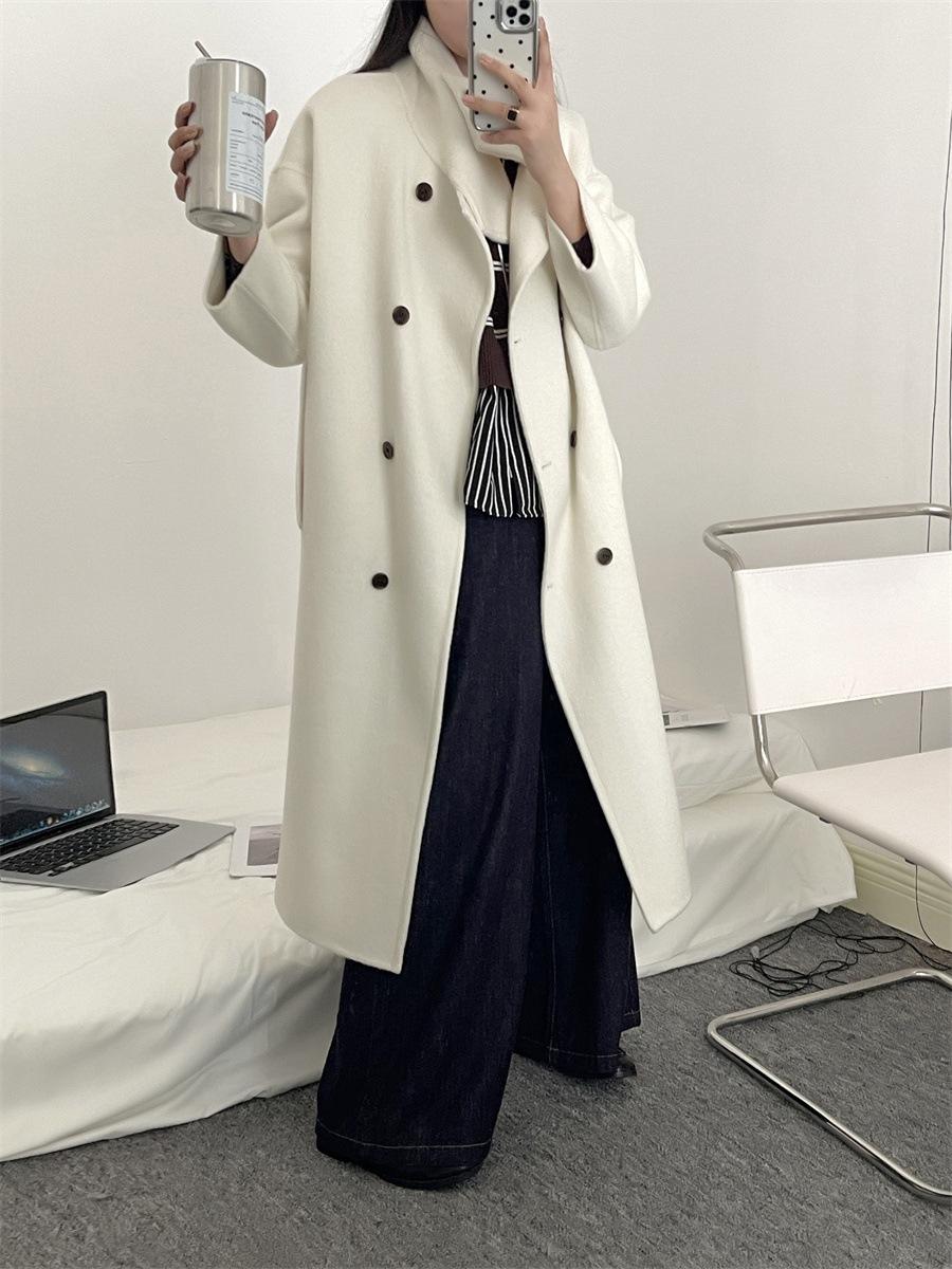 Abrigo de Lana Nuevo 2024 de Doble Cara Cuello Elegante Largo Suelto de Alta Gama Abrigo de Lana para Mujer para Otoño e Invierno X2379