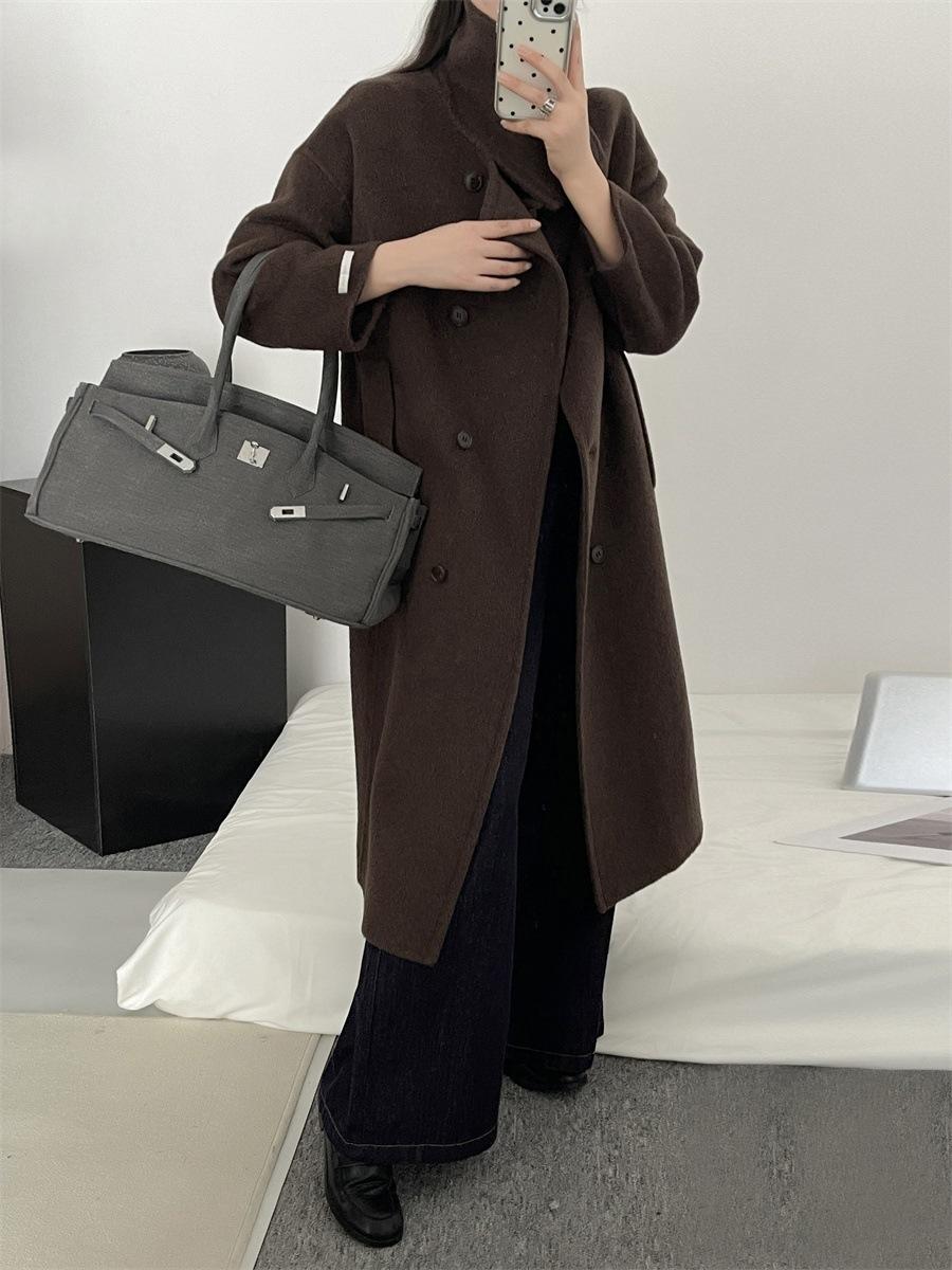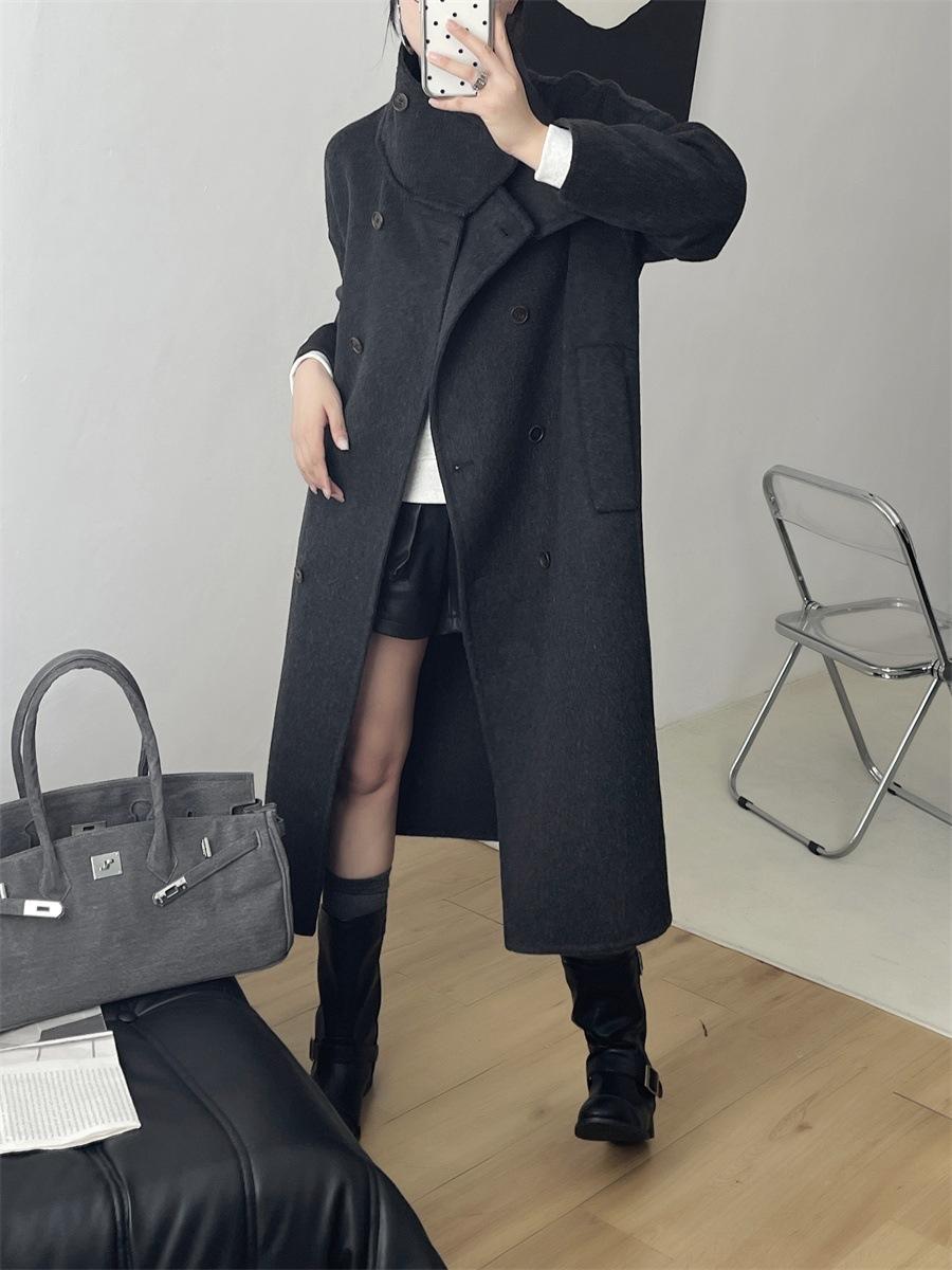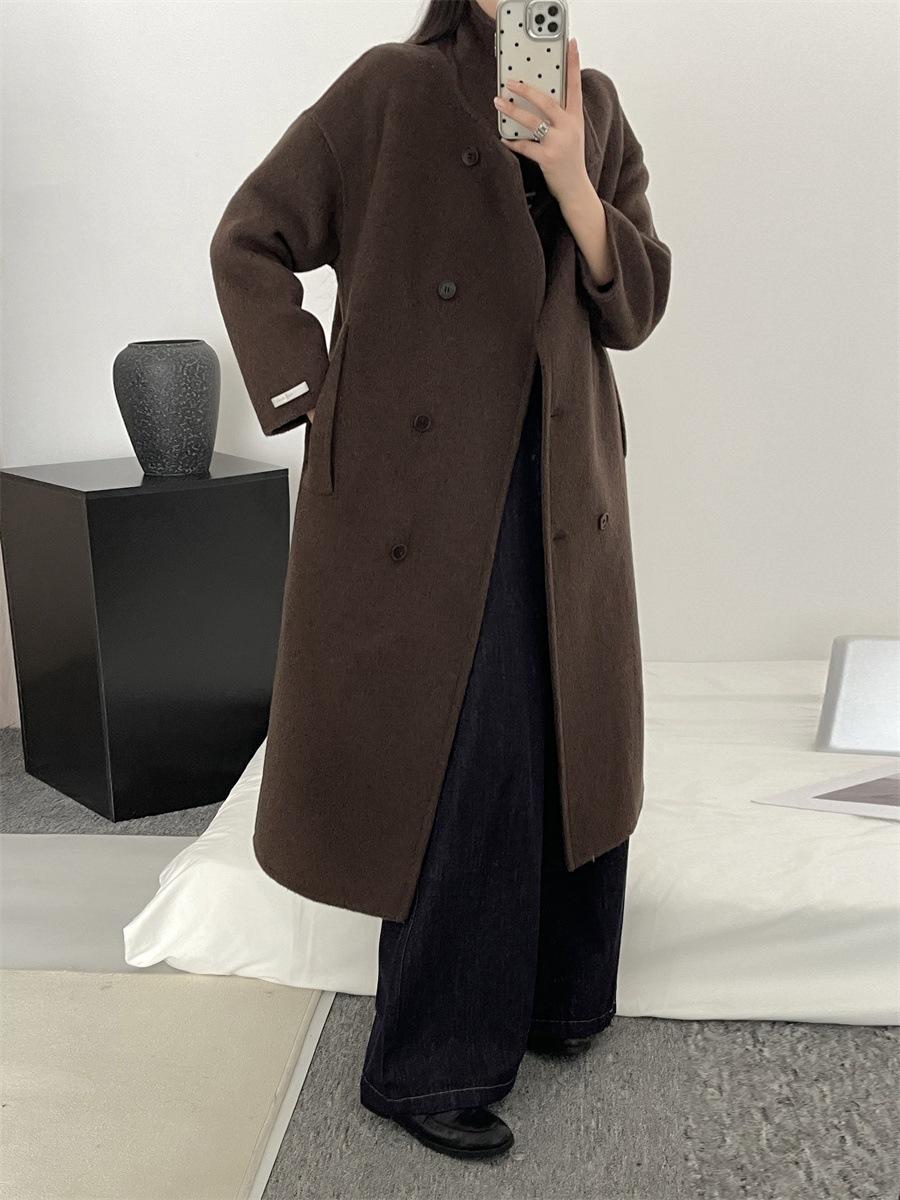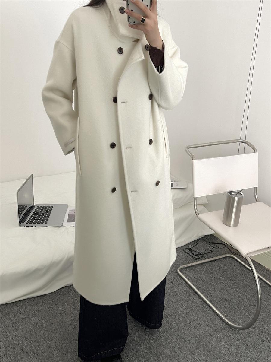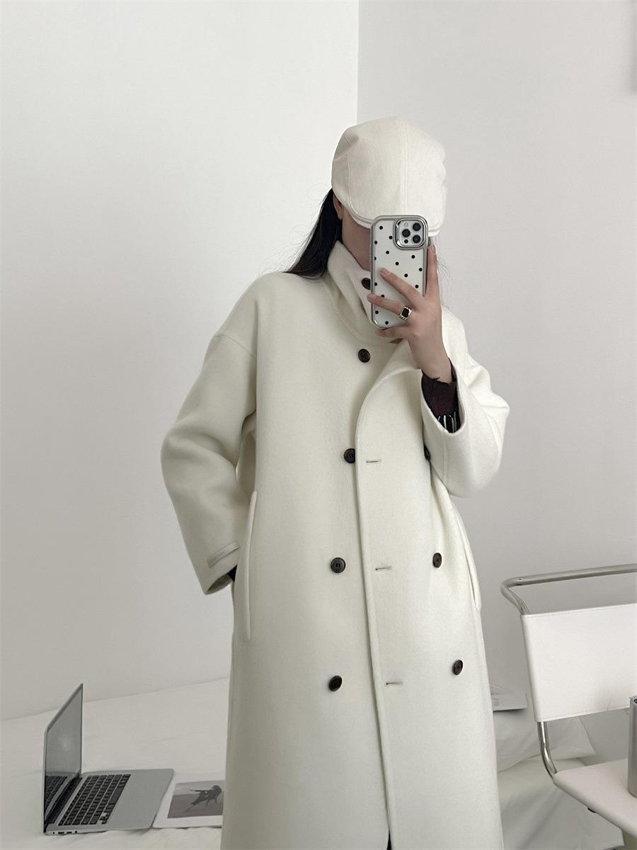 Abrigo de Lana Nuevo 2024 de Doble Cara Cuello Elegante Largo Suelto de Alta Gama Abrigo de Lana para Mujer para Otoño e Invierno X2379